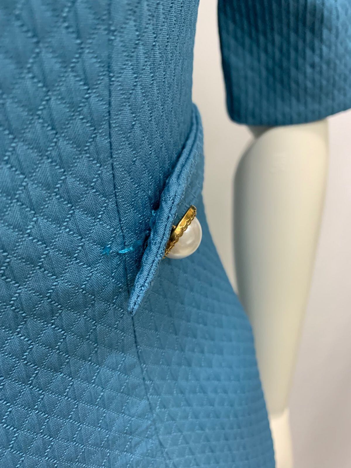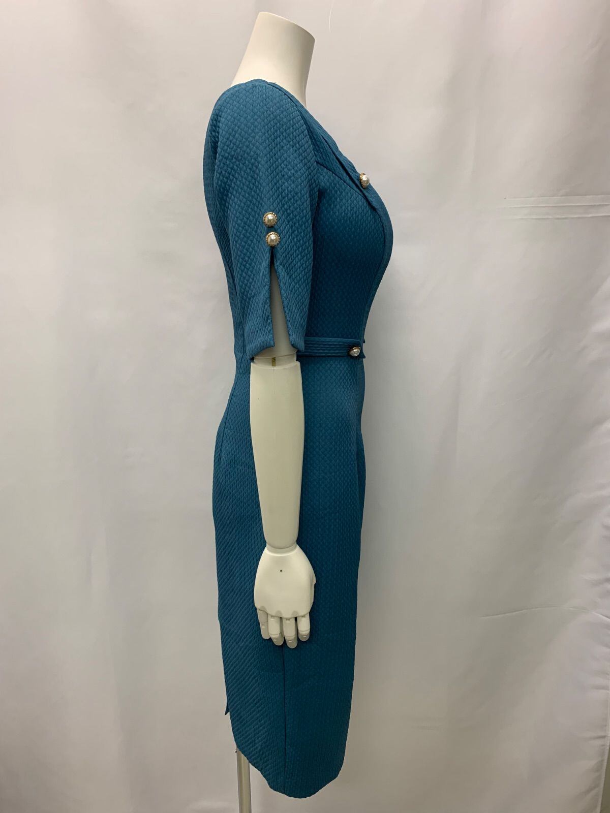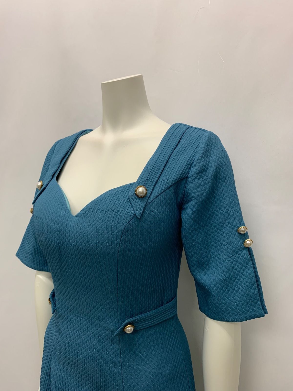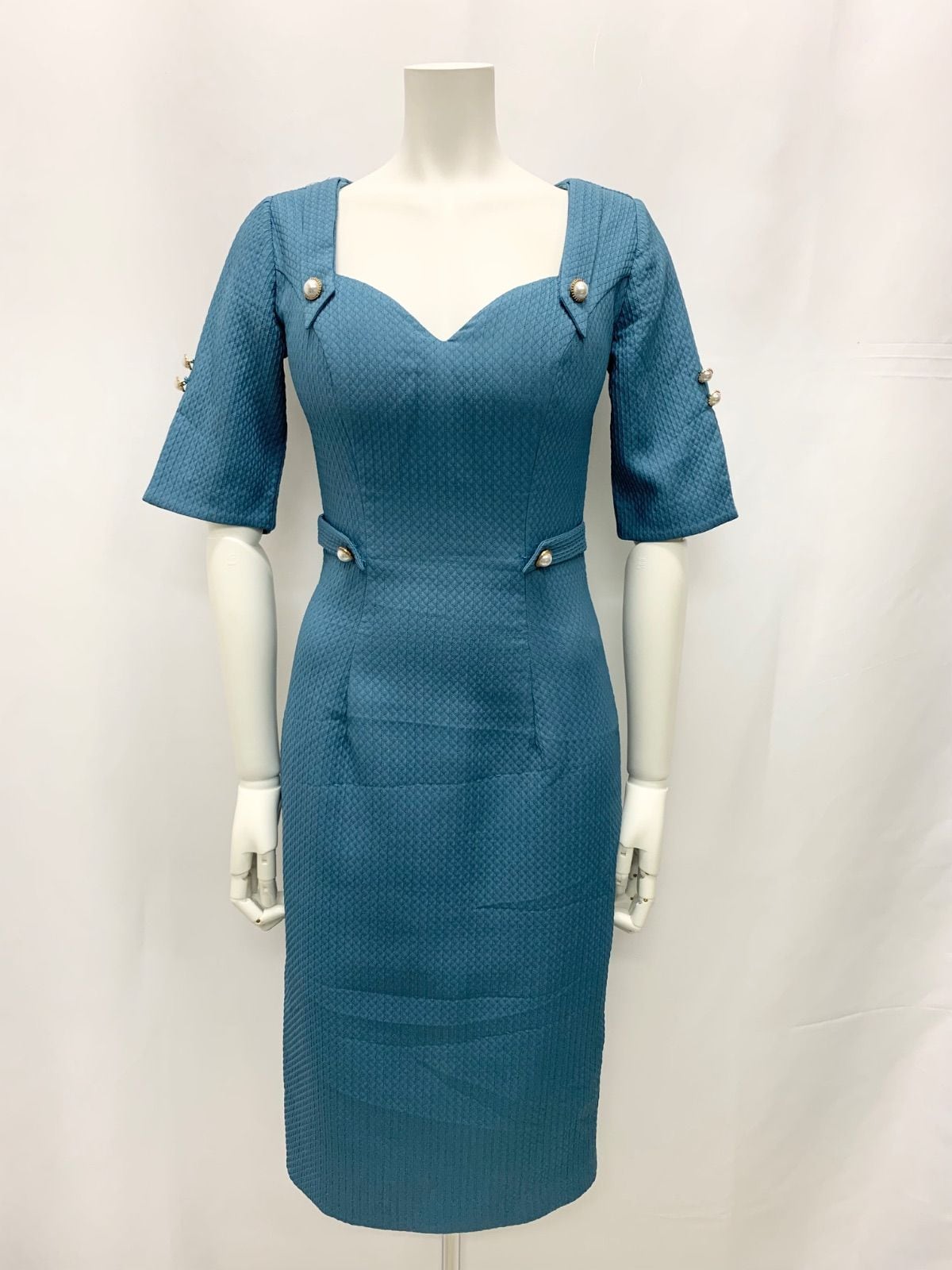 1032 JEAN MACLEAN ジャンマクレーン キャバクラ ドレス ワッフル スクエアネック ゴールドパールボタン ミディ タイト キャバドレス M