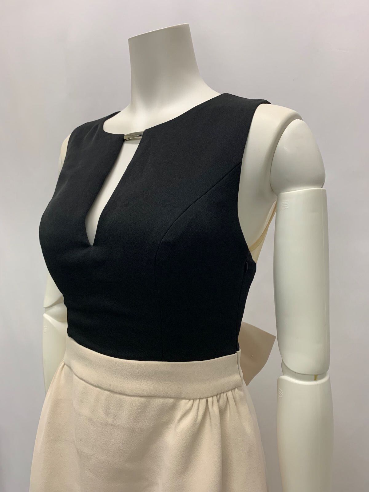 1045 Settan ERUKEI セッタン エルケイ キャバクラ ドレス バックリボン ノースリーブ シースルー フレア バイカラー キャバドレス サイズ2