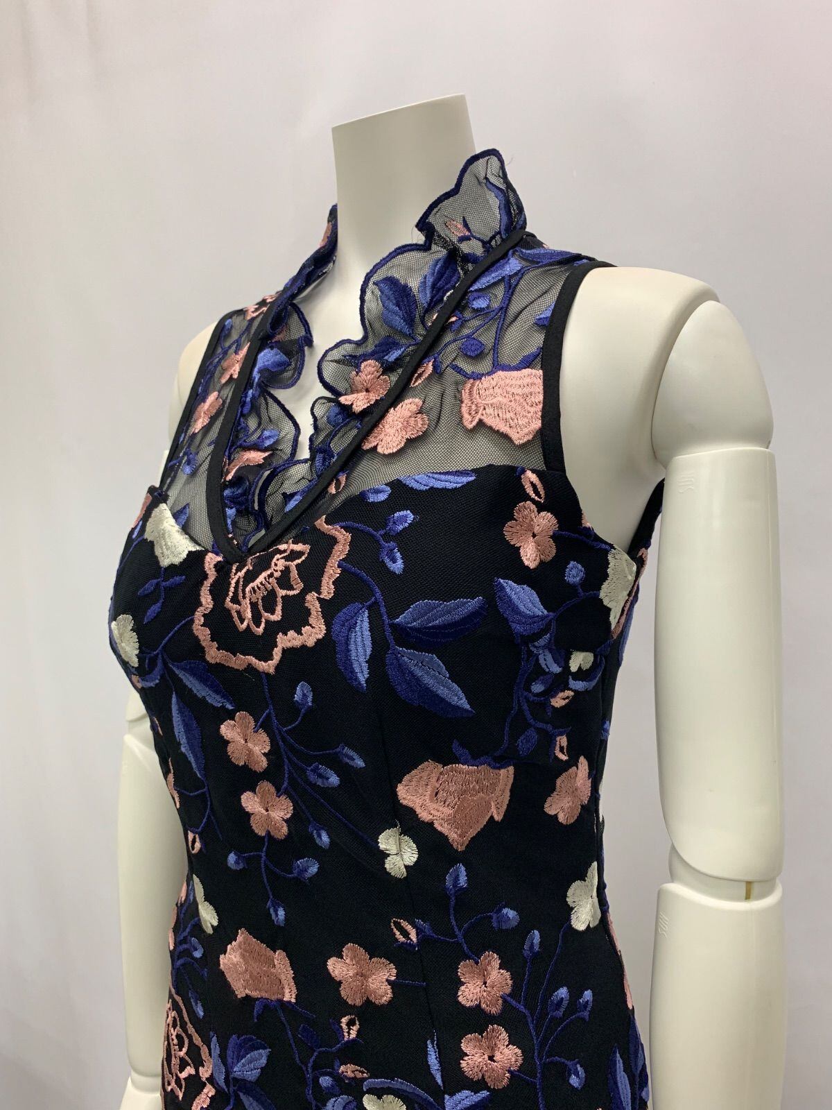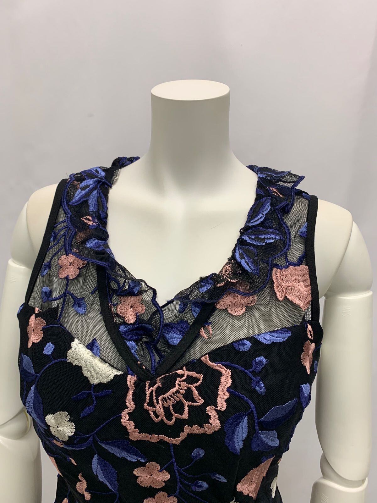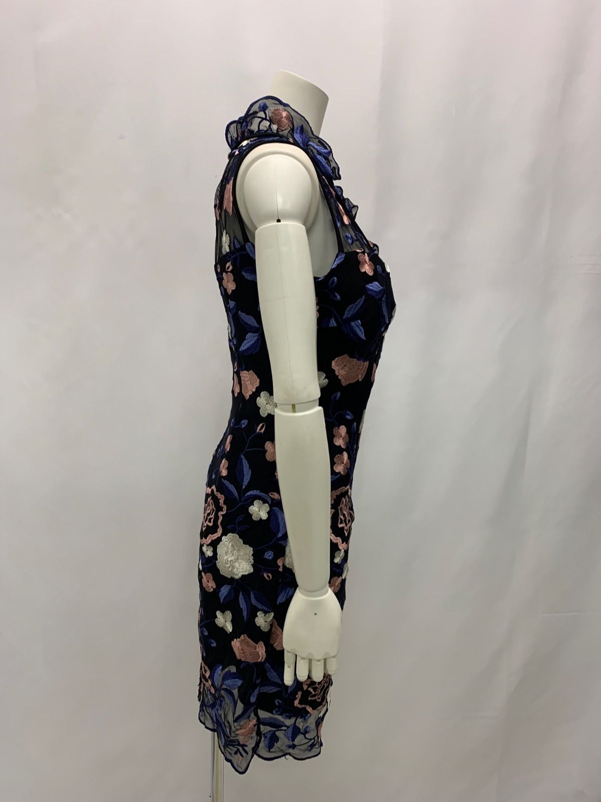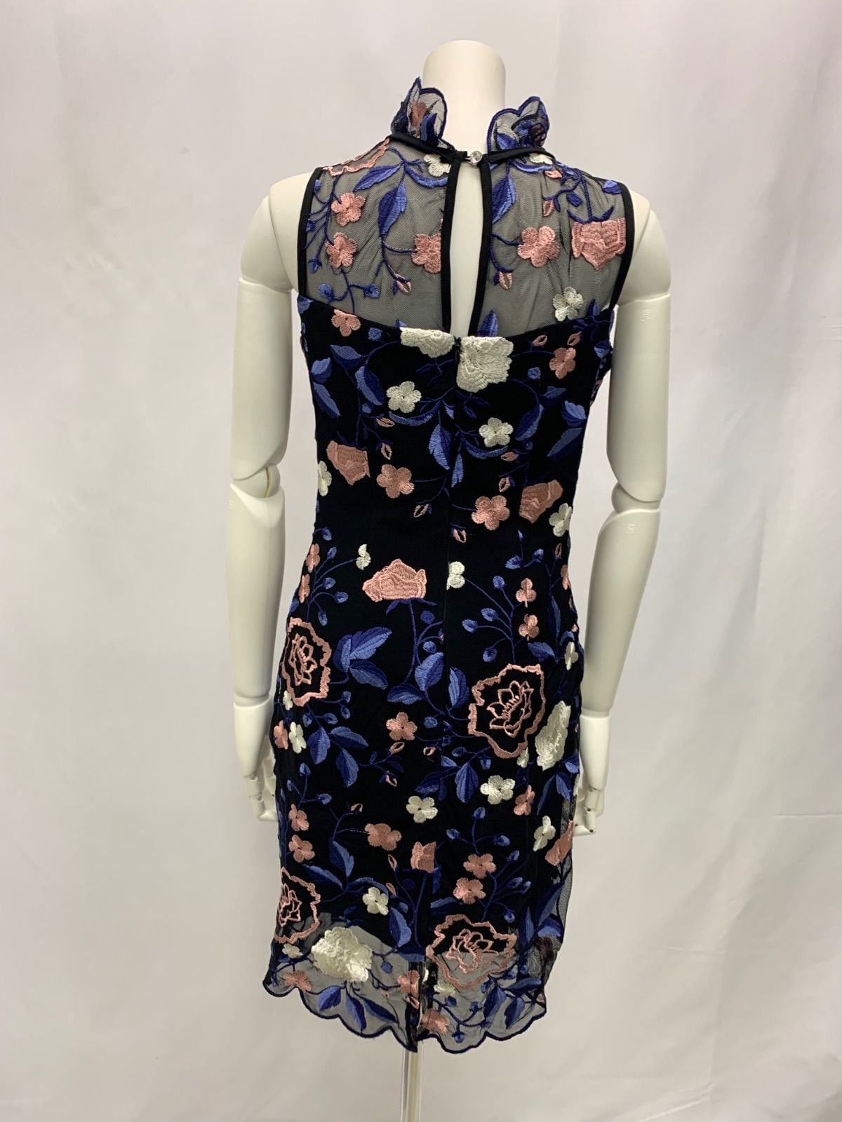 1052 Andy アンディ キャバクラ ドレス 花柄刺繍 総レース ノースリーブ ミニ キャバドレス M