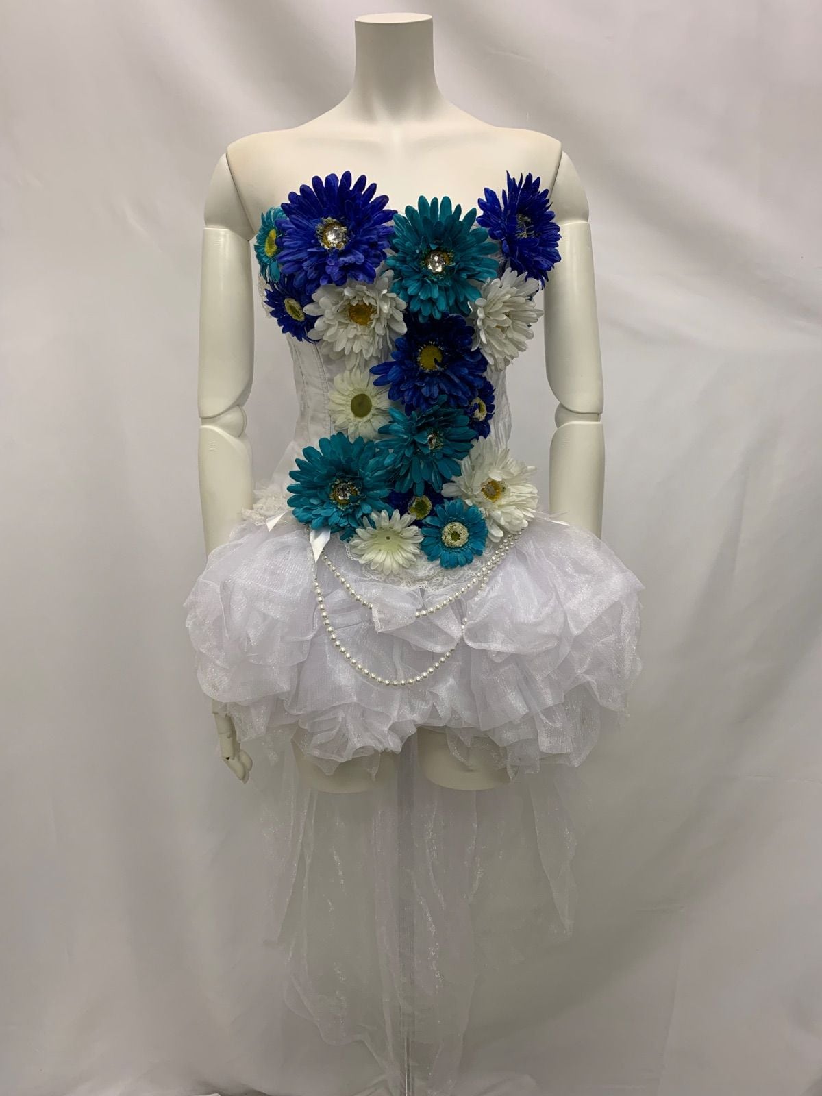 1077 Vanity ME. ヴァニティーミー キャバクラ ドレス 特注 フラワードレス チュール リボン ストーン パール イベント 仮装 ミニスカート バースデー キャバドレス