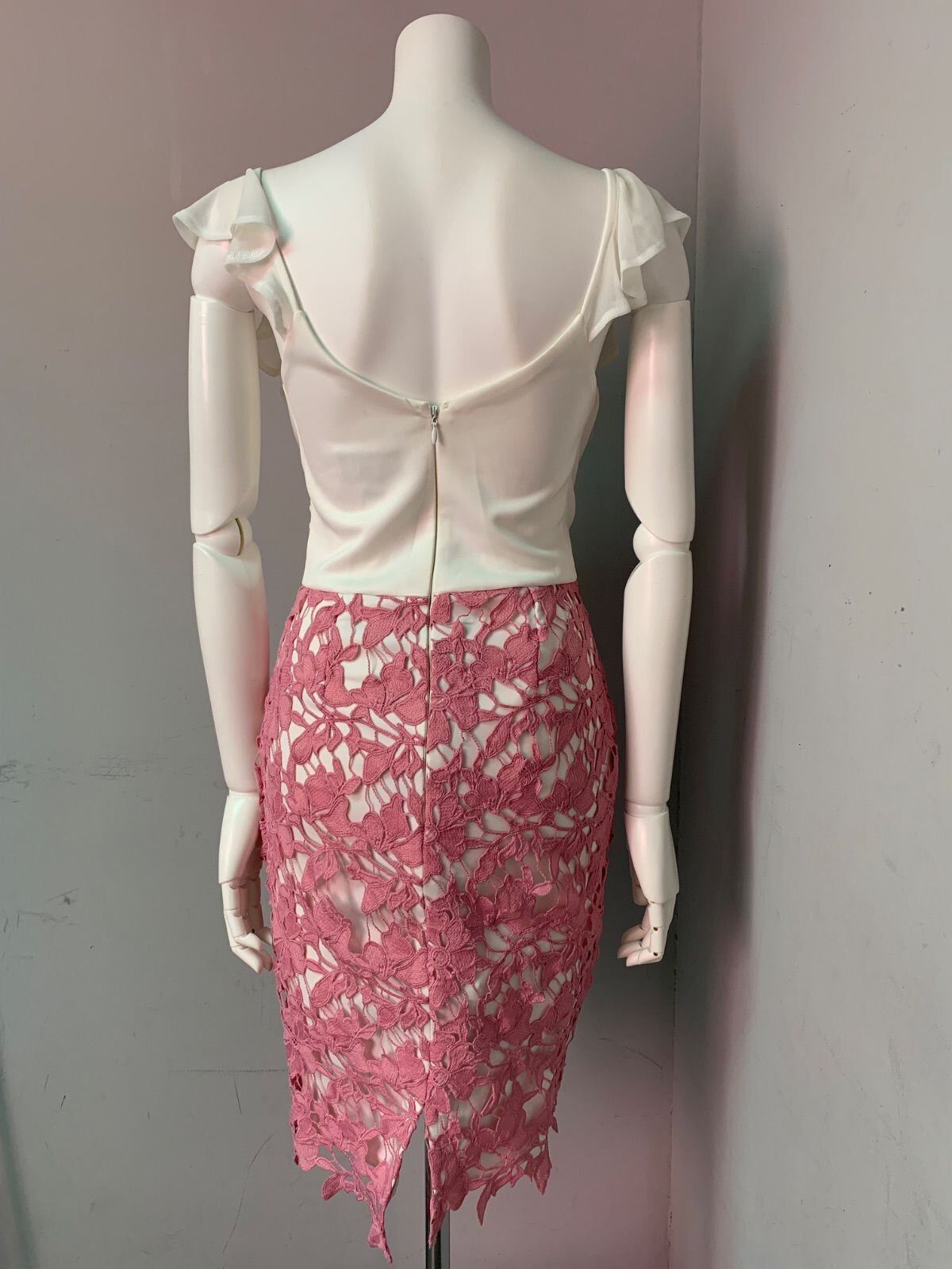 1093 LIPSY LONDON リプシーロンドン キャバクラ ドレス フラワー刺繍 レース シフォン スリット ストレッチ キャバドレス UK6
