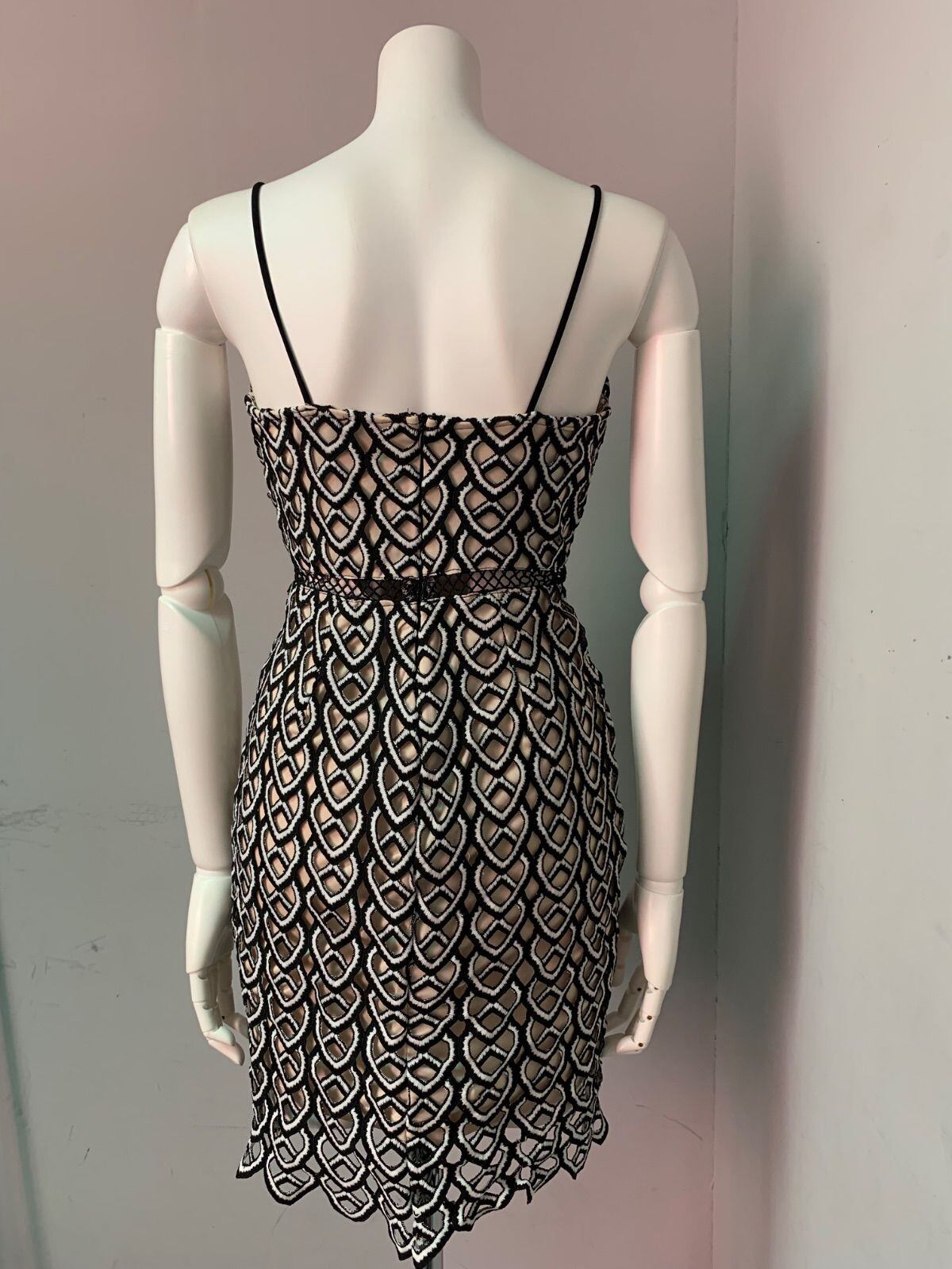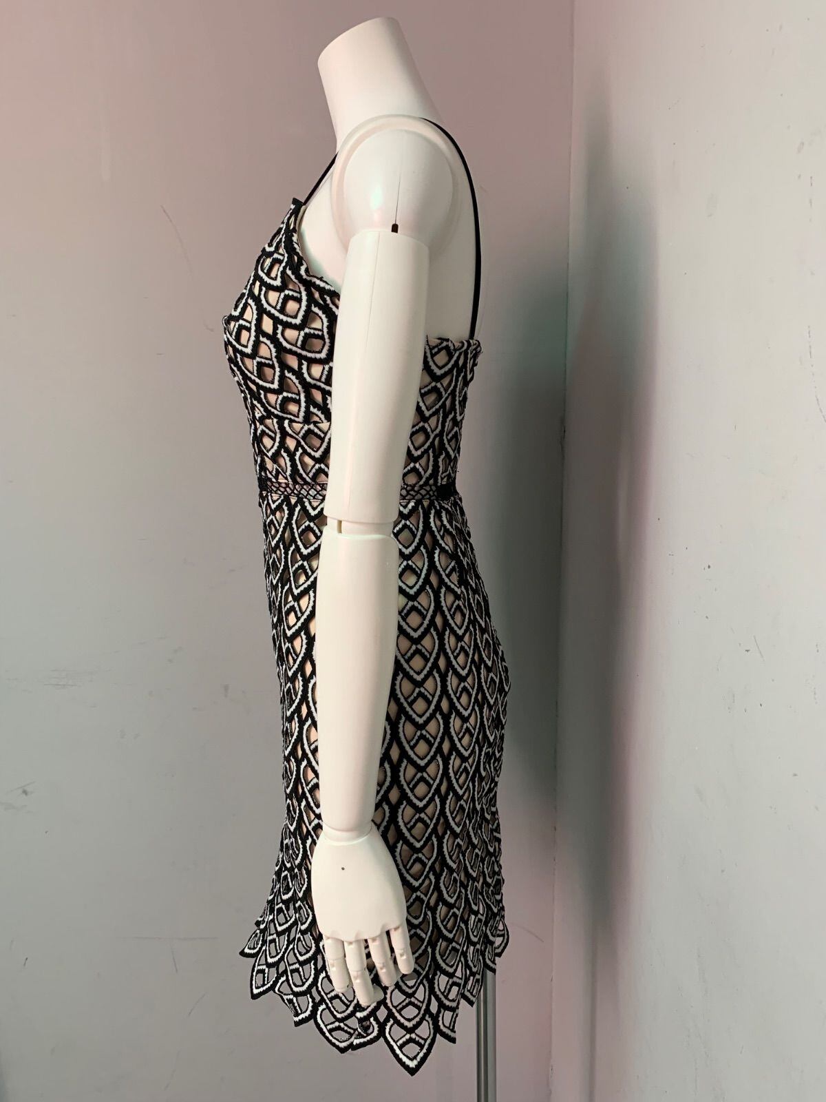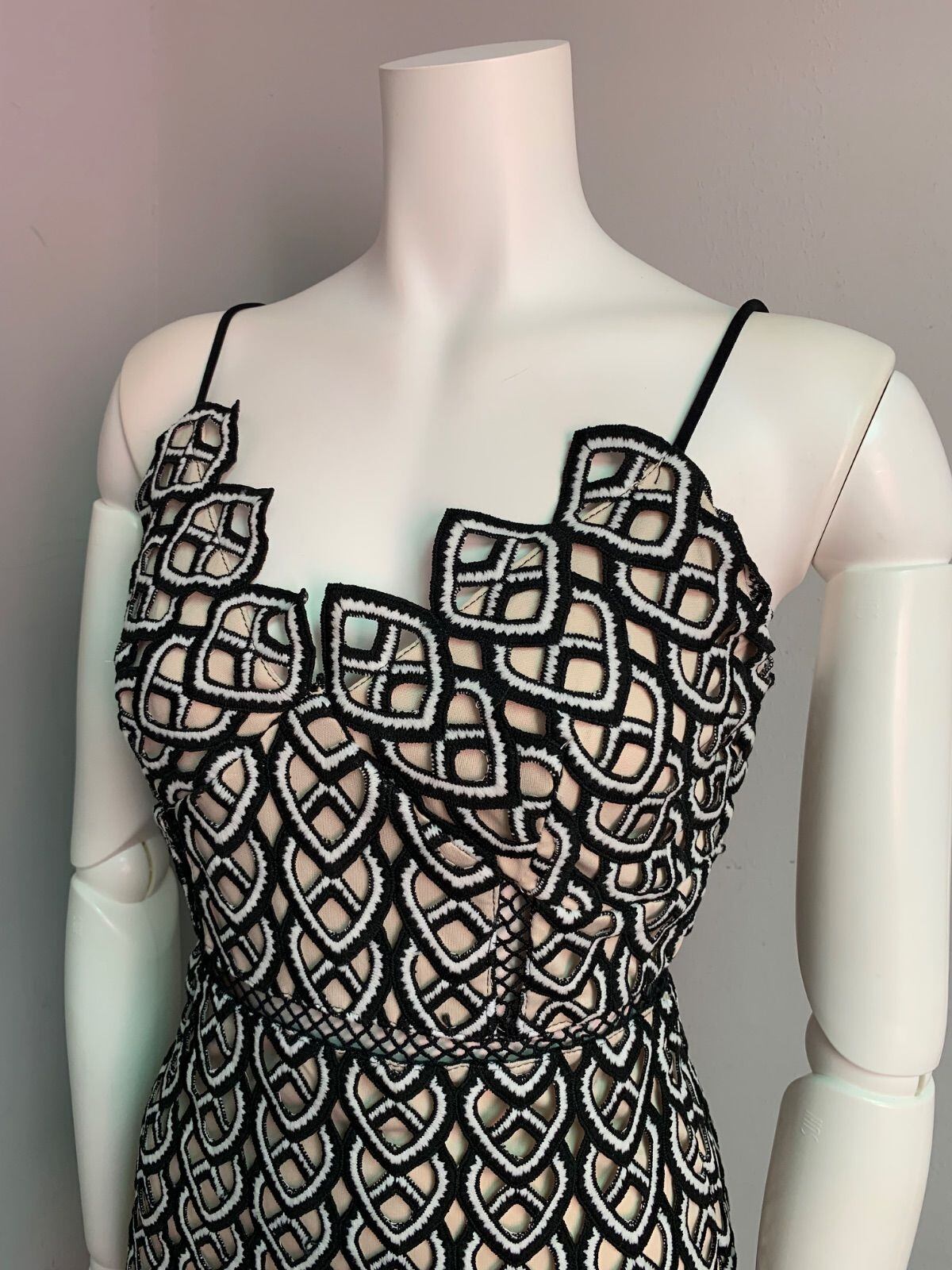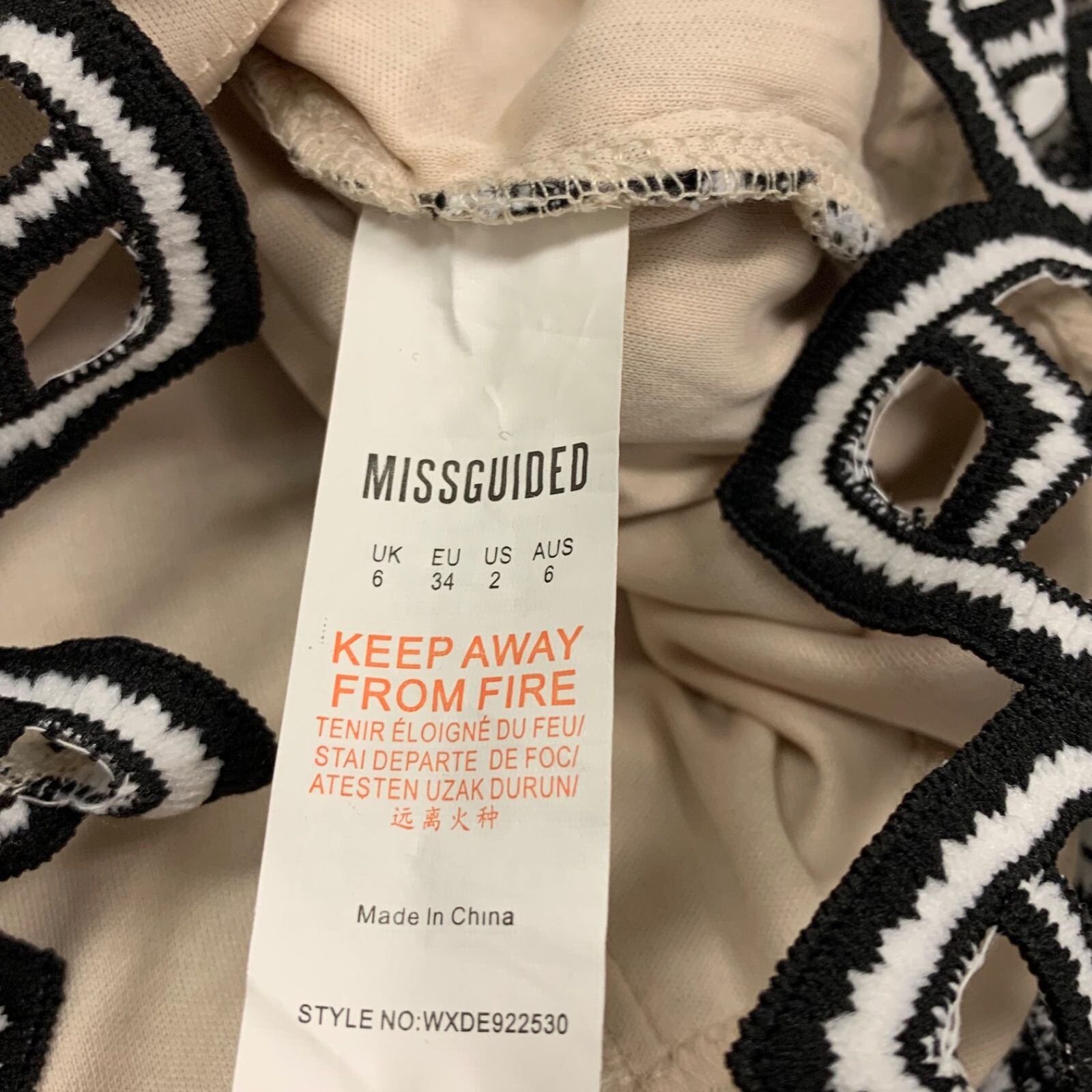 1094 MISSGUIDED ミスガイデッド キャバクラ ドレス キャミドレス クロシェレース 刺繍 モノトーン タイト ミディ キャバドレス EU34