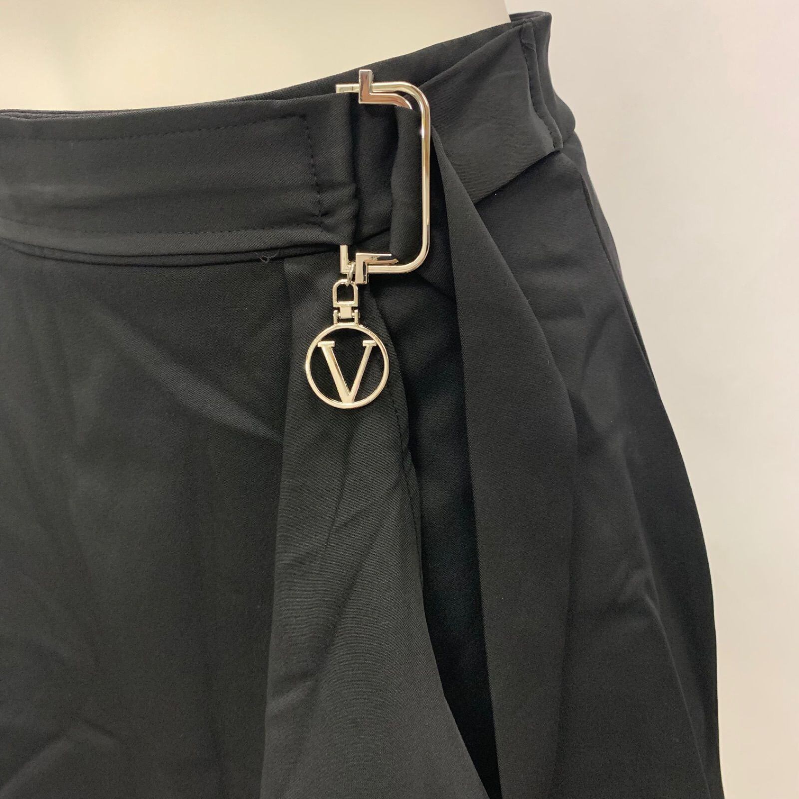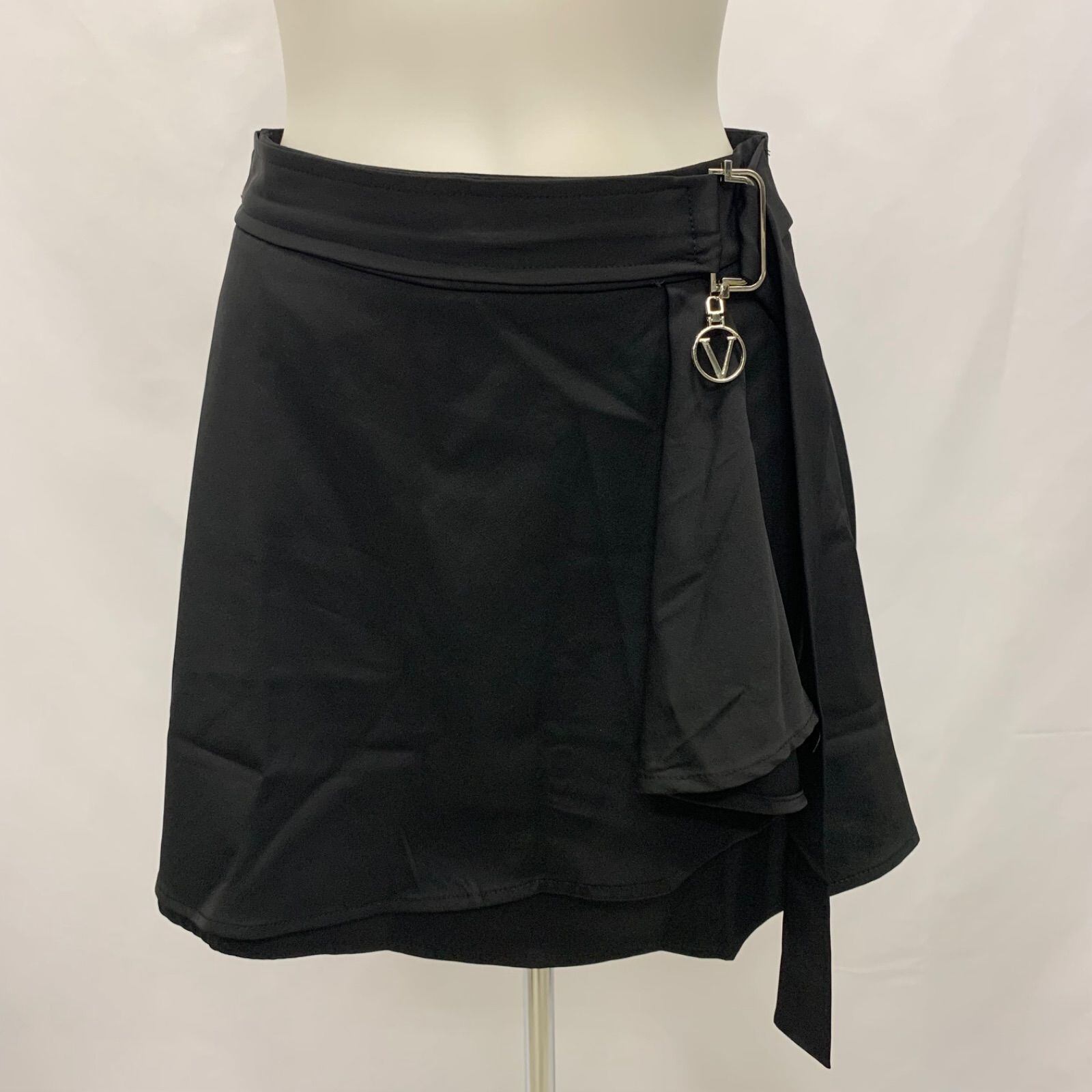 1122 Vロゴチャーム ラップフレアミニスカート シンプル ブラック