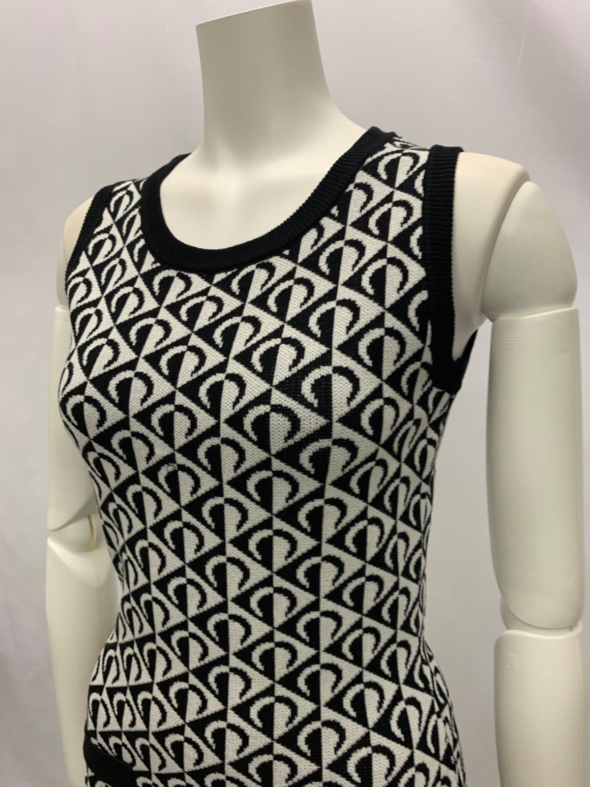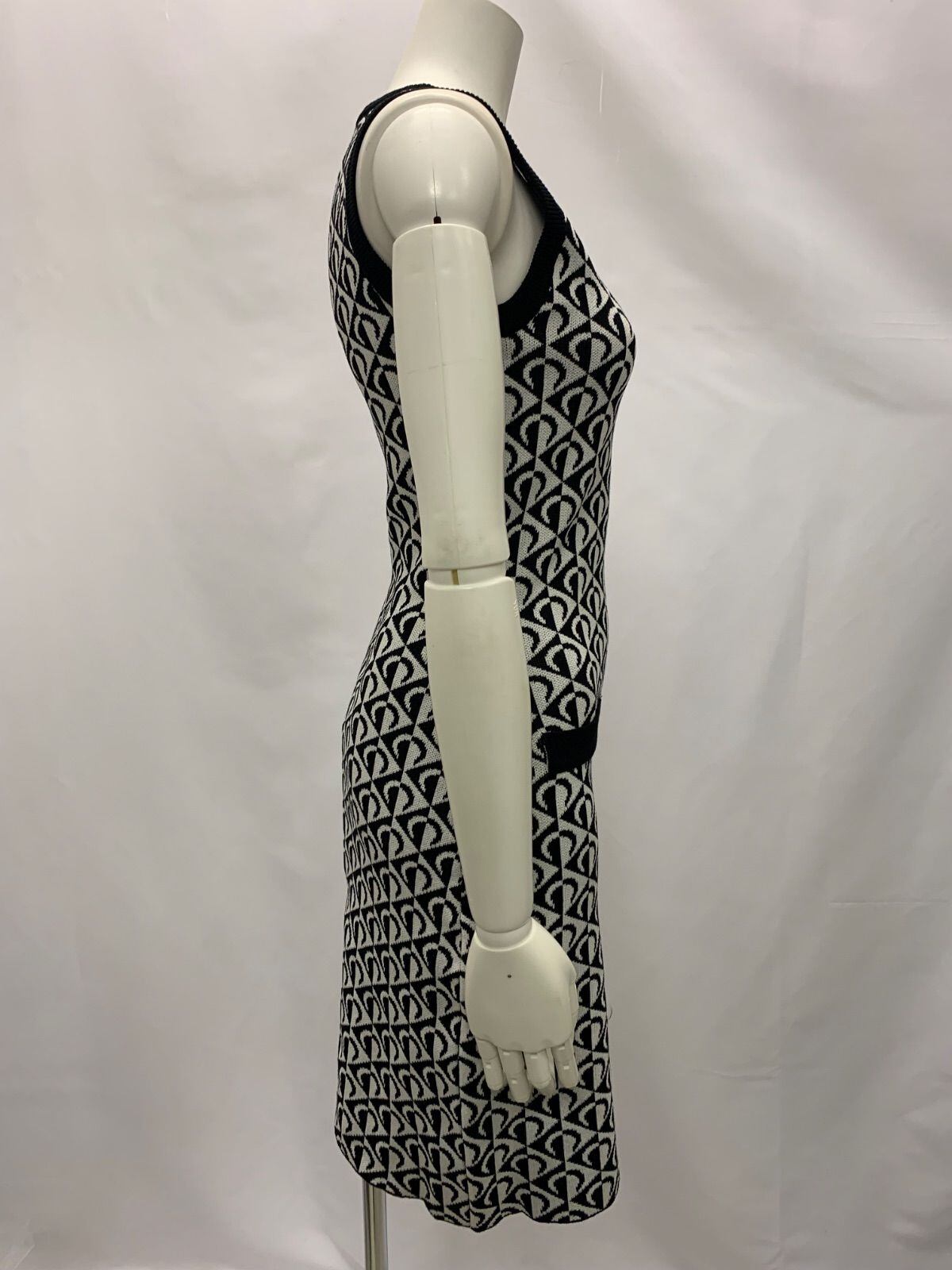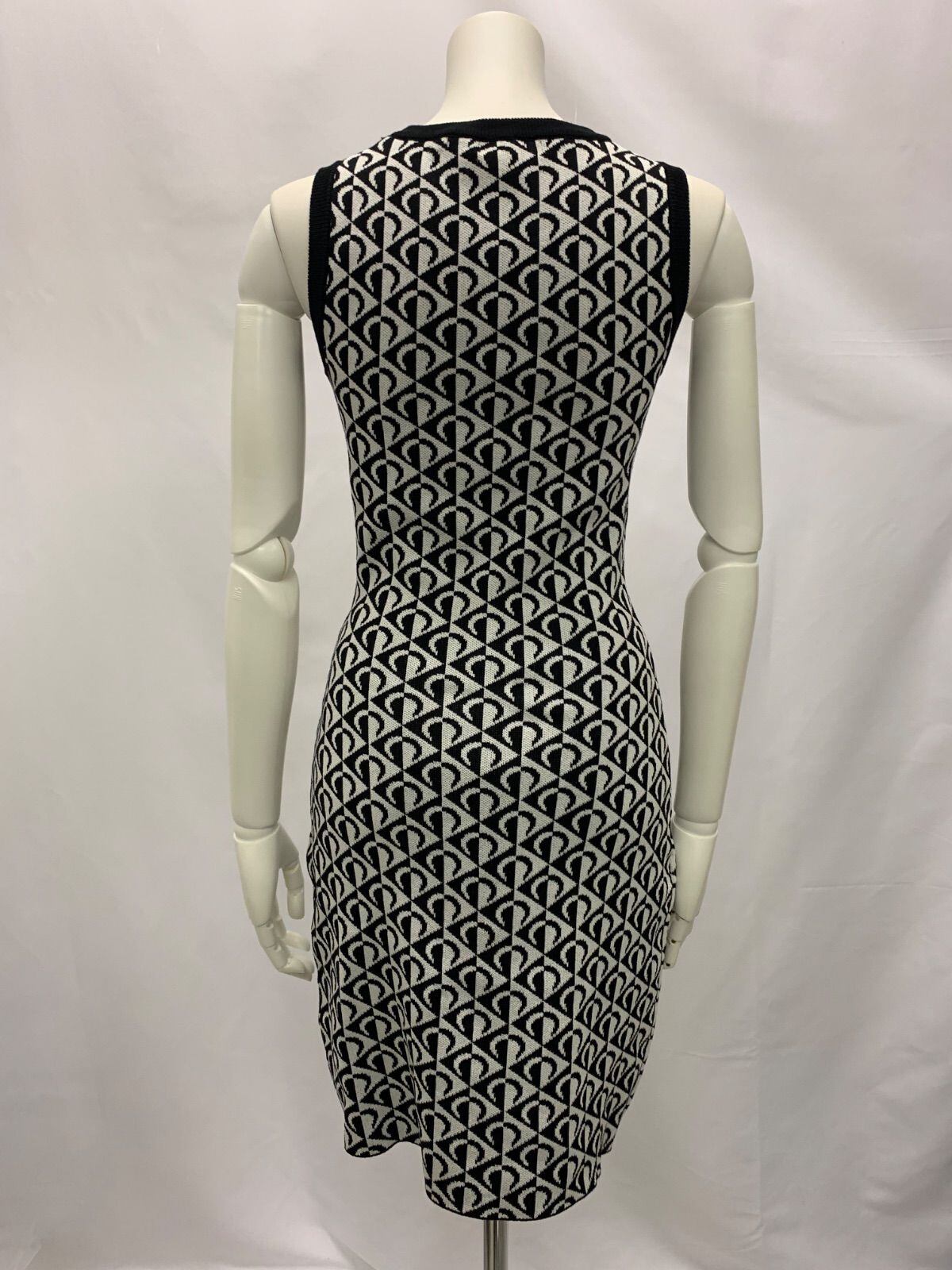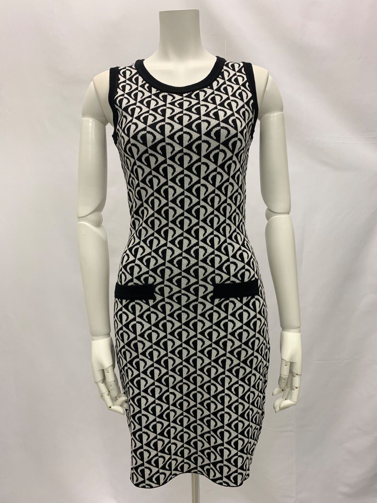 1123 キャバクラ ドレス ニットドレス ノースリーブ 総柄 モノトーン タイト ミディ キャバドレス