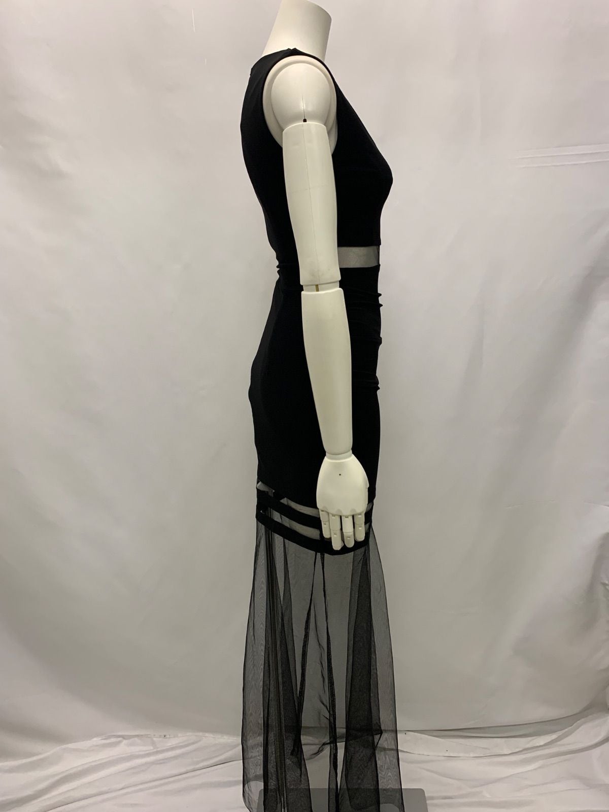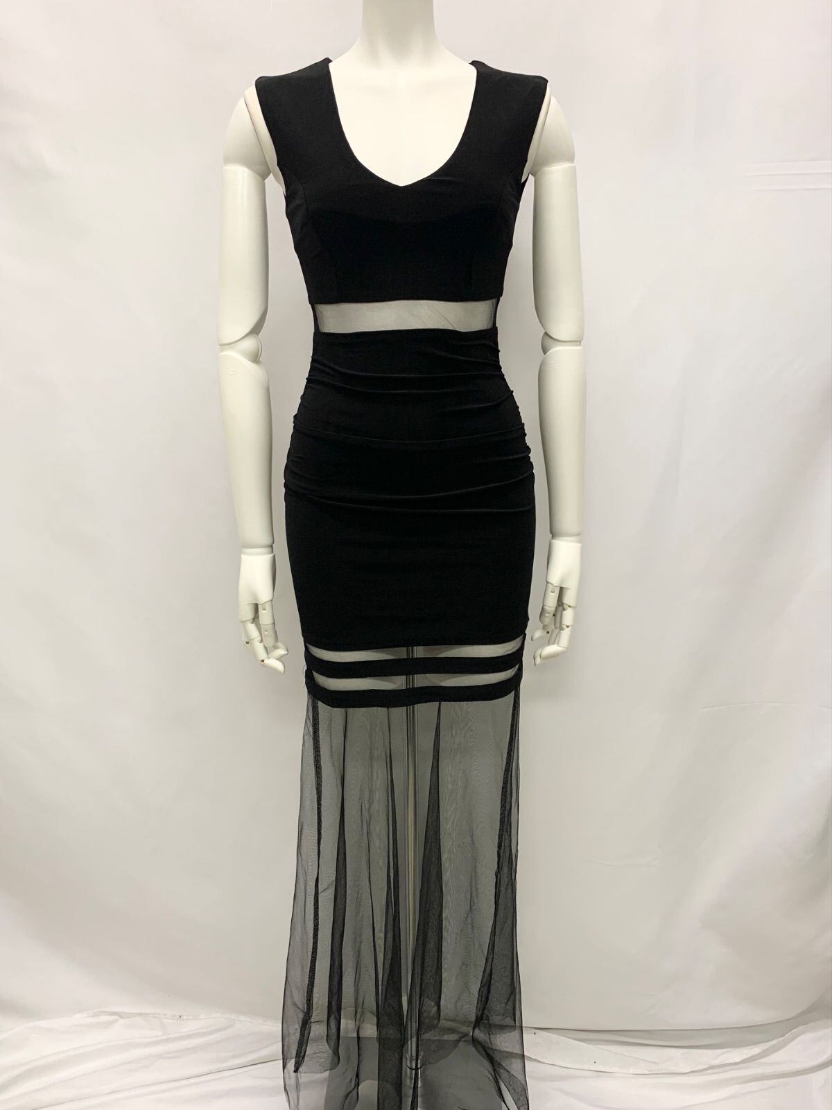 1125 Lian Yi Fang キャバクラ ドレス ノースリーブ ロングドレス シアー シースルー シフォン S キャバドレス