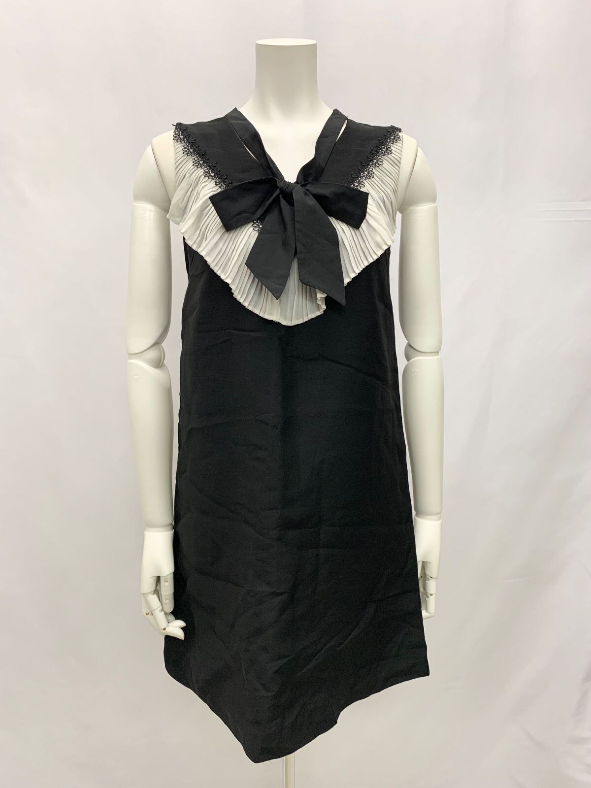 1141 キャバクラ ドレス レース シフォン リボン ノースリーブ キャバドレス S