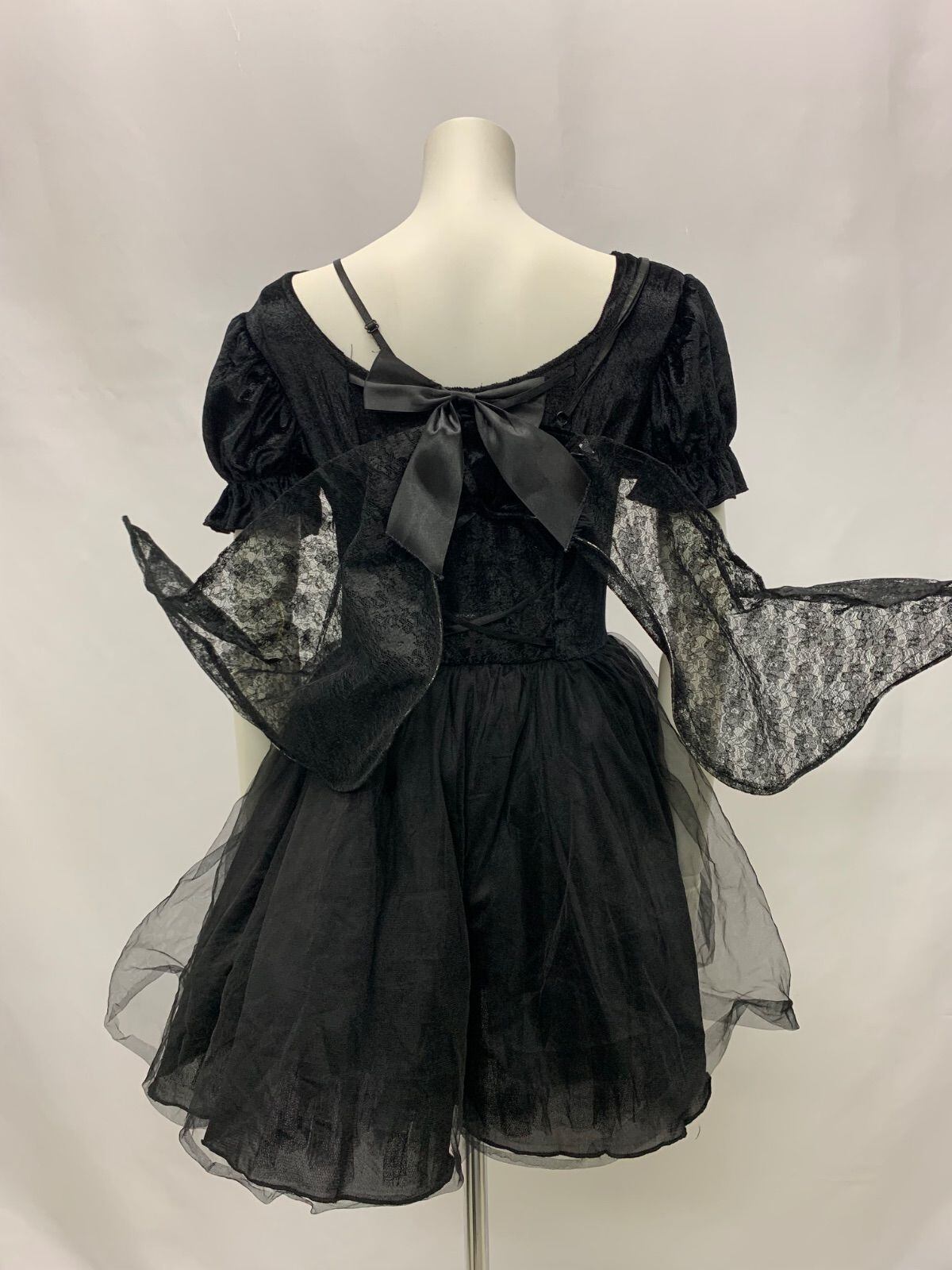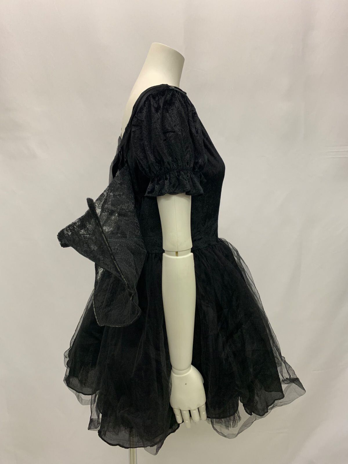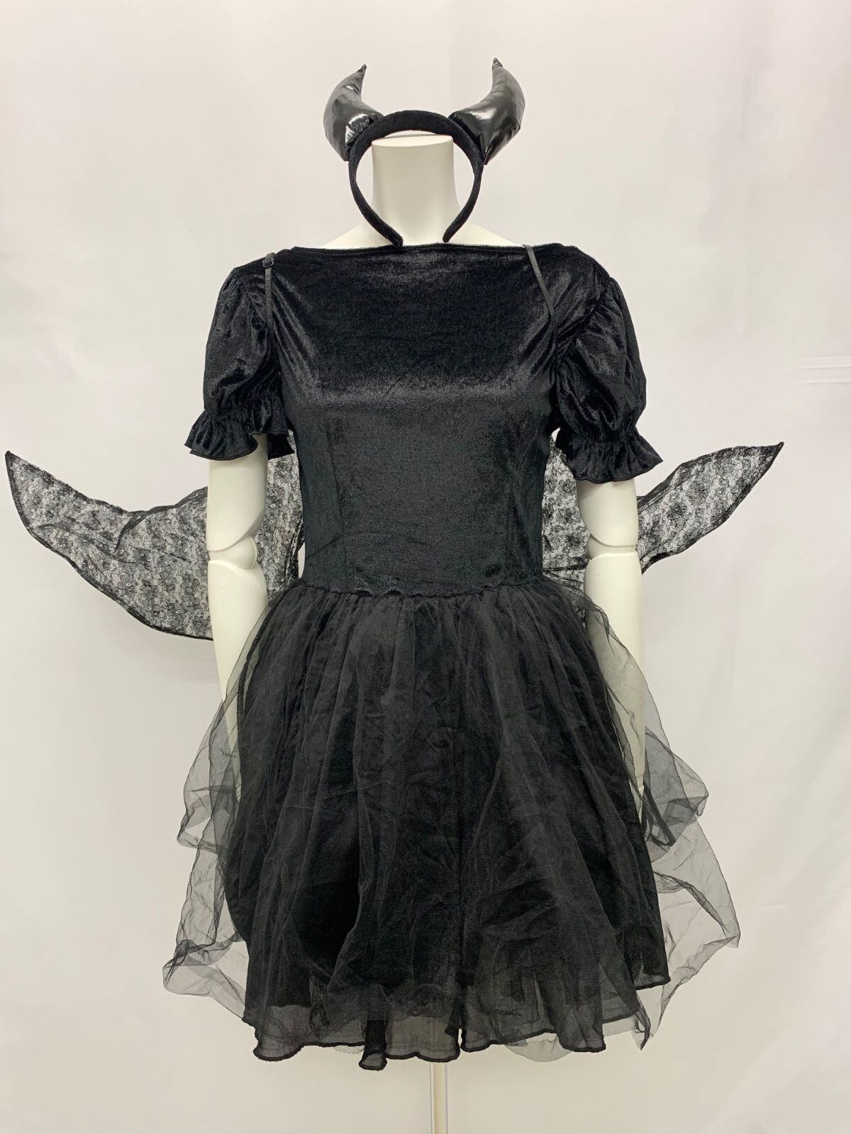 1148 キャバクラ ドレス デビルコスチューム 3点セット コスプレ 仮装 ブラックデビル ハロウィン 衣装 小悪魔 羽 カチューシャ チュール ベロア M キャバドレス