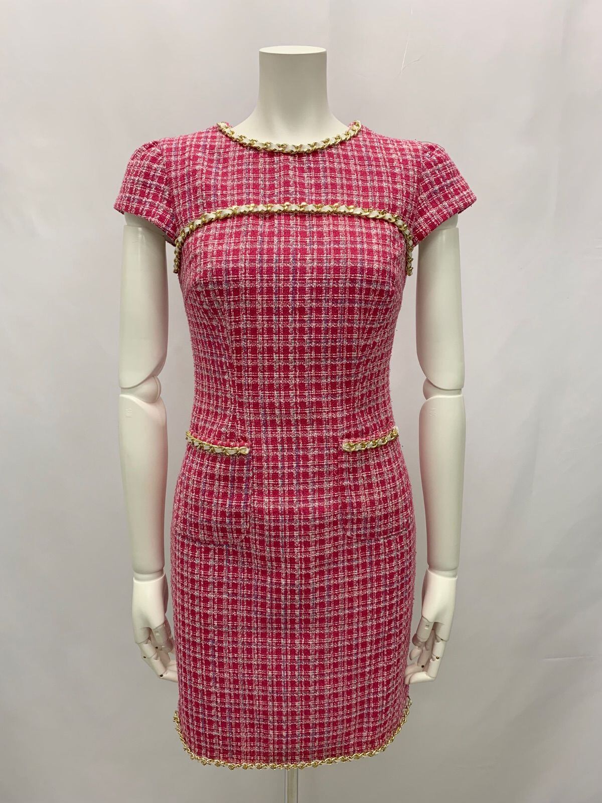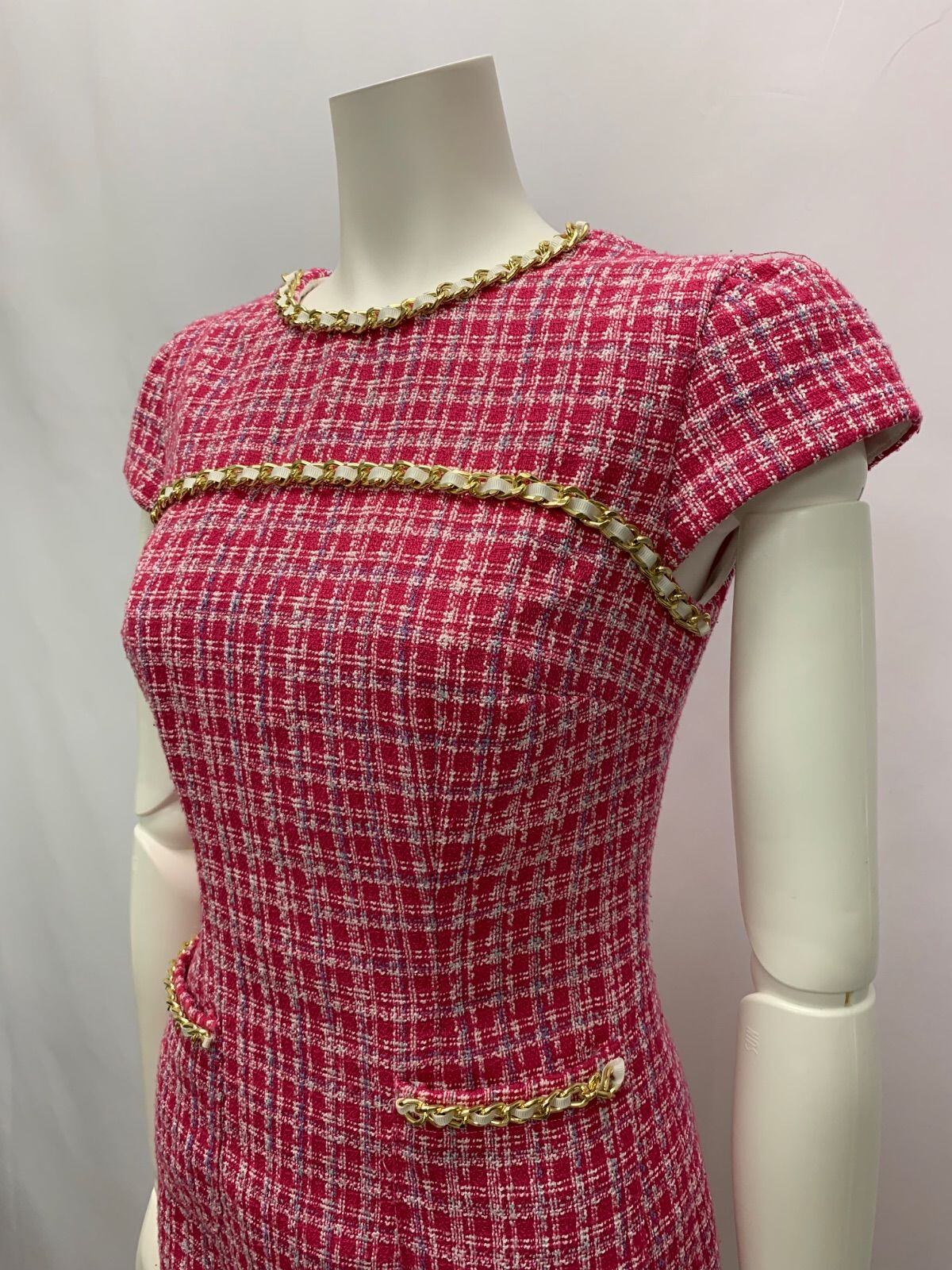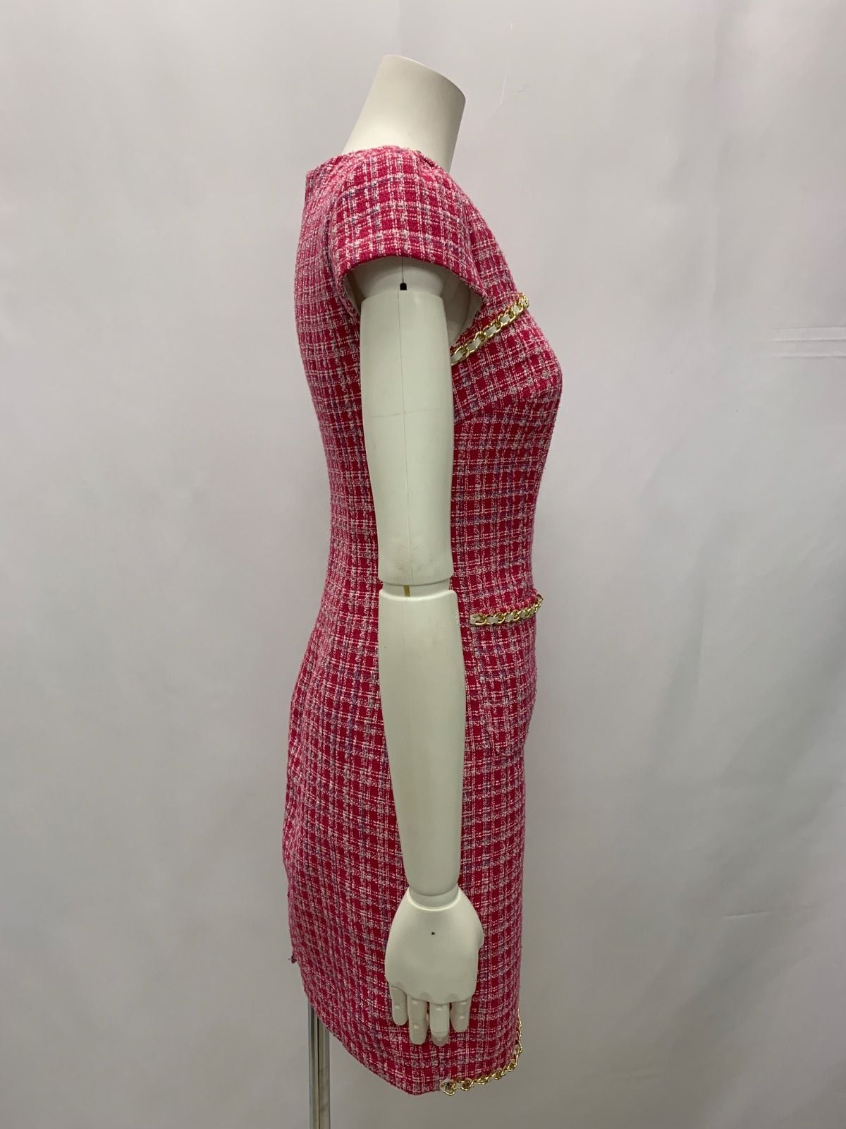 1152 JEWELS ジュエルズ キャバクラ ドレス ツイード ゴールドチェーン ミニ タイト キャバドレス S