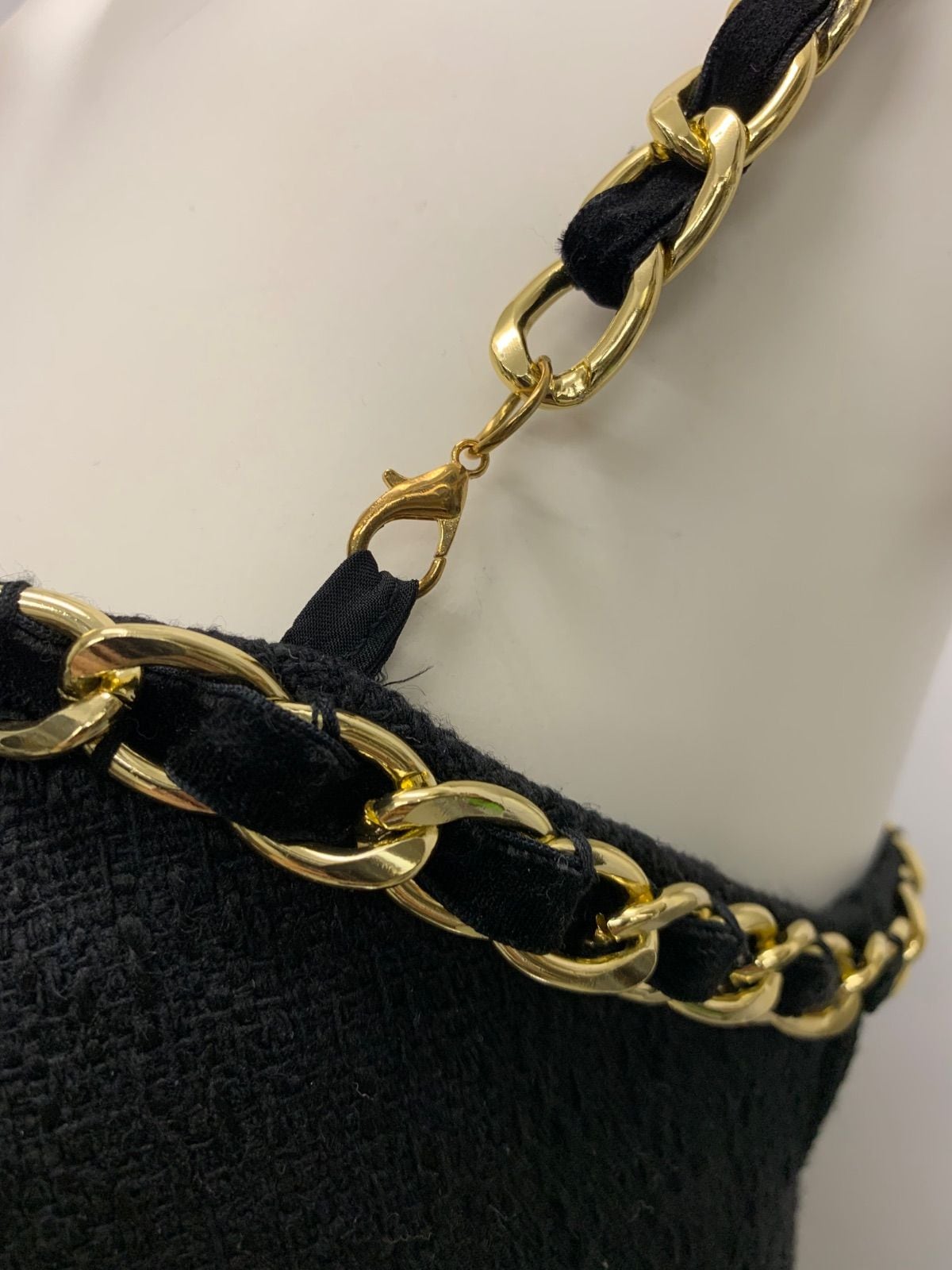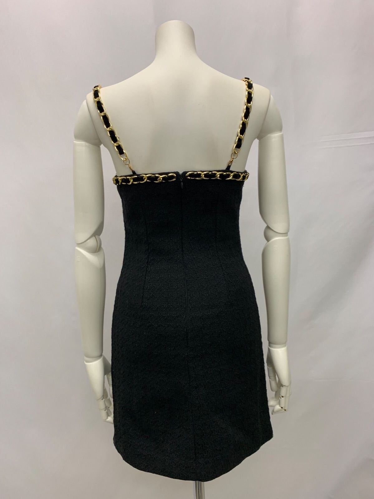 1155 DAZZY デイジー キャバクラ ドレス ツイード ゴールドチェーンストラップ キャミ タイト ミニ キャバドレス S