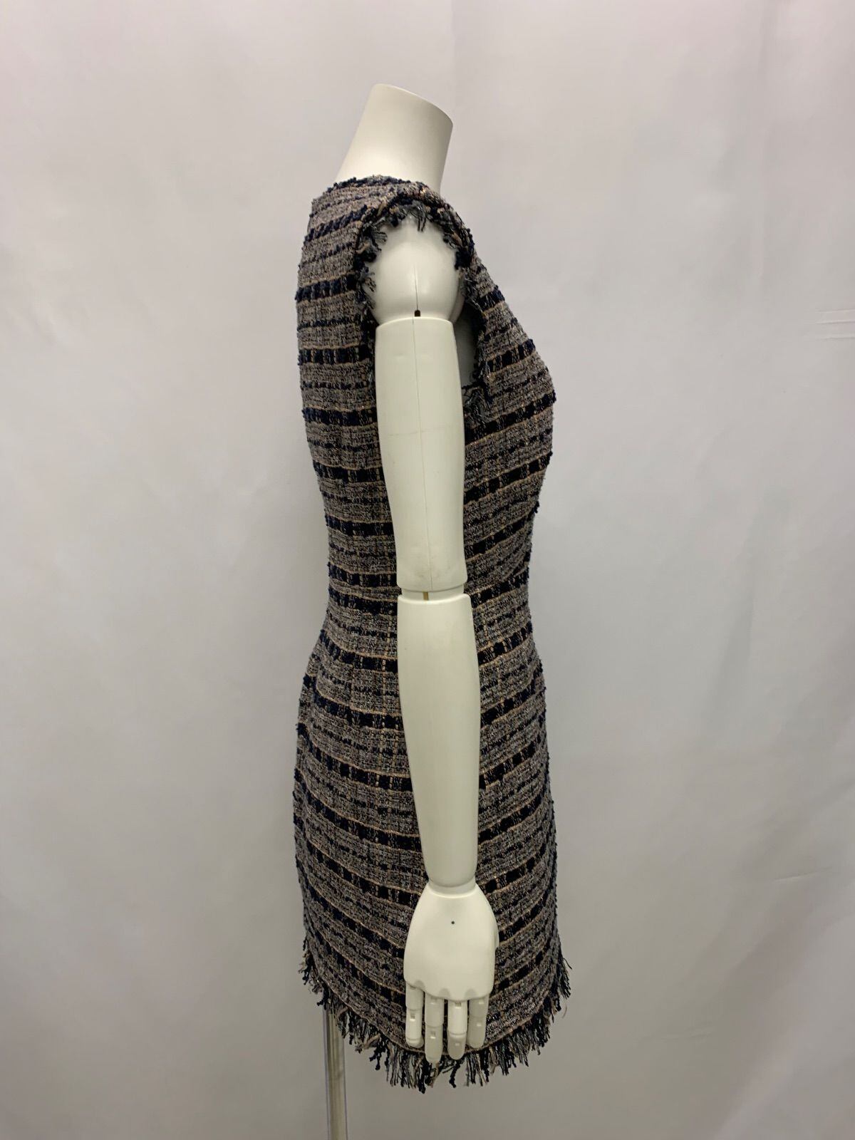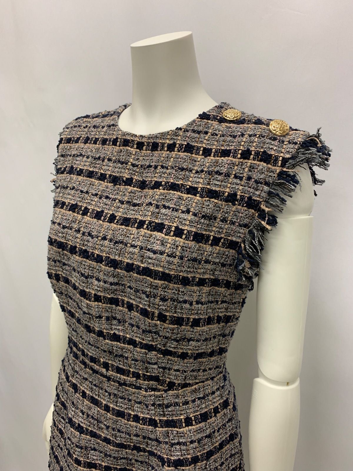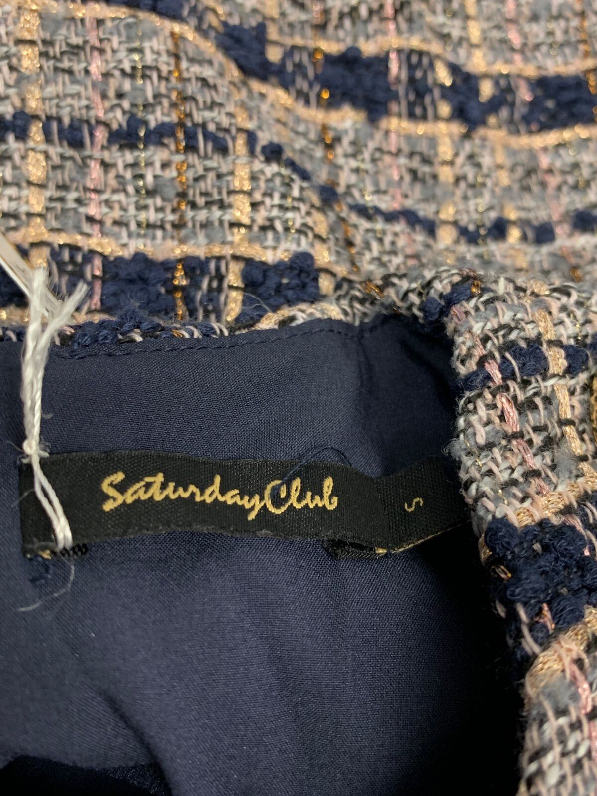 1159 SATURDAY CLUB サタデークラブ キャバクラ ドレス ツイードラメ ノースリーブ フリンジ ゴールドボタン タイト ミニ キャバドレス S