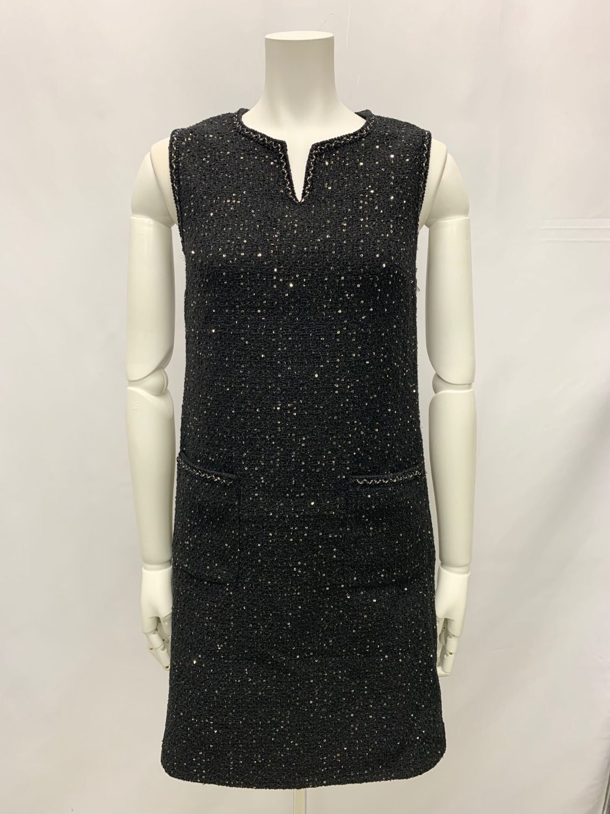 1162 キャバクラ ドレス スパンコール ツイード ノースリーブ Aライン キャバドレス S