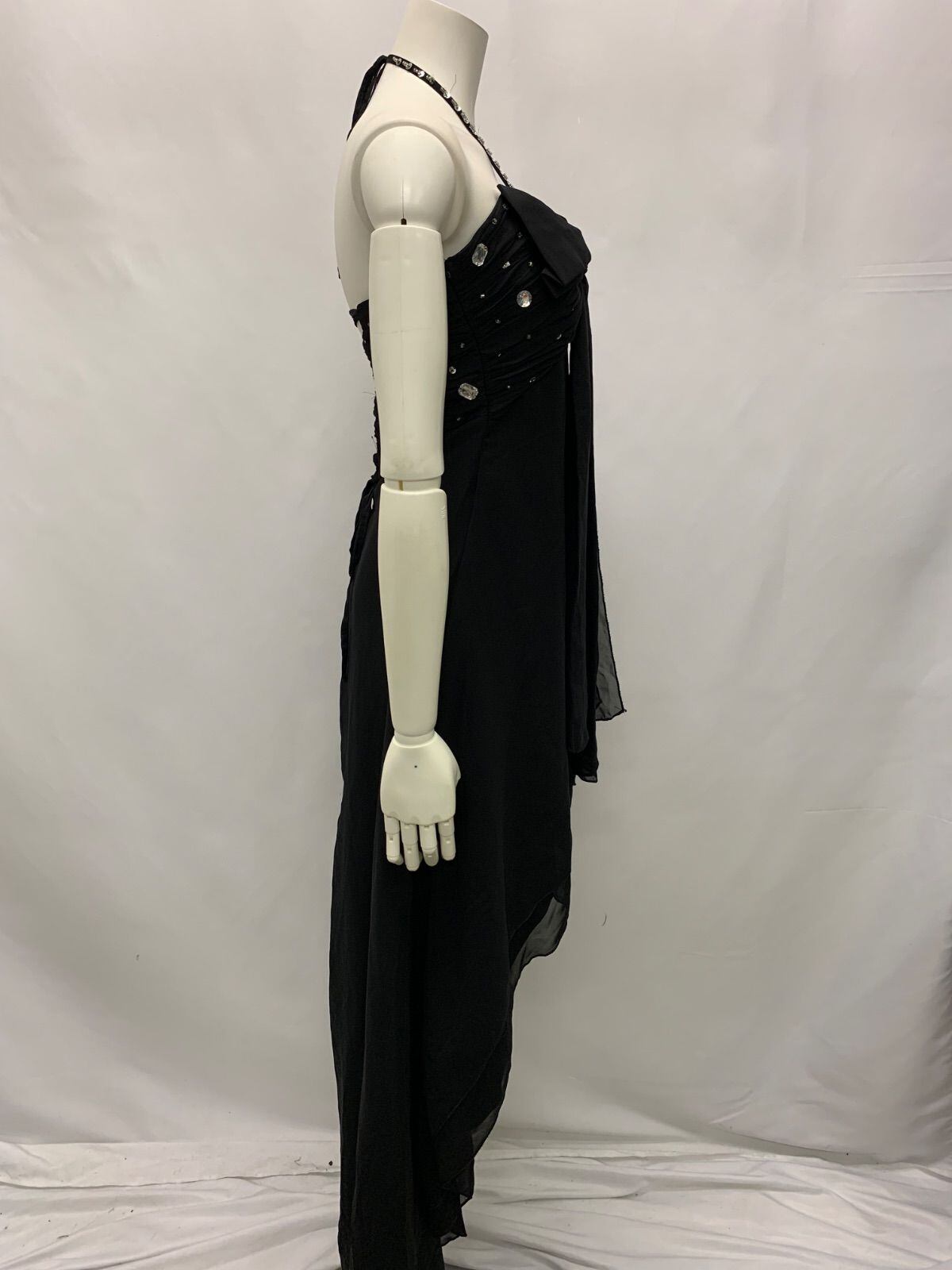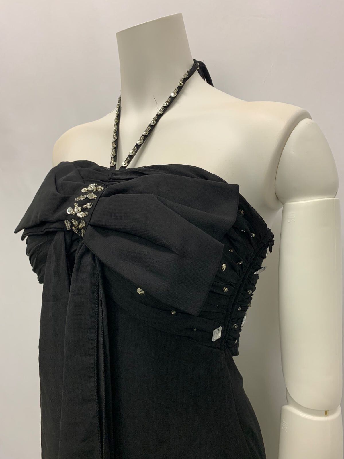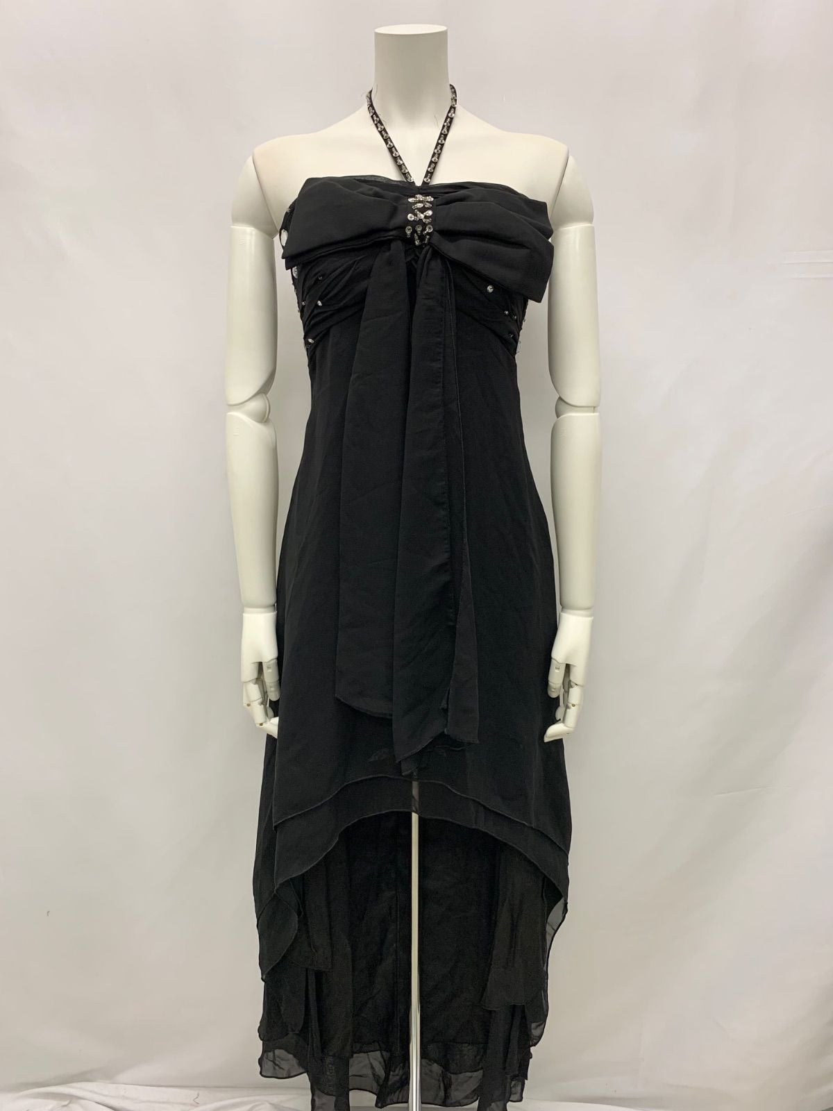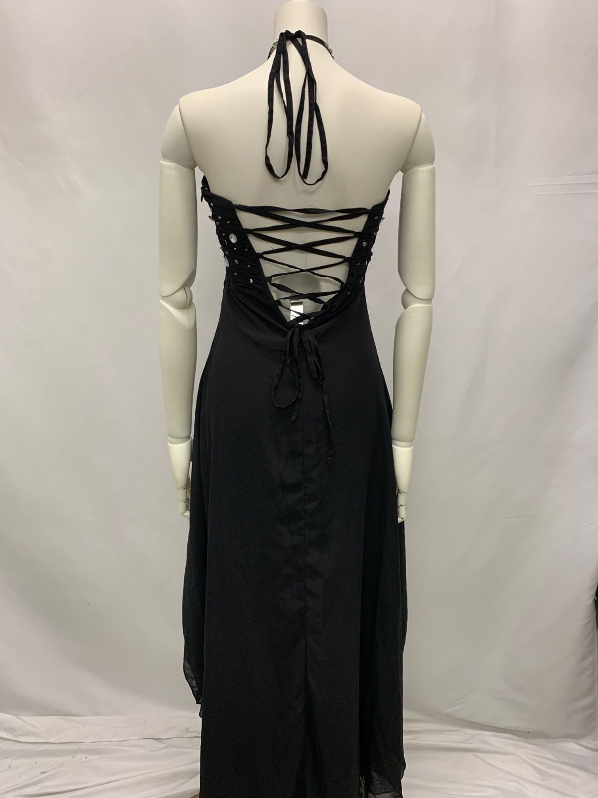 1173 キャバクラ ロングドレス スパンコール ホルターネック ストーン フリル シフォン イベント リボン キャバドレス