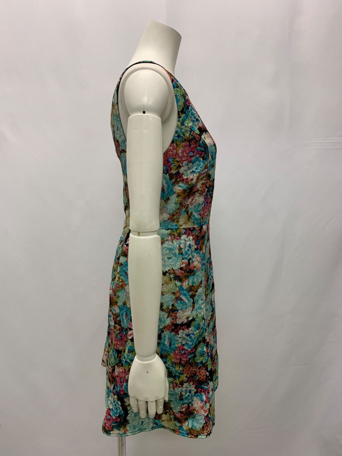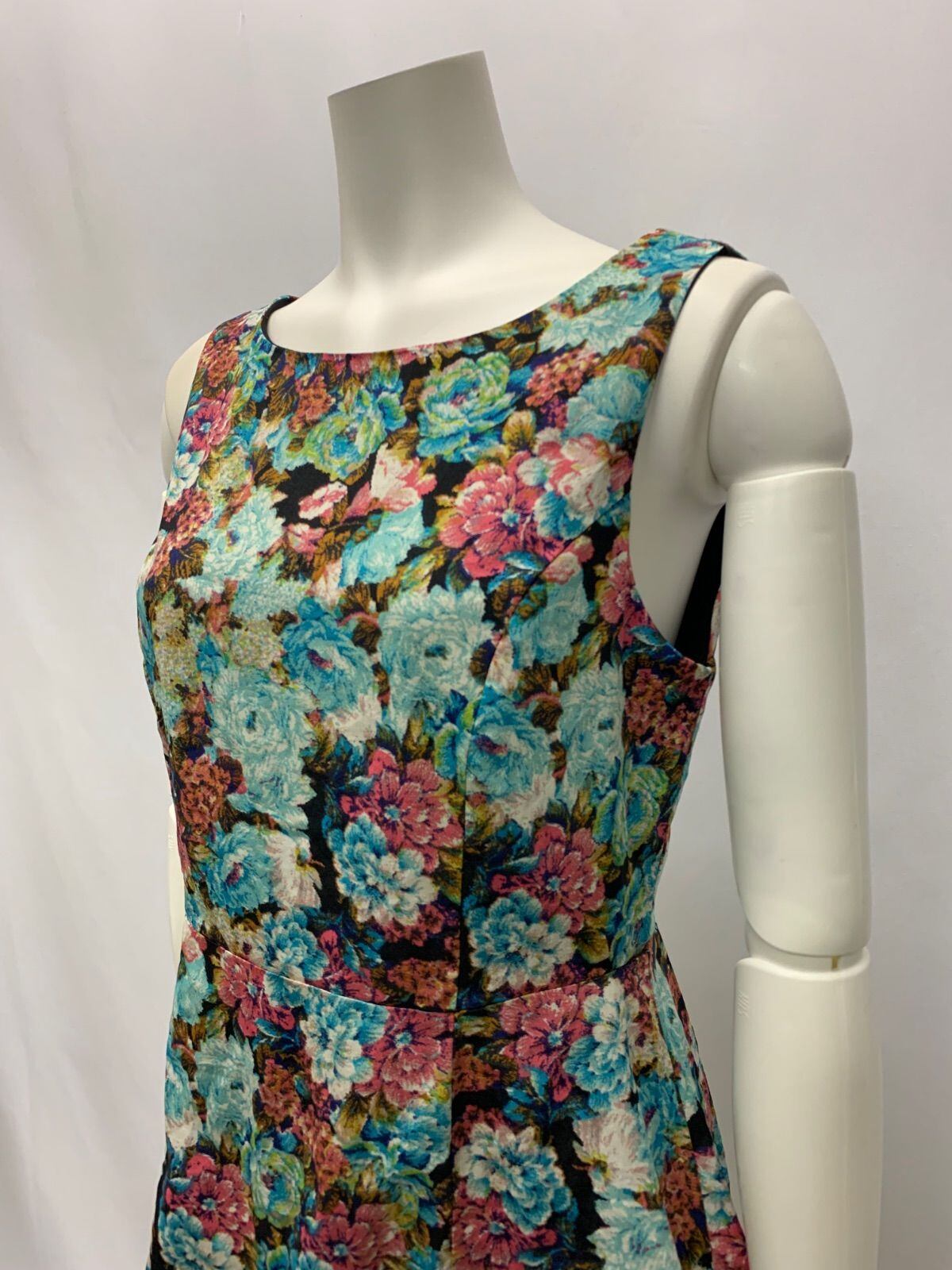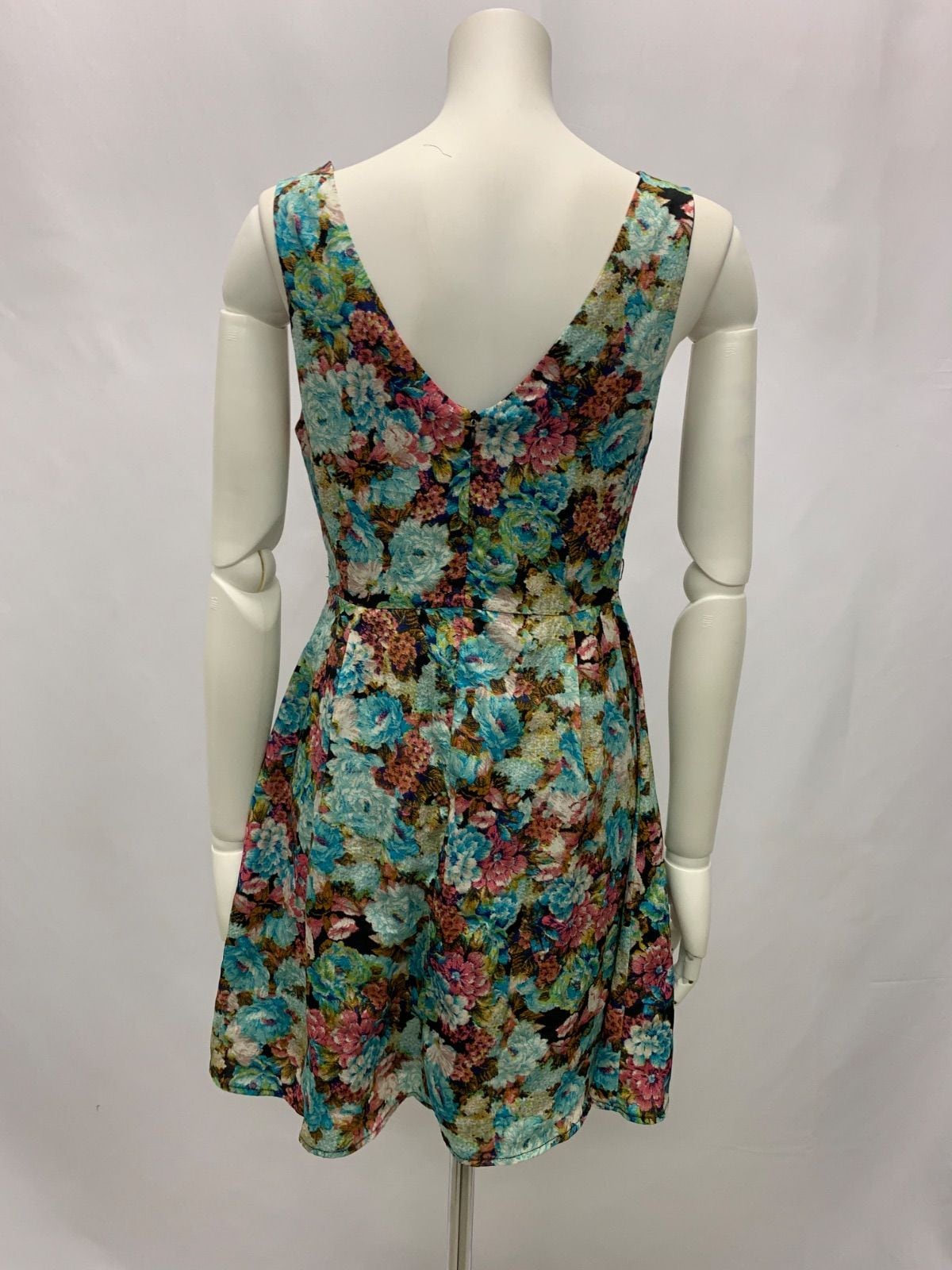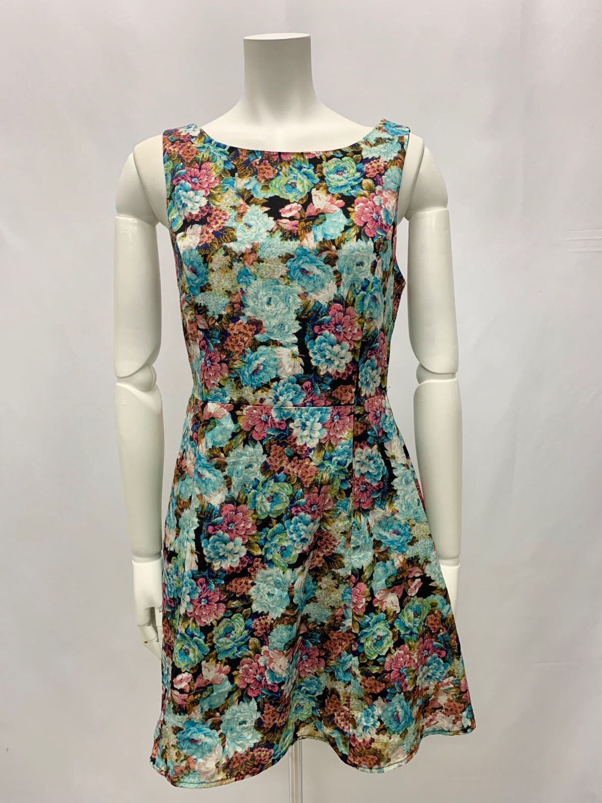 1178 FOREVER21 フォーエバートゥエンティーワン バラ柄ワンピース Aライン フレア ミニ ノースリーブ キャバドレス S