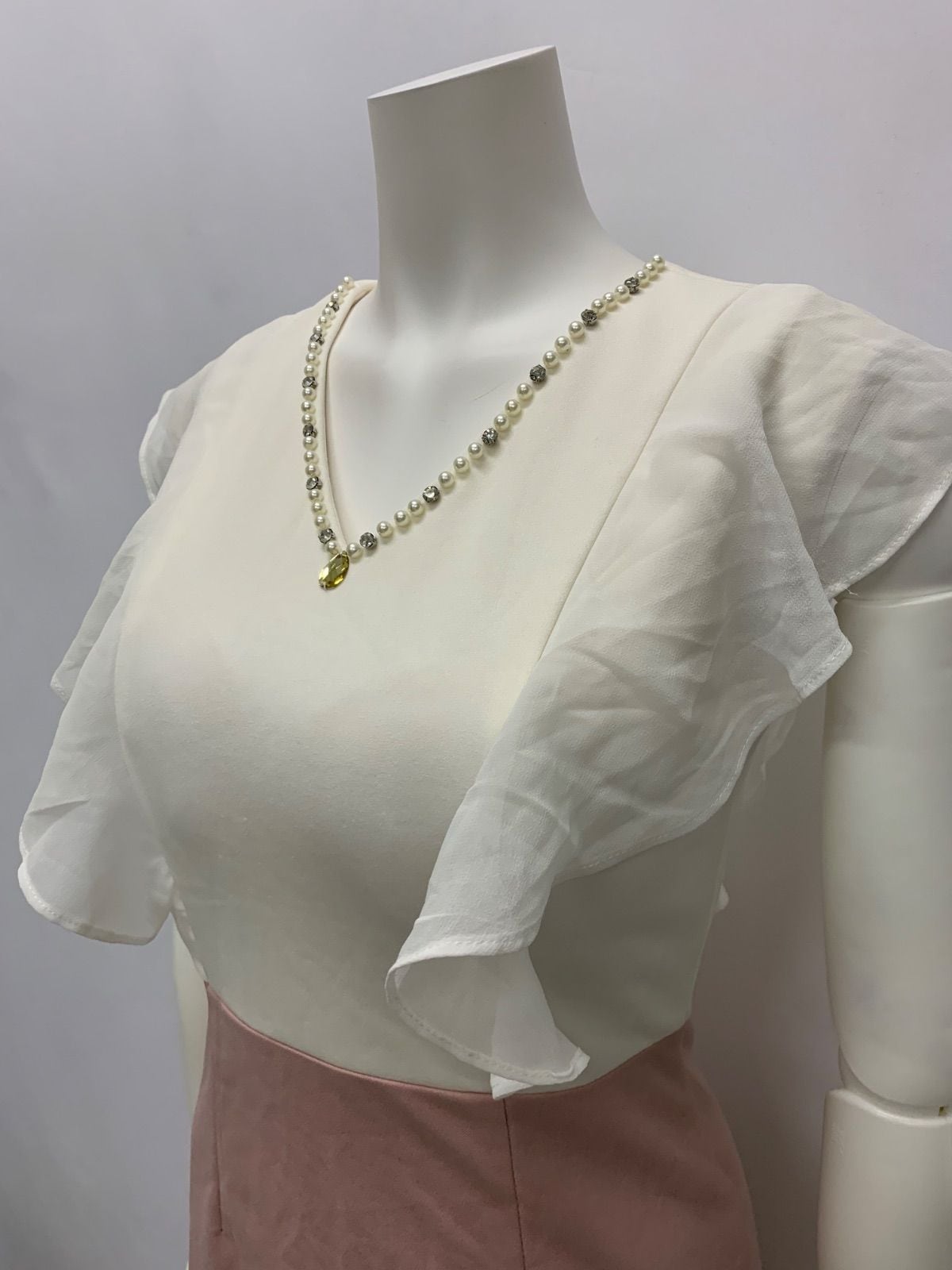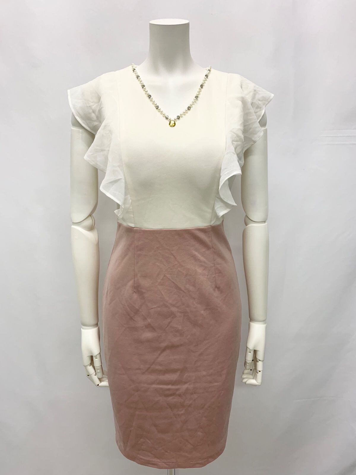 1184 dazzy store デイジーストア キャバクラ ドレス シフォン フリル ノースリーブ パール ストーン Vネック キャバドレス S
