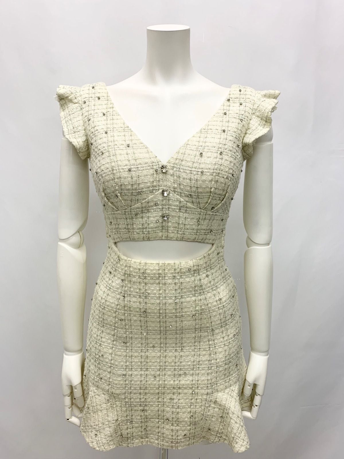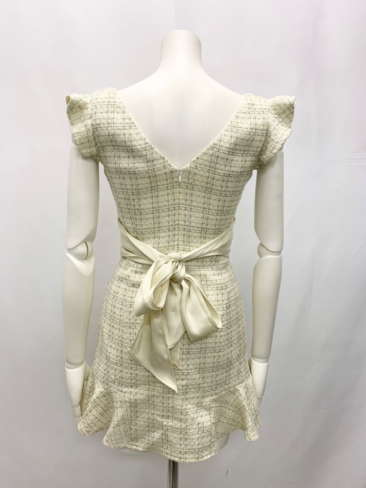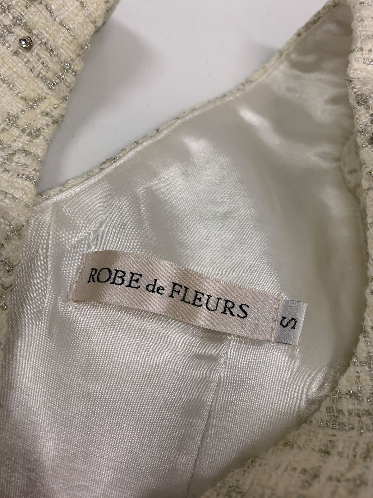 1195 ROBE de FLEURS ローブドフルール キャバクラ ドレス ツイードラメ ストーン リボン フリル ミニ タイト キャバドレス S