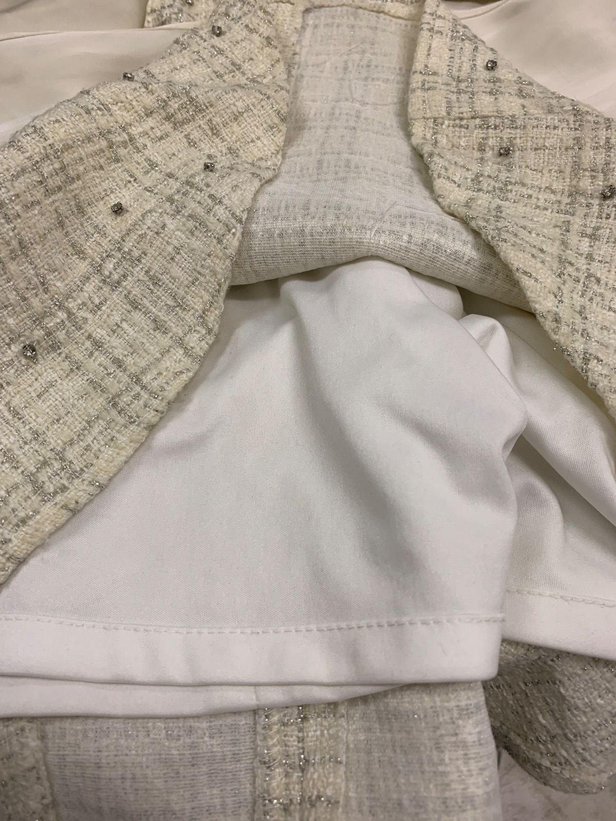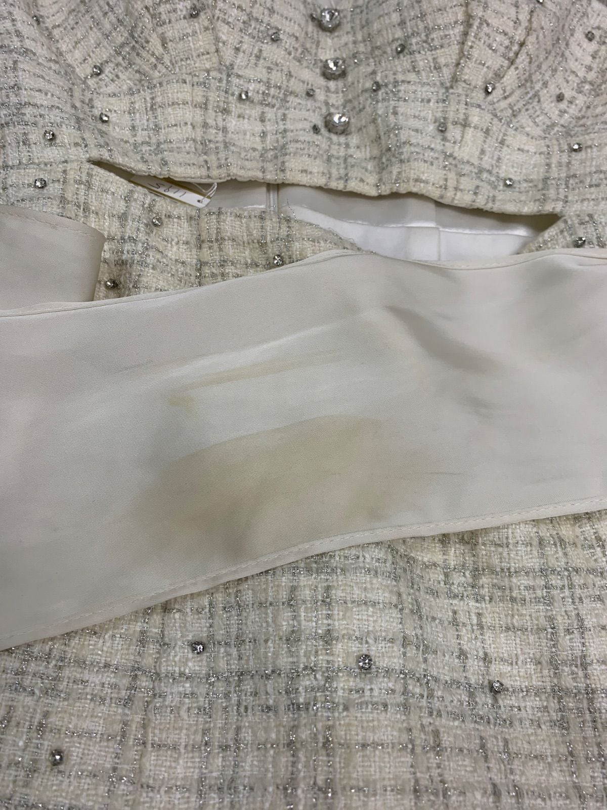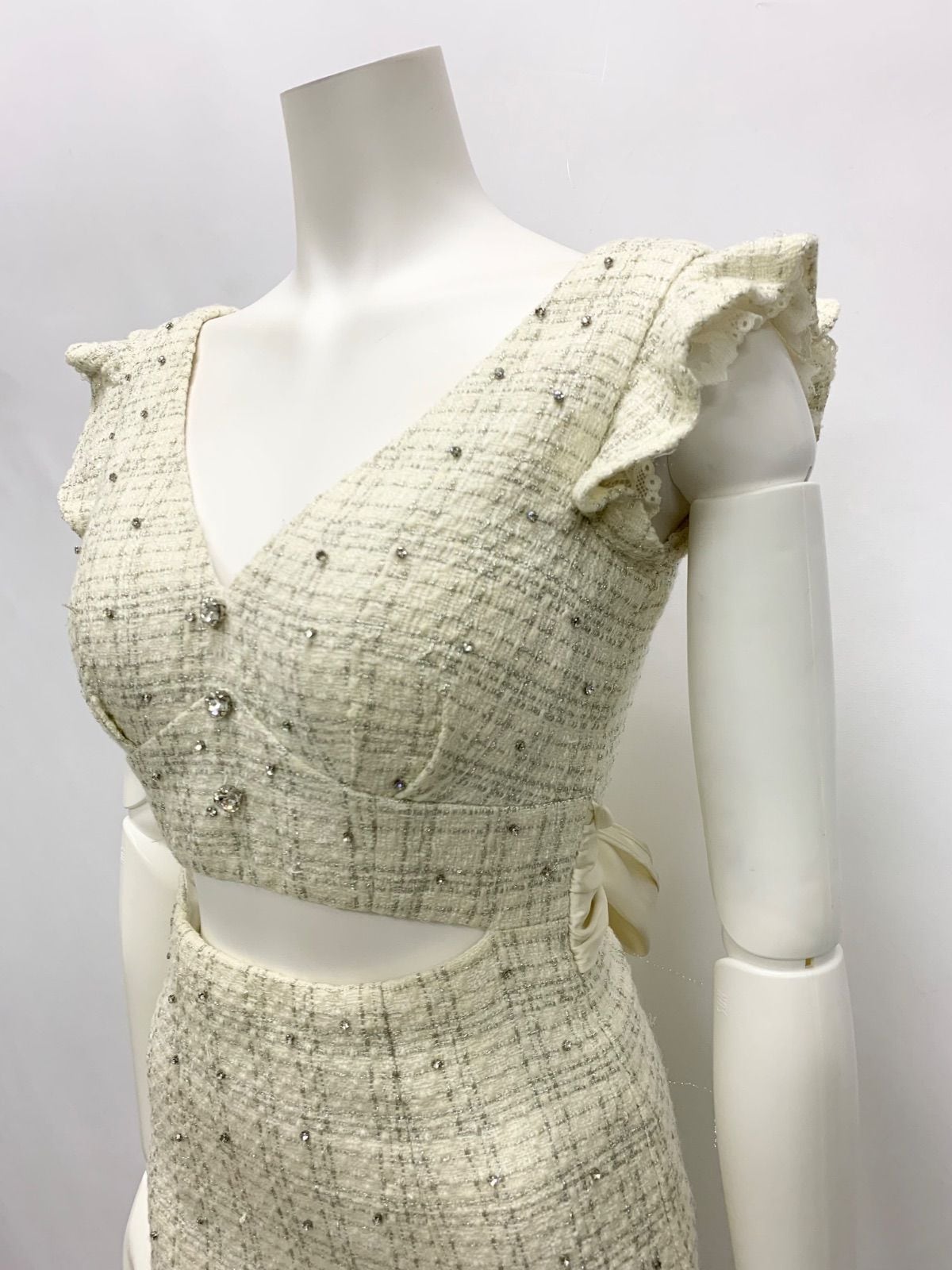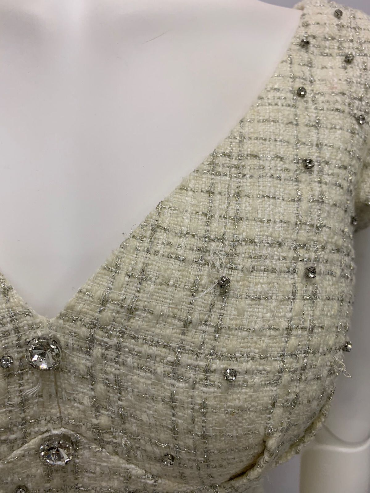 1195 ROBE de FLEURS ローブドフルール キャバクラ ドレス ツイードラメ ストーン リボン フリル ミニ タイト キャバドレス S