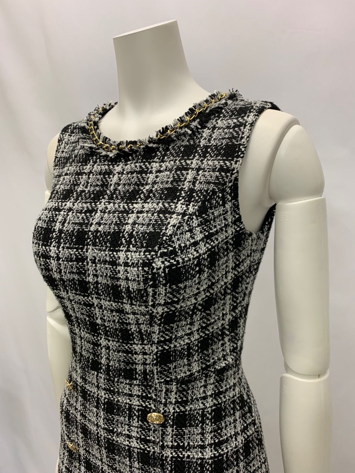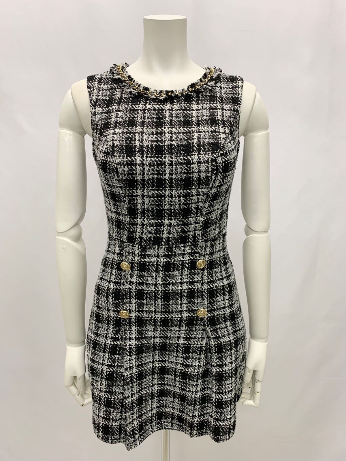 1199 Love Rich ラブリッチ キャバクラ ドレス ツイードラメ ノースリーブ チェーン ミニ バックオープン キャバドレス M