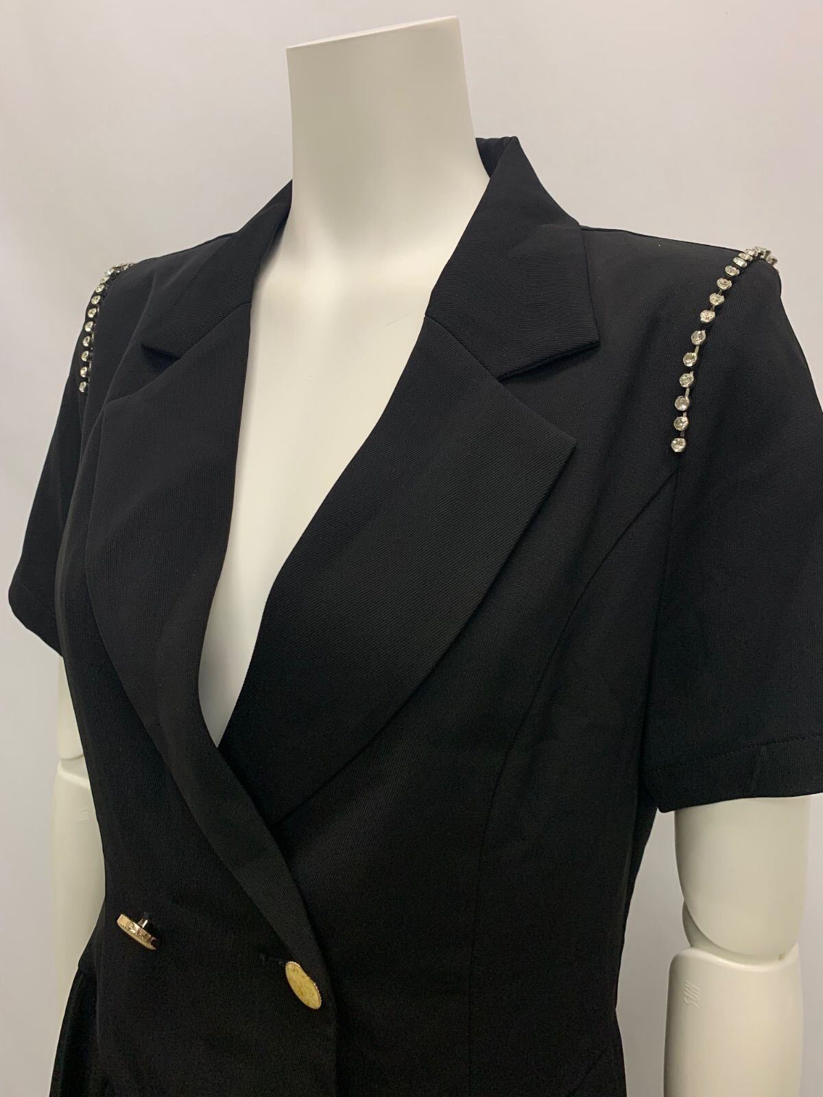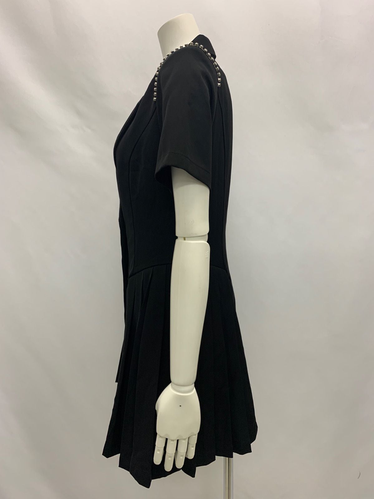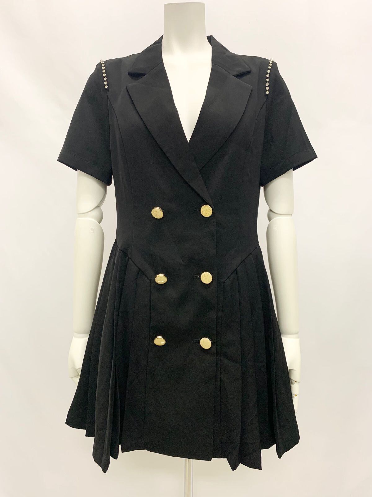 1229 Vanity ME ヴァニティミー キャバクラ ドレス プリーツスカート ビジュー ストーン ゴールド キラキラ ボタン フォーマル ミニ キャバドレス M