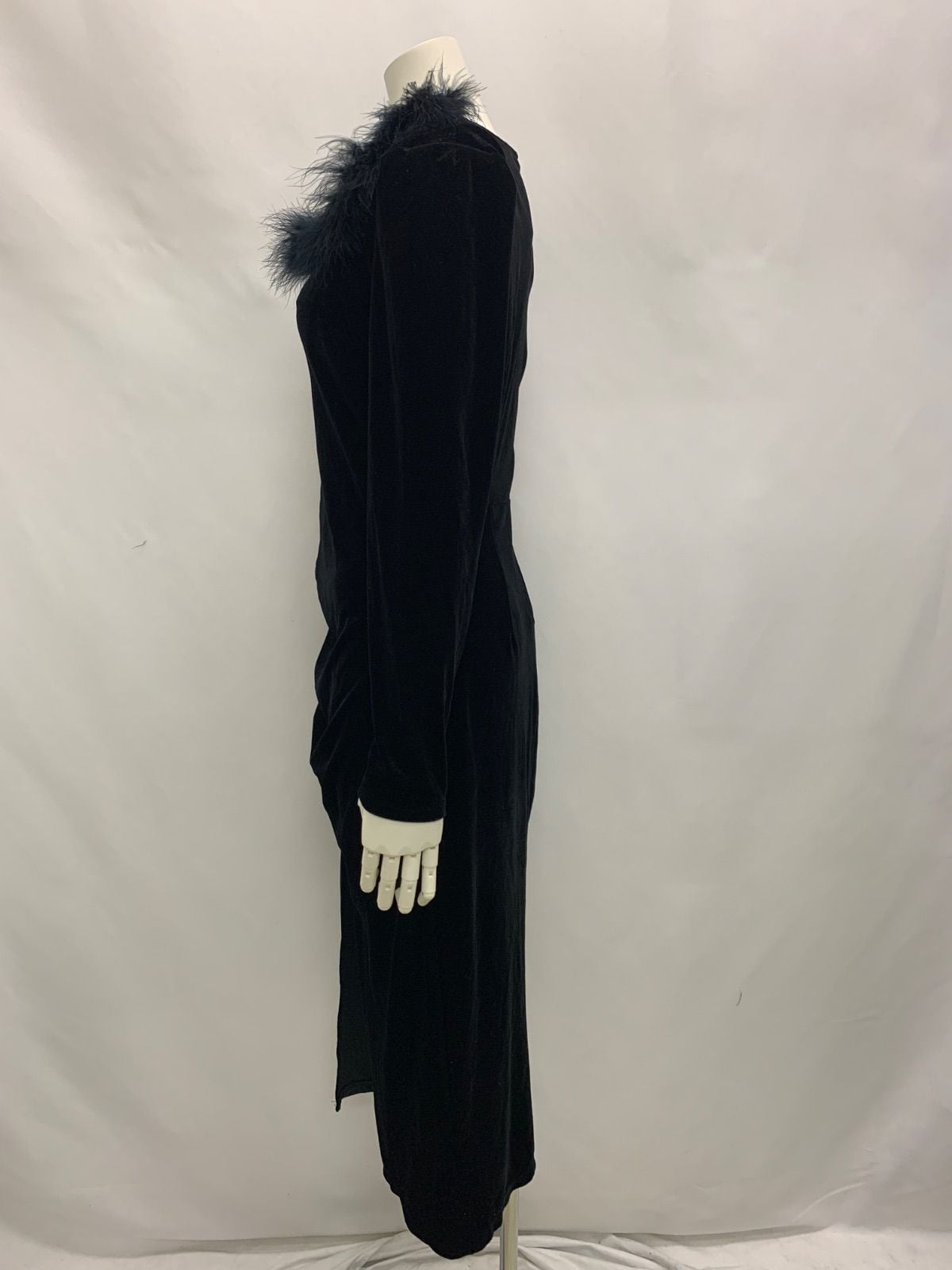 1233 MILANSPRING ミランスプリング キャバクラ ドレス ベロア スリット ロング フワフワ 羽 シンプル ファー キャバドレス