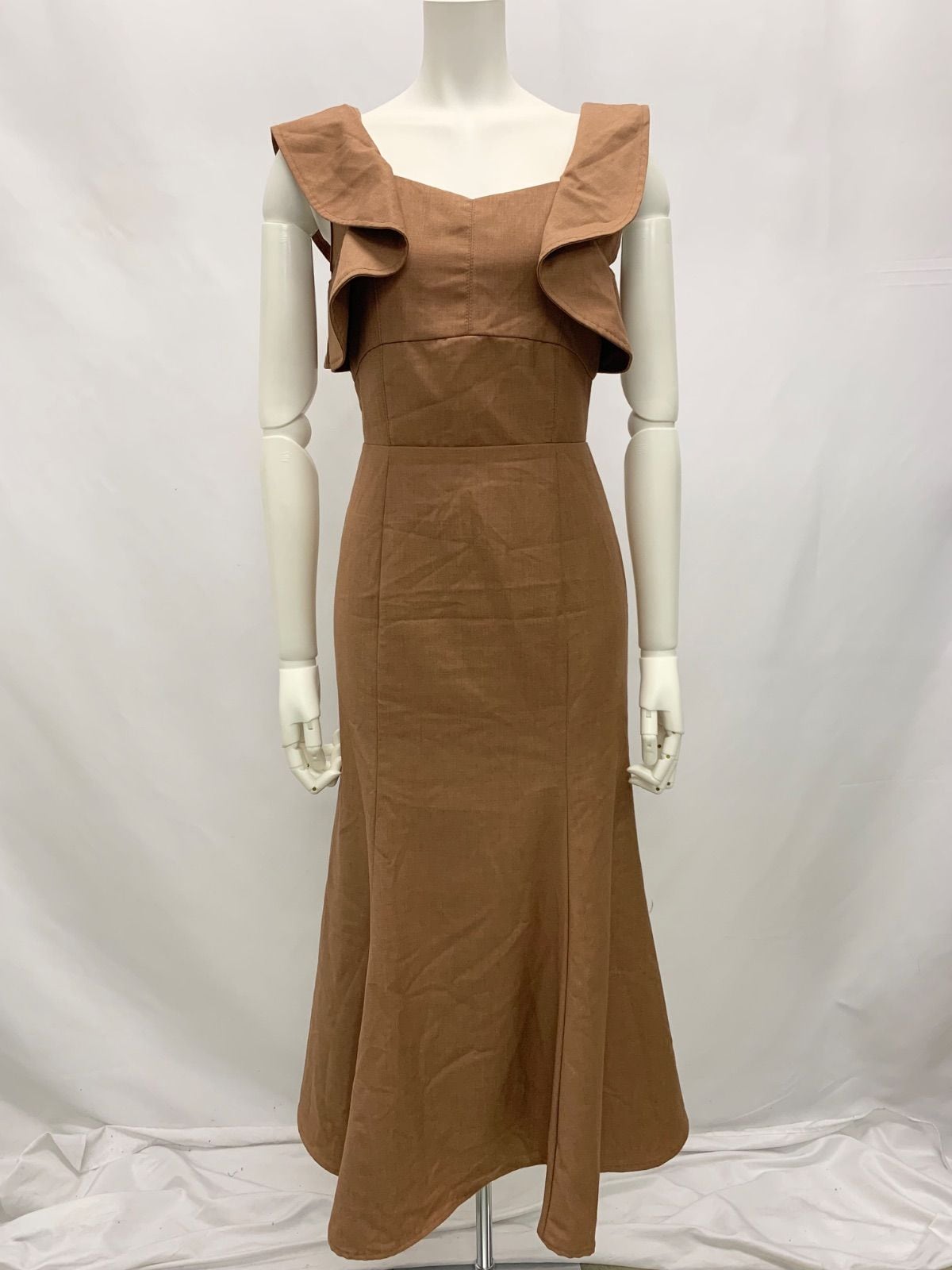 1252 RESEXXY リゼクシー マーメイドロングワンピース キャバクラ ドレス フリル ノースリーブ 無地 キャバドレス