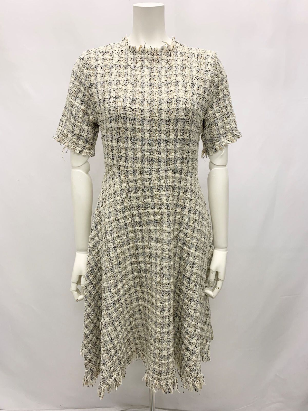 1261 SZ キャバクラ ドレス ツイード フレアワンピース フリンジ キャバドレス M