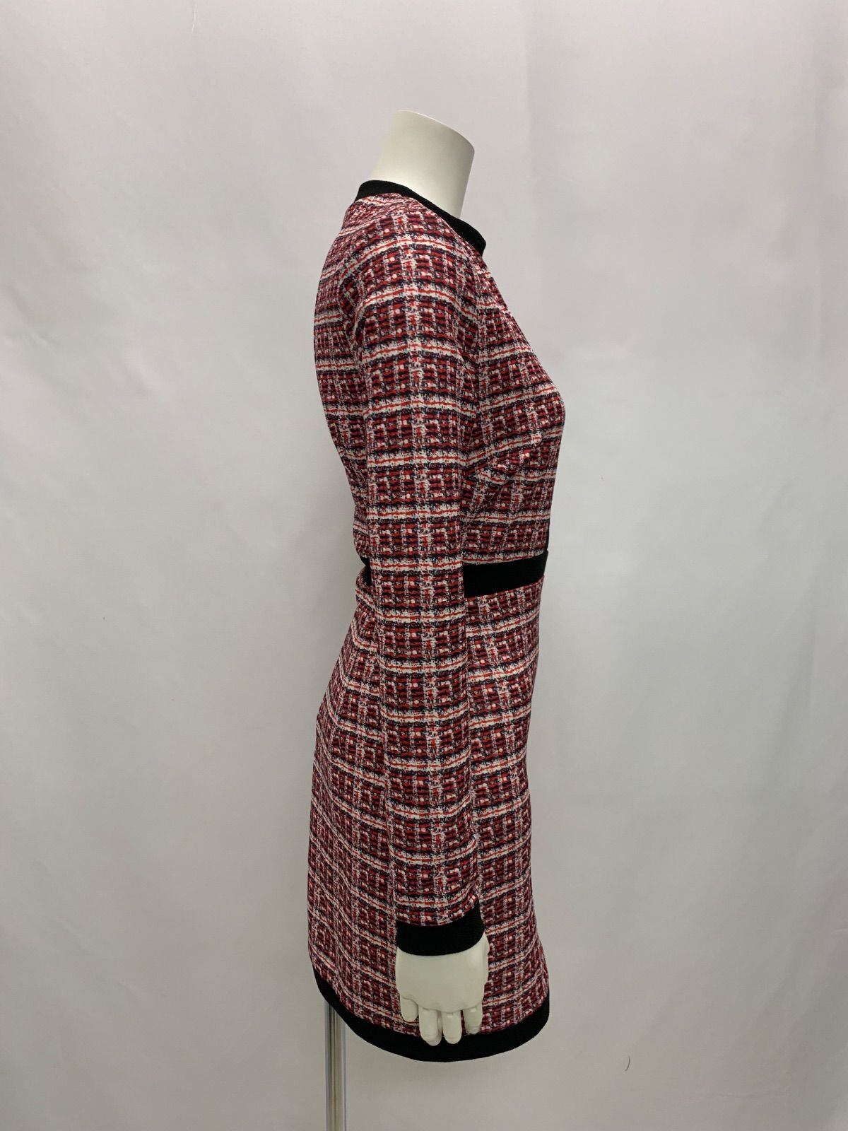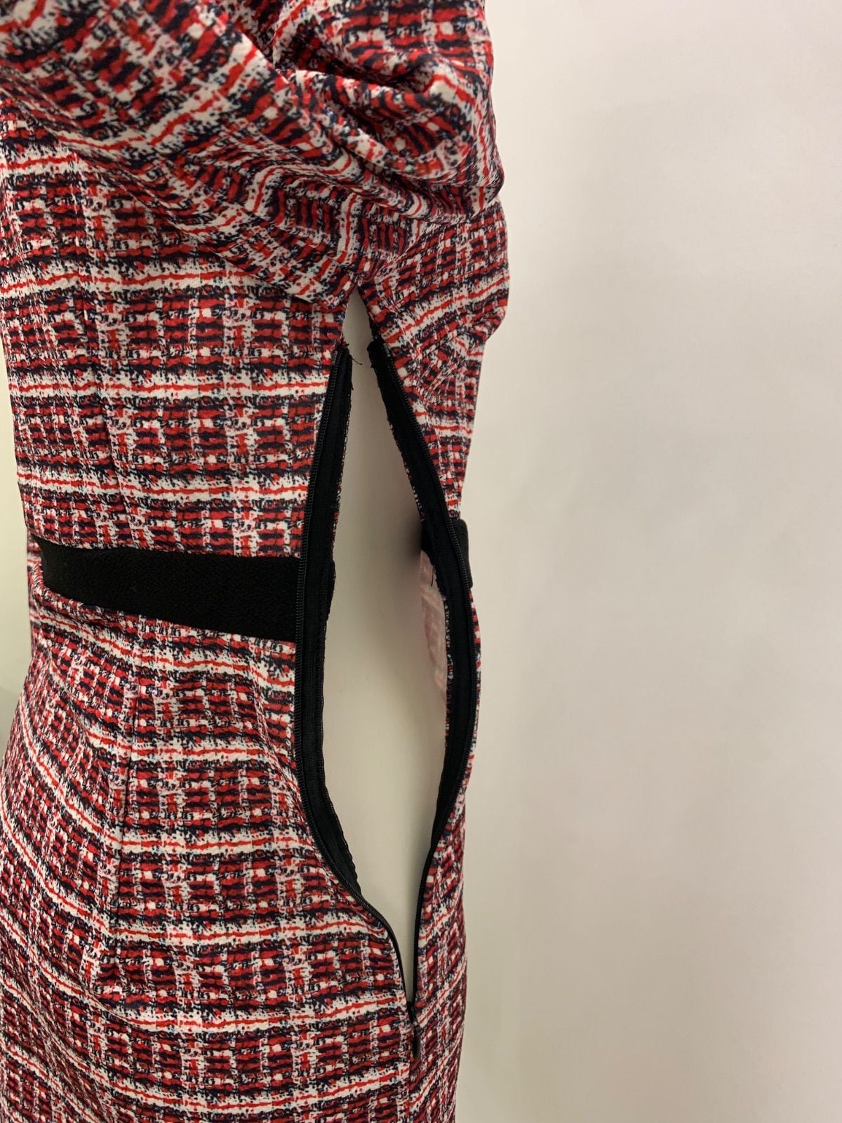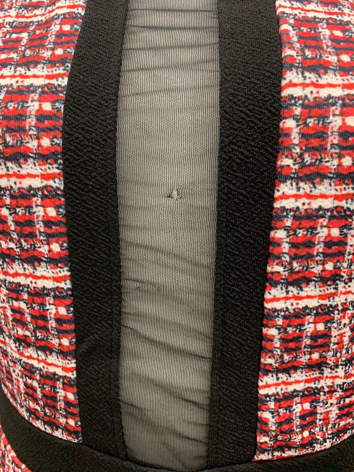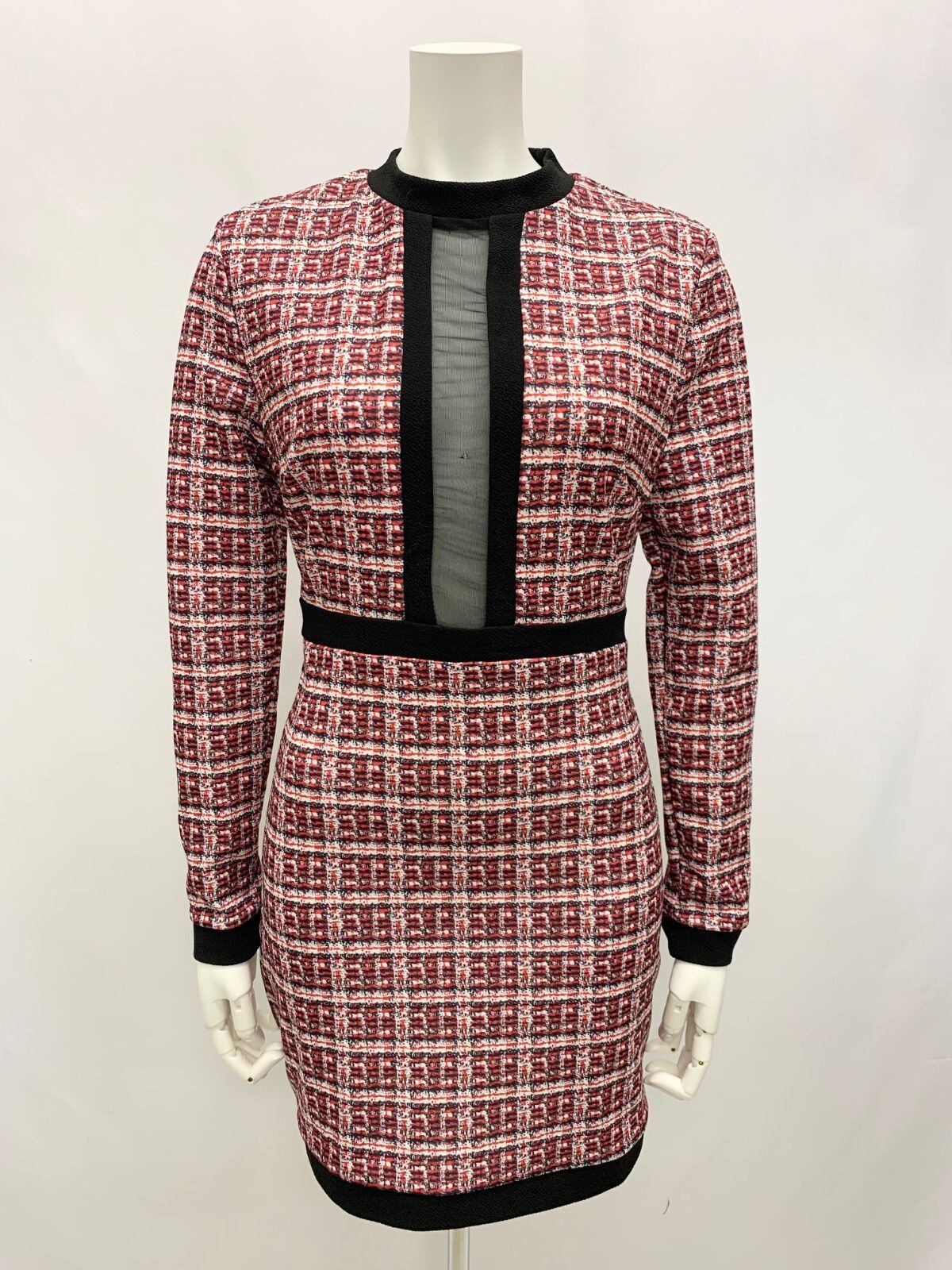 1265 キャバクラ ドレス 総柄 シースルー タイト ミニ 長袖 ハイネック キャバドレス S
