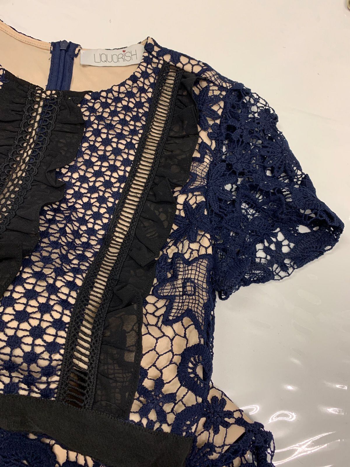 1278 LIQUORISH リカリッシュ キャバクラ ドレス 総レース クロシェ フリル タイト キャバドレス 36