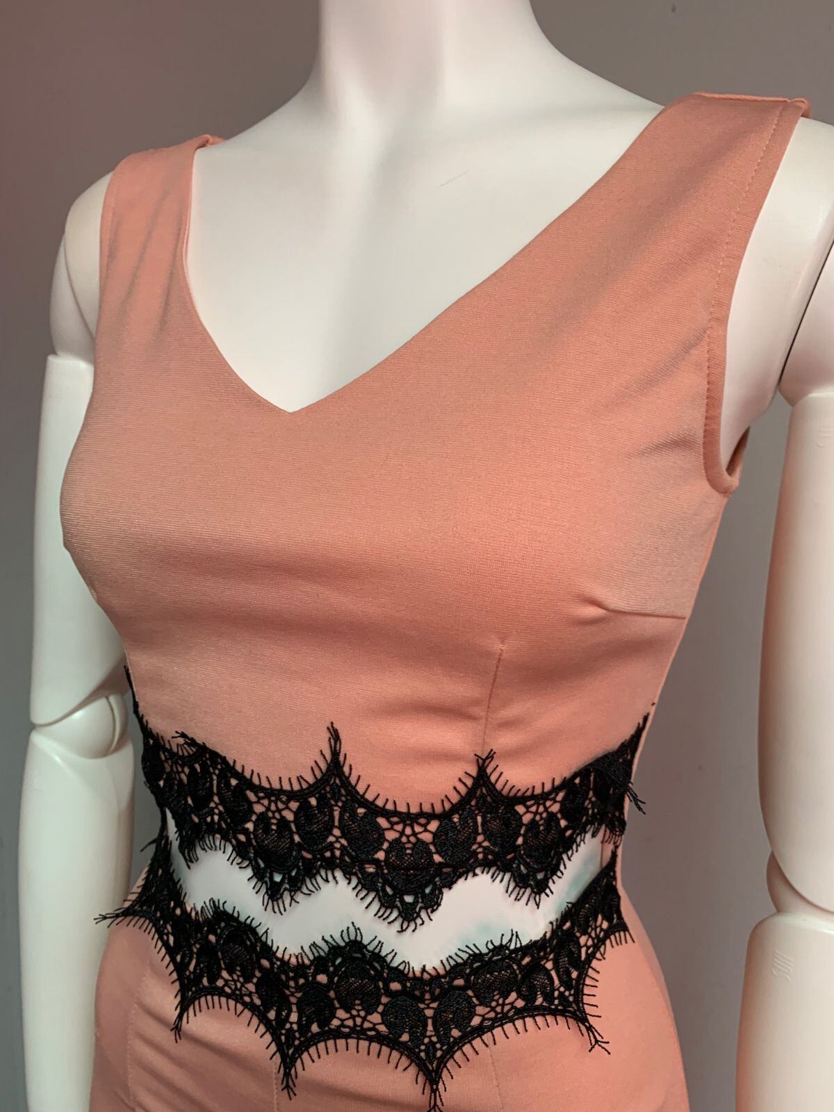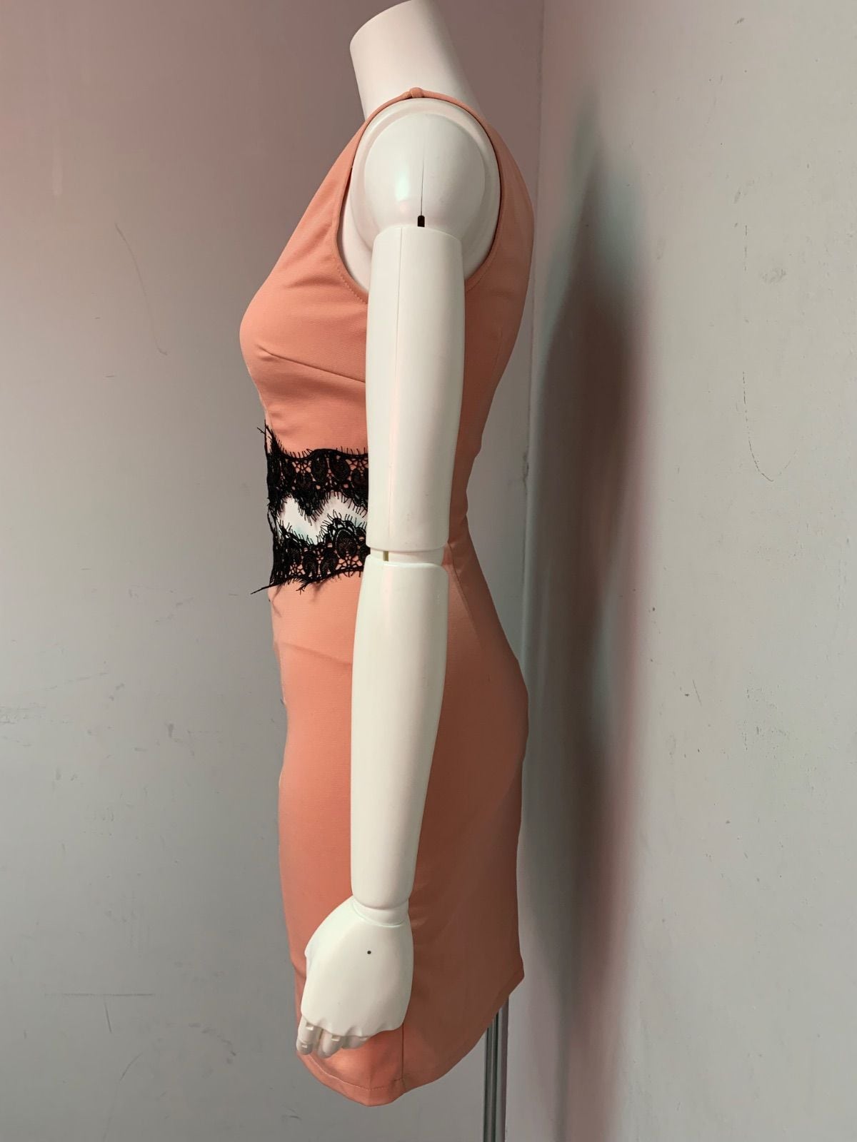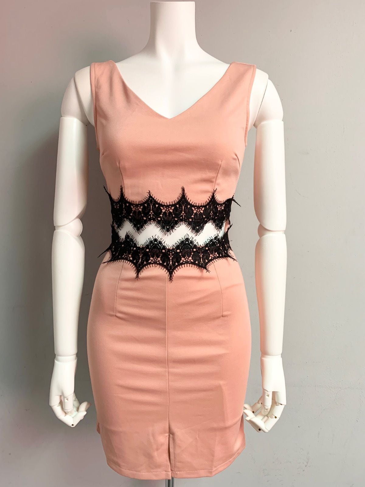 1281 cherrykeke チェリーケケ キャバクラ ドレス ウエストカット レース ノースリーブ タイト スリット ミニ キャバドレス S