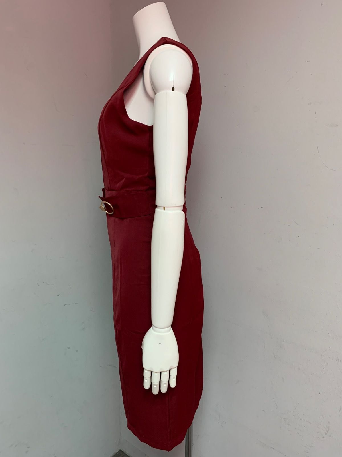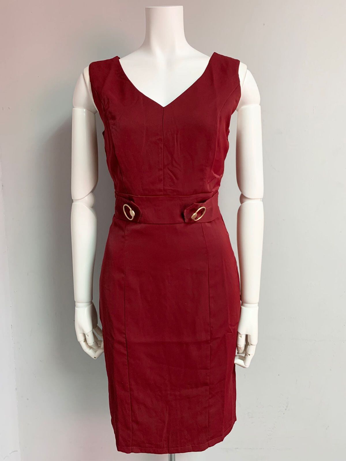1292 GRAXIA キャバクラ ドレス タイトドレス ゴールド 金具 ボルドー シンプル 無地 キャバドレス S