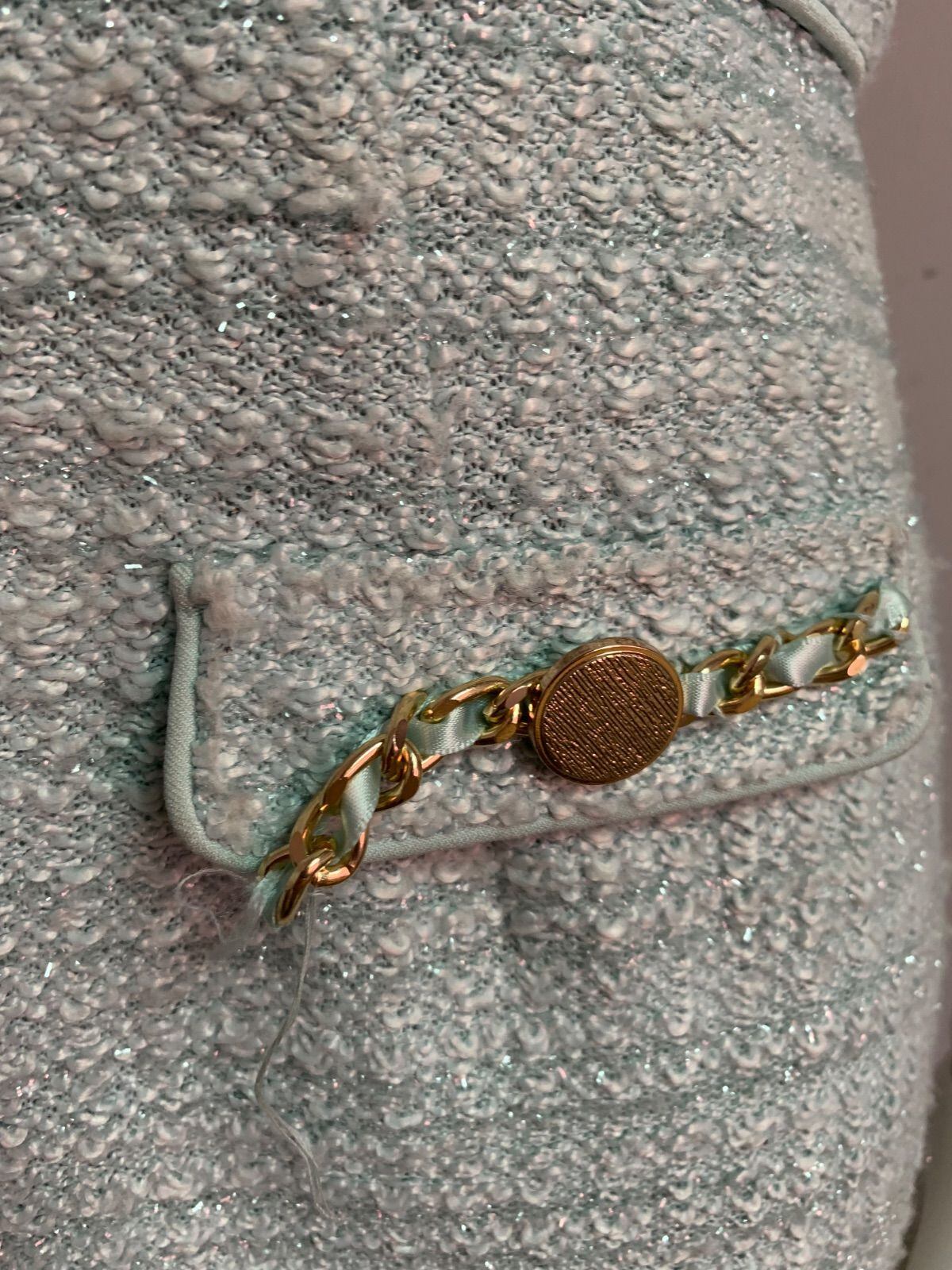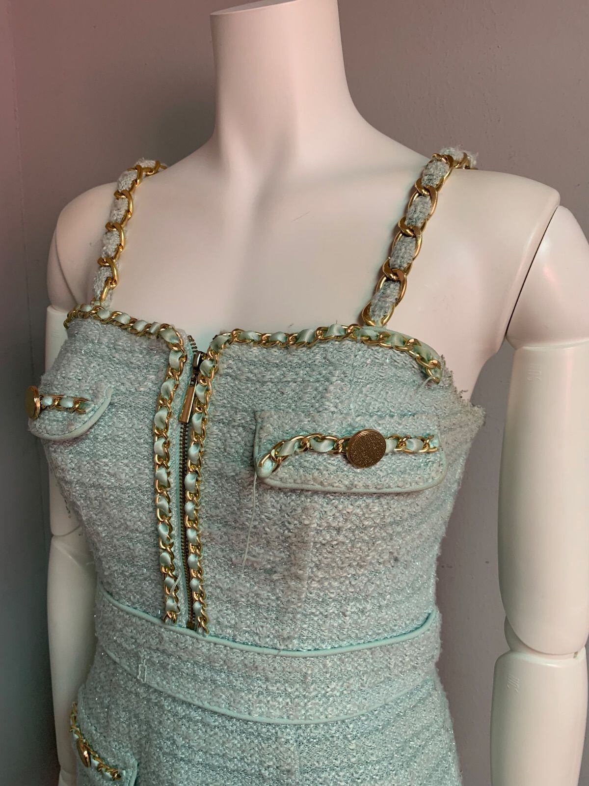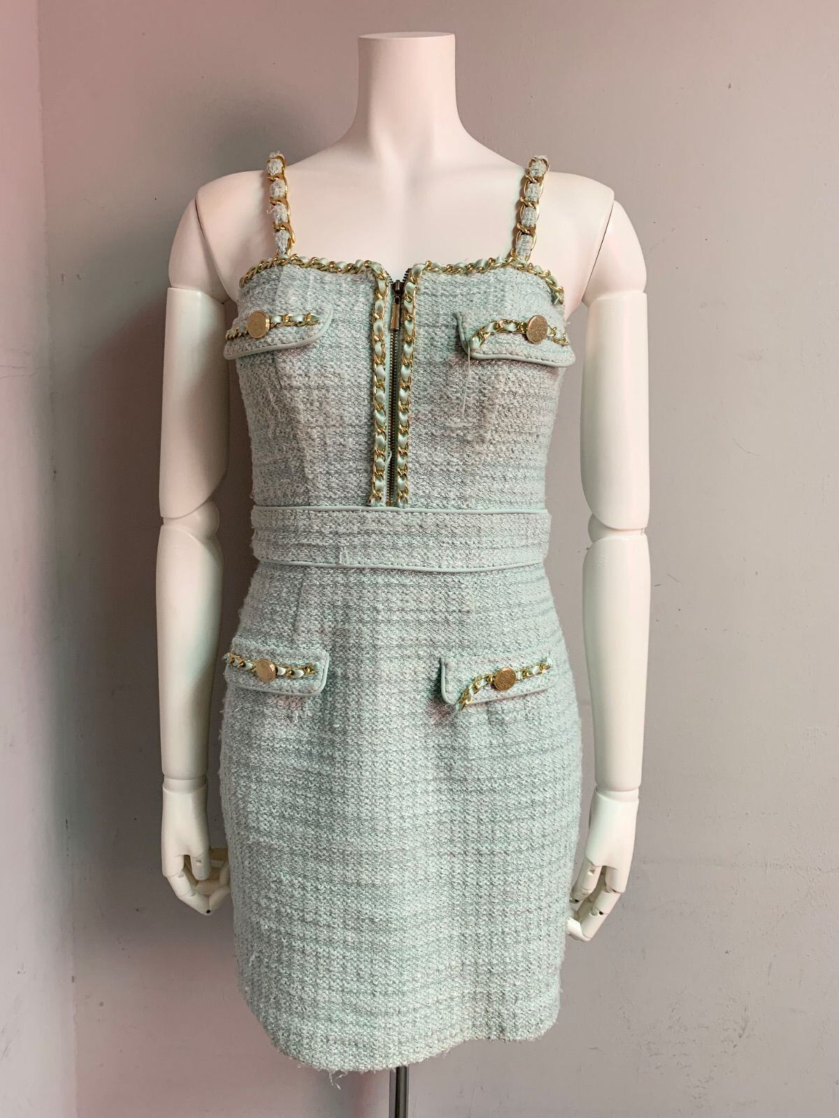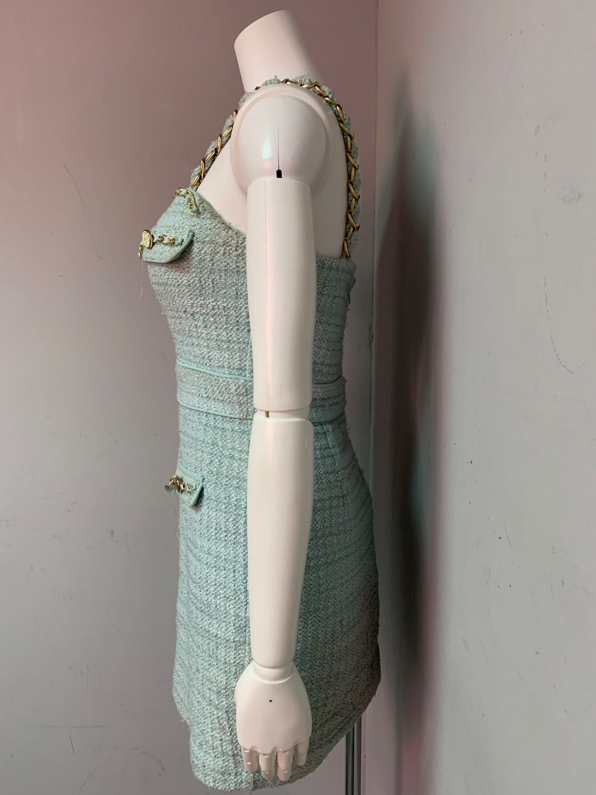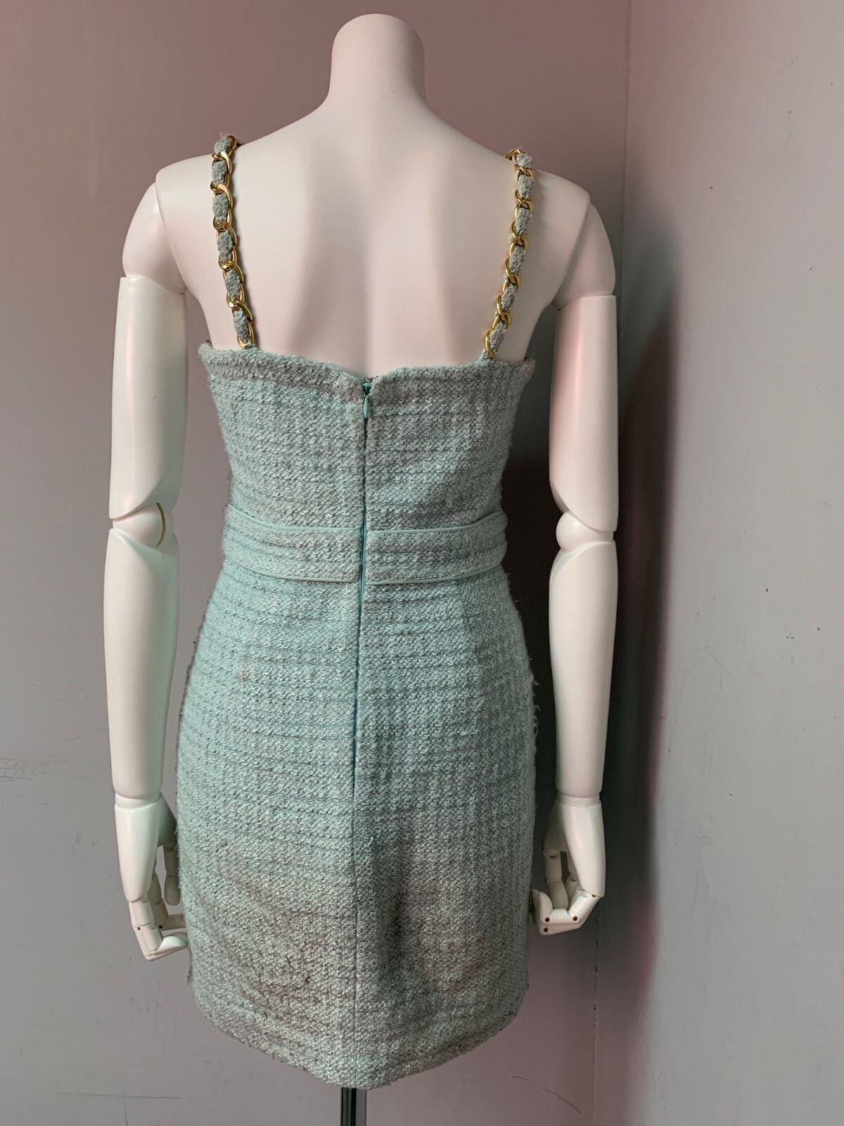 1304 an アン アンディ キャバクラ ドレス ツイードラメ チェーンストラップ キャバ タイト ミニ キャバドレス S