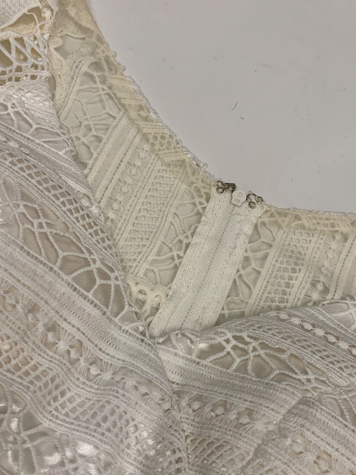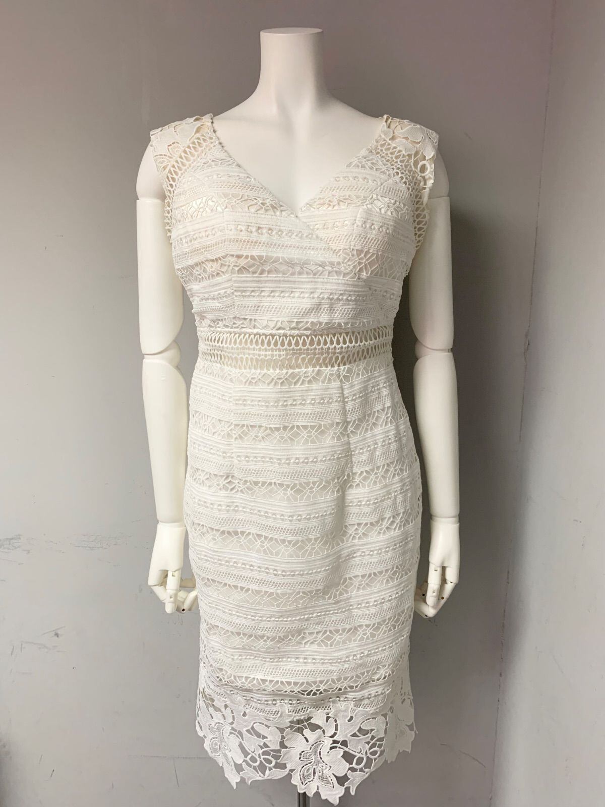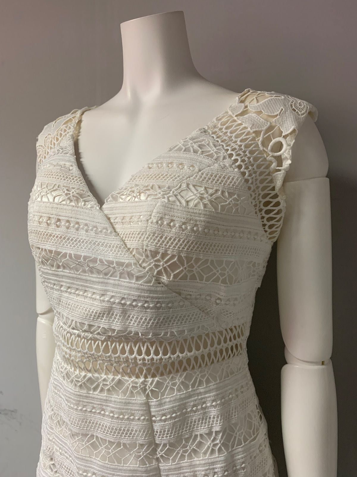 1313 JEAN MACLEAN ジャンマクレーン キャバクラ ドレス 総レース クロシェ シースルー ノースリーブ ミディ スリット キャバドレス M