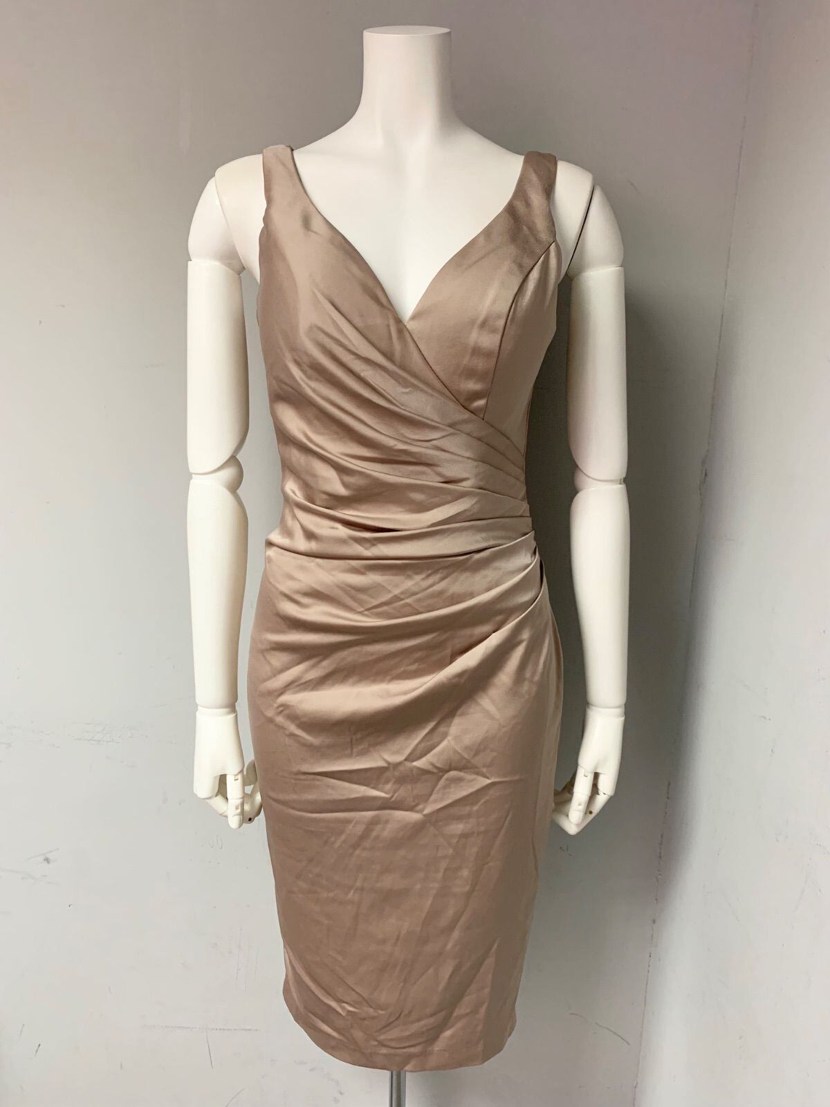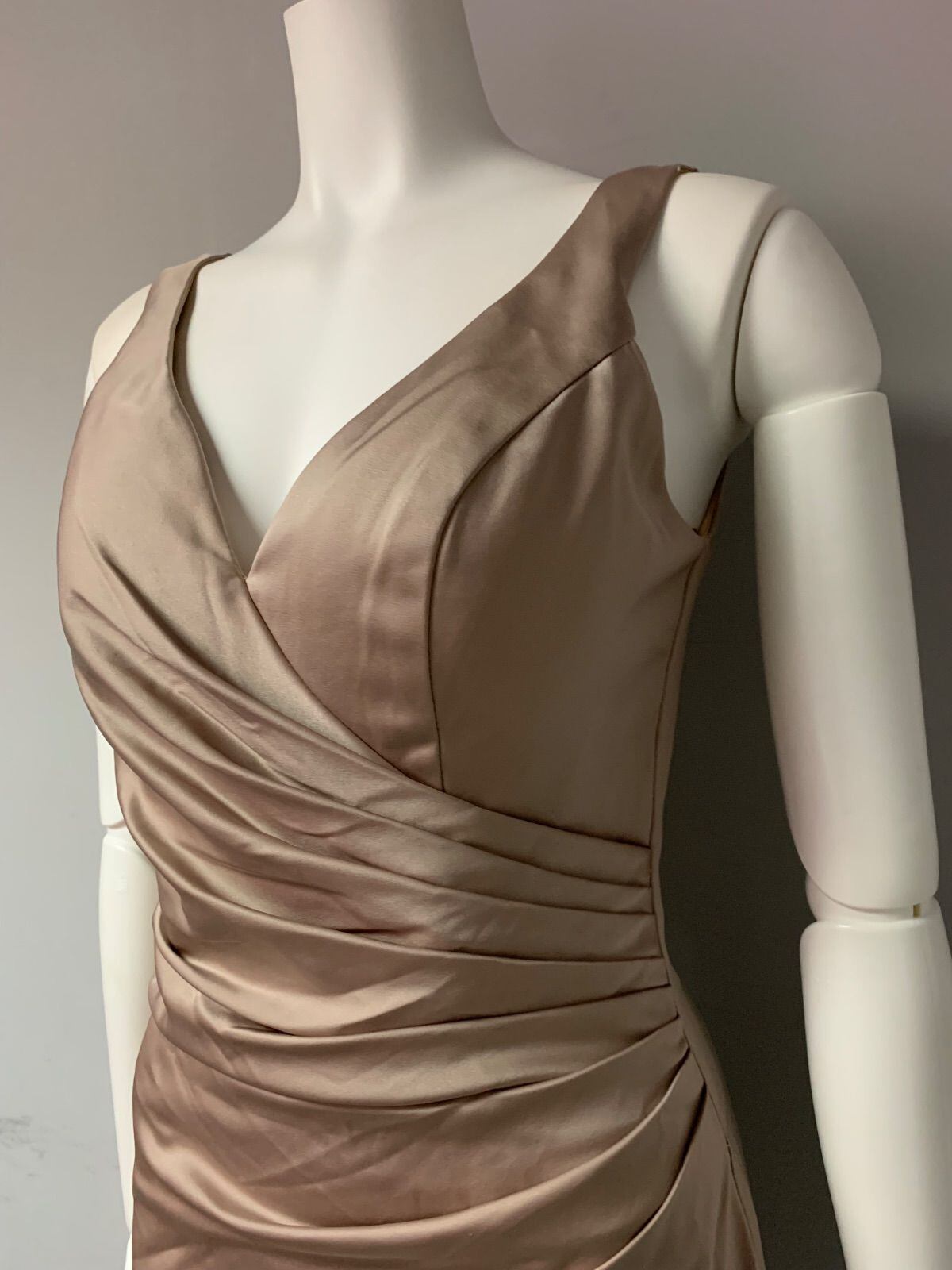 1316 JEAN MACLEAN ジャンマクレーン キャバクラ ドレス サテン 光沢 ノースリーブギャザー ミディ タイト スリット キャバドレス S