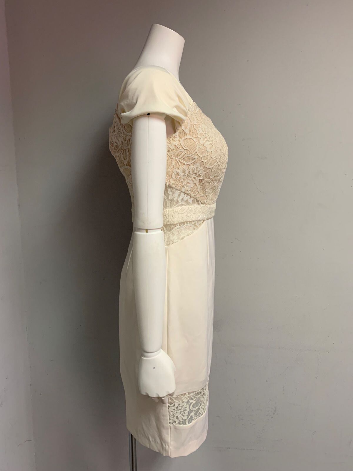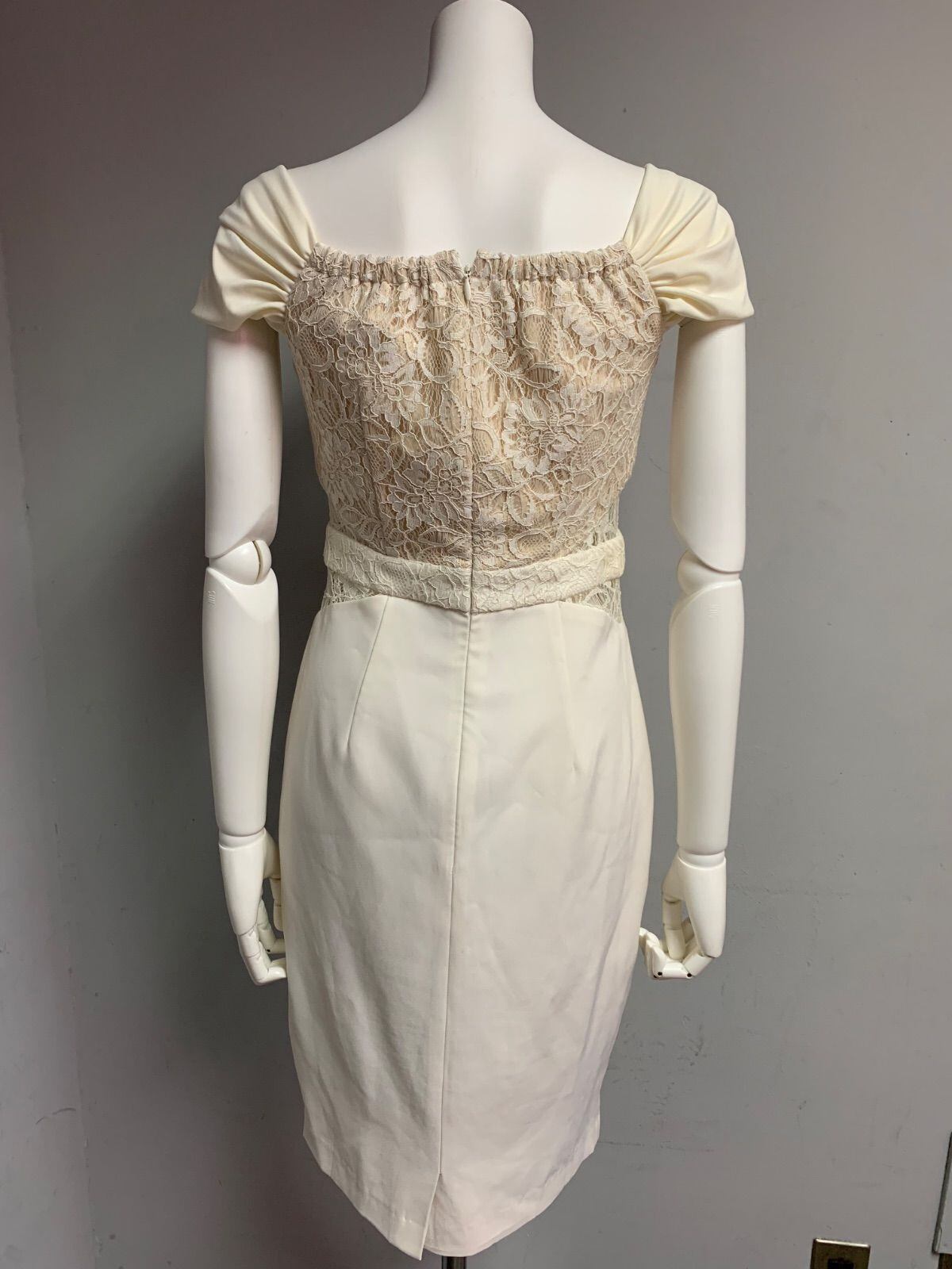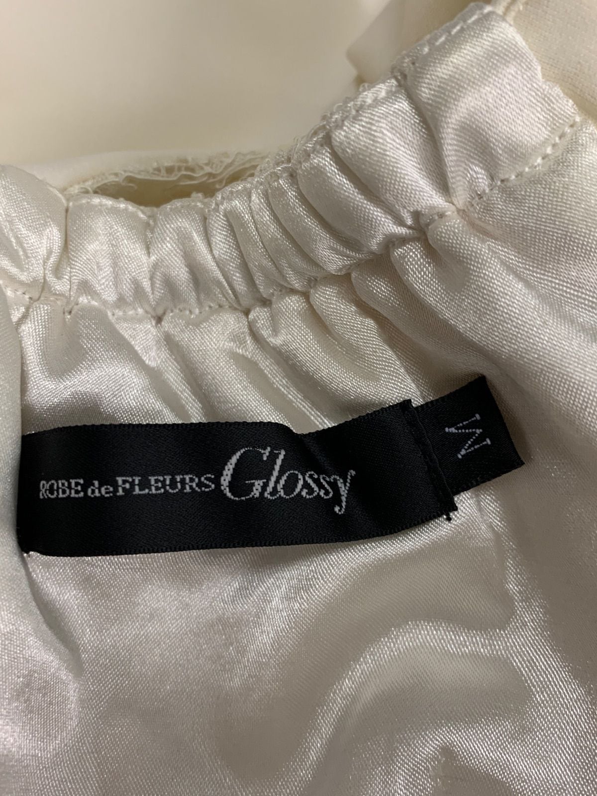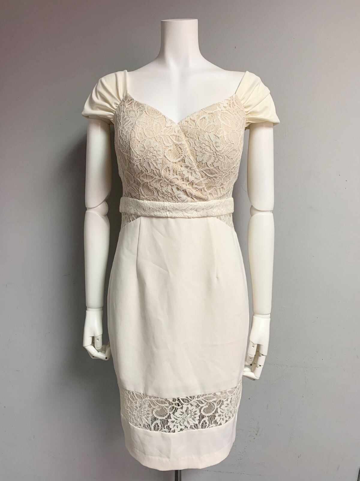 1324 ROBE de FLEURS Glossy ローブドフルールグロッシー キャバクラ ドレス レース パフスリーブ タイト ミディ スリット キャバドレス M