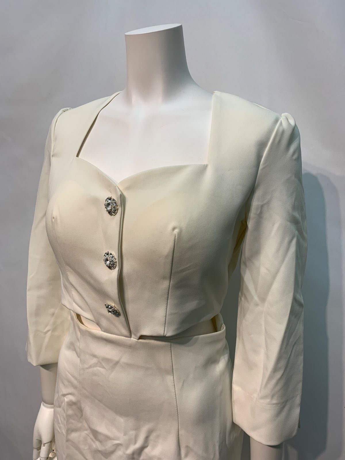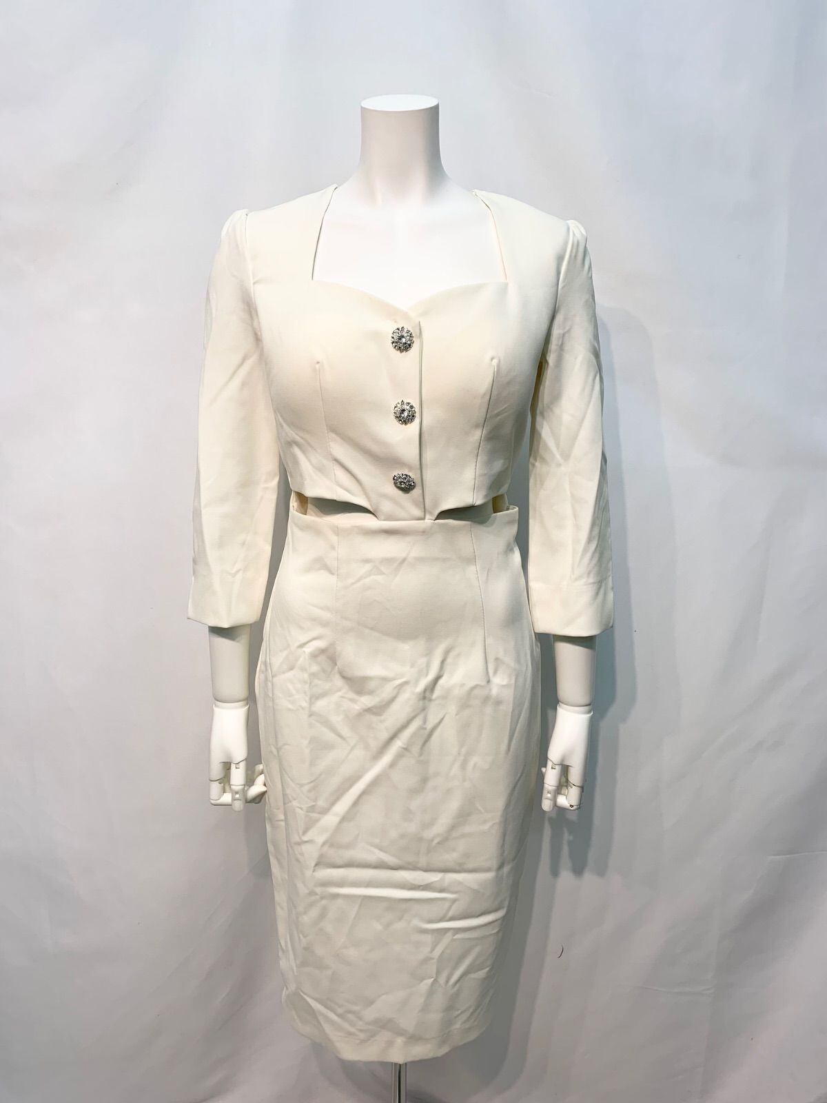 1331 rinfarre リンファーレ キャバクラ ドレス 伸縮性 ウエストカット ストーンボタン ミディ スリット キャバドレス M