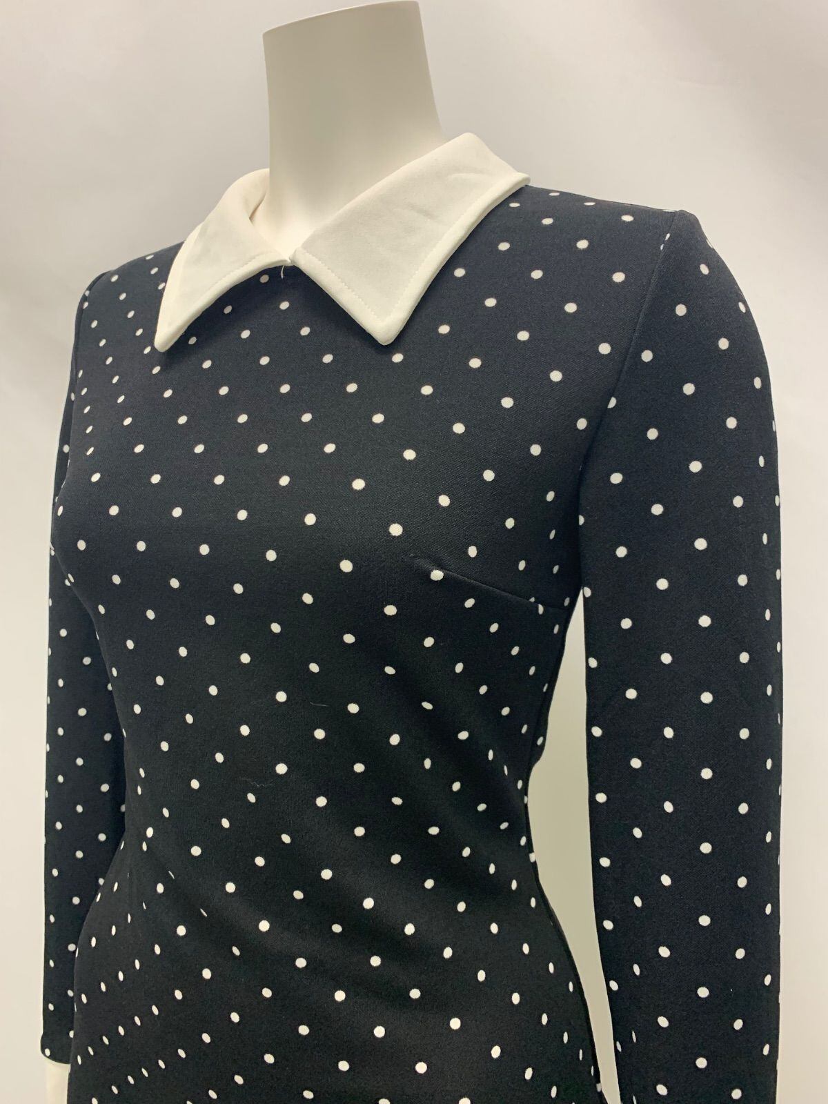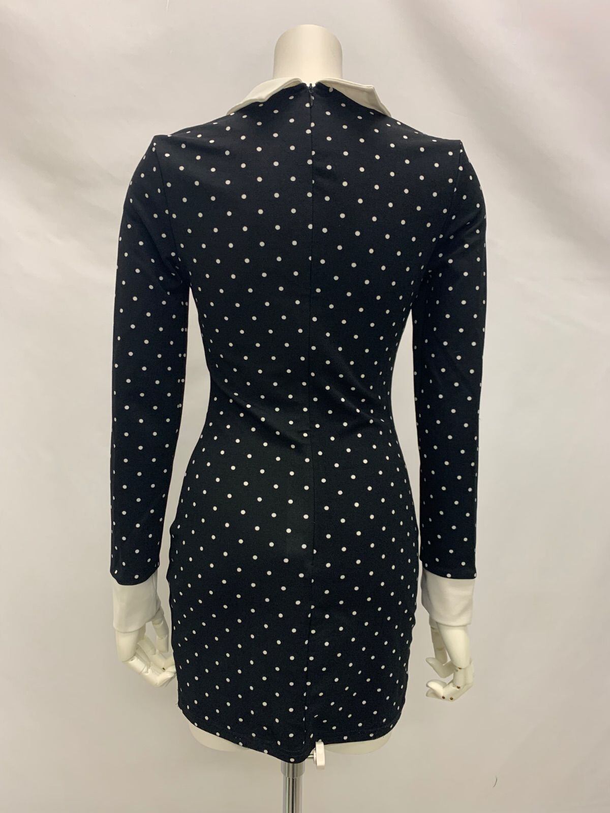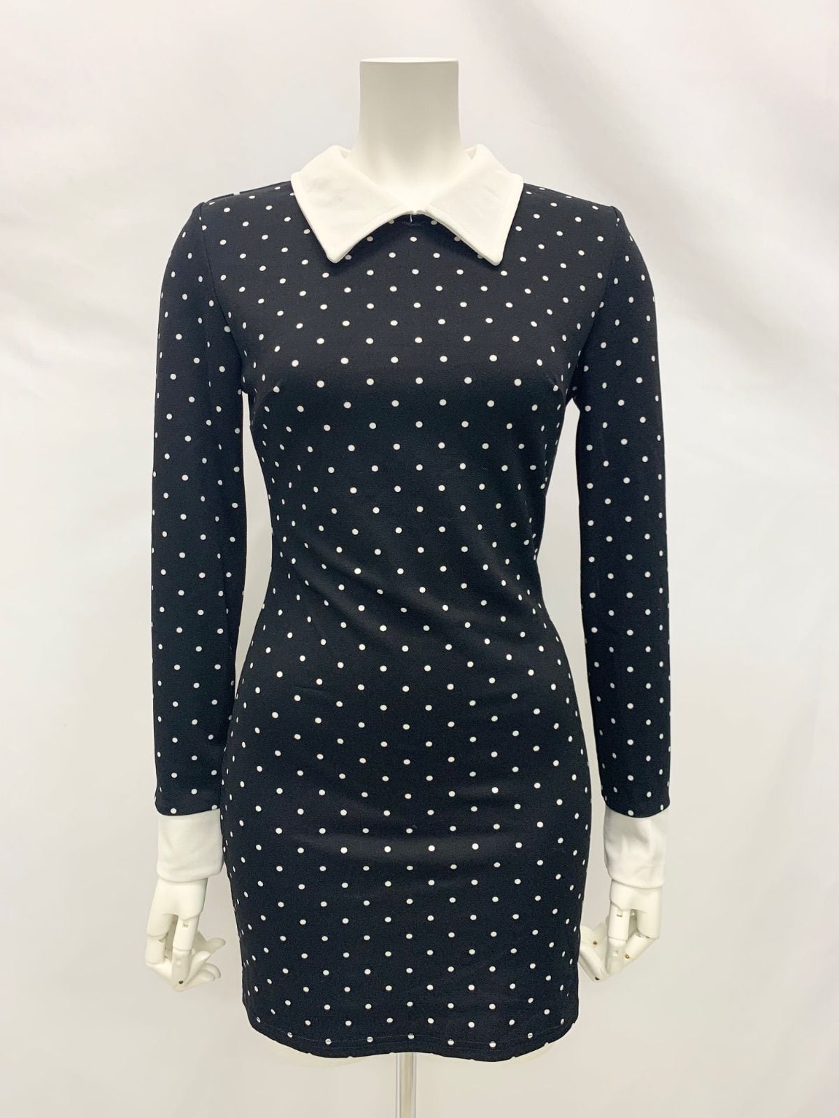 1362 キャバクラ ドレス ドット柄 襟付き ミニ タイト 伸縮性 キャバドレス XS