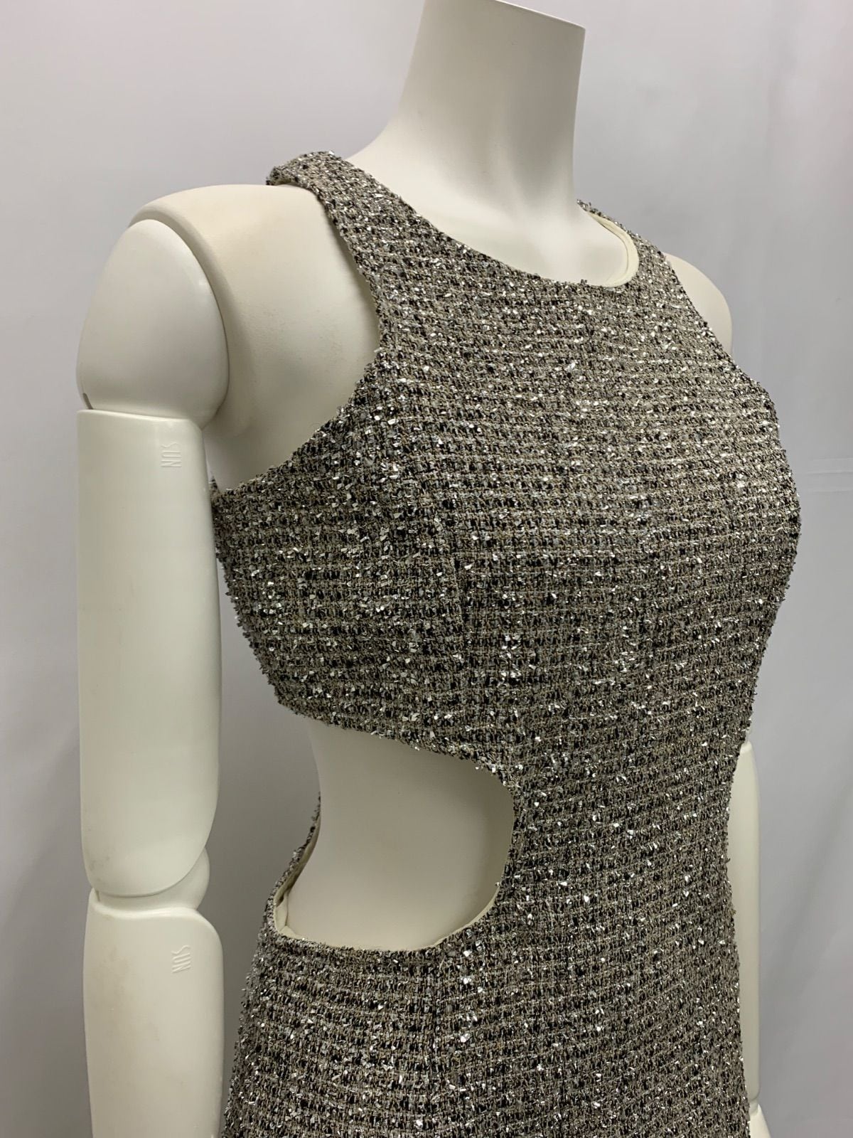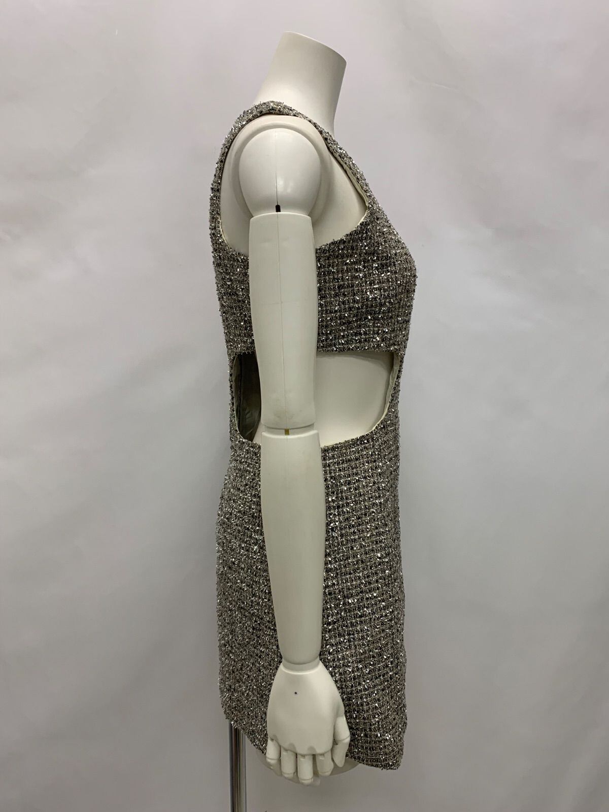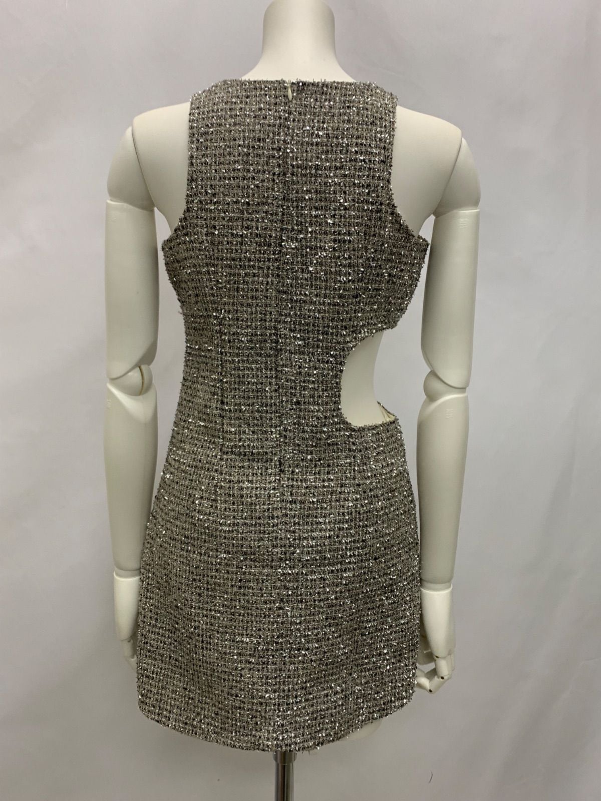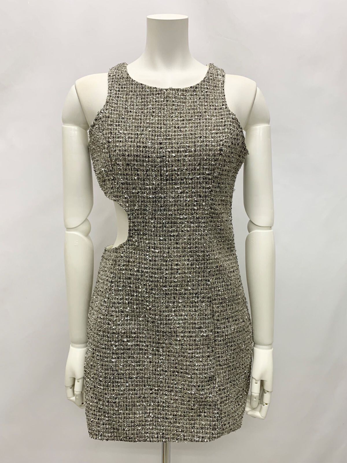 1374 キャバクラ ドレス サイドウエストカット ツイードラメ キラキラ ミニ タイト ノースリーブ キャバドレス