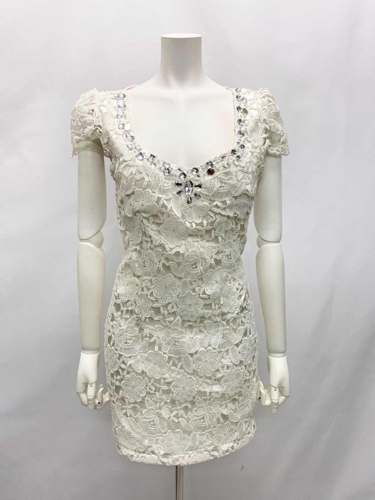 1378 キャバクラ ドレス クロシェレース ストーン ビジュー ミニ タイト キャバドレス