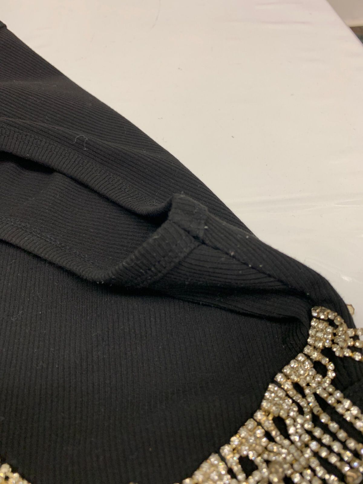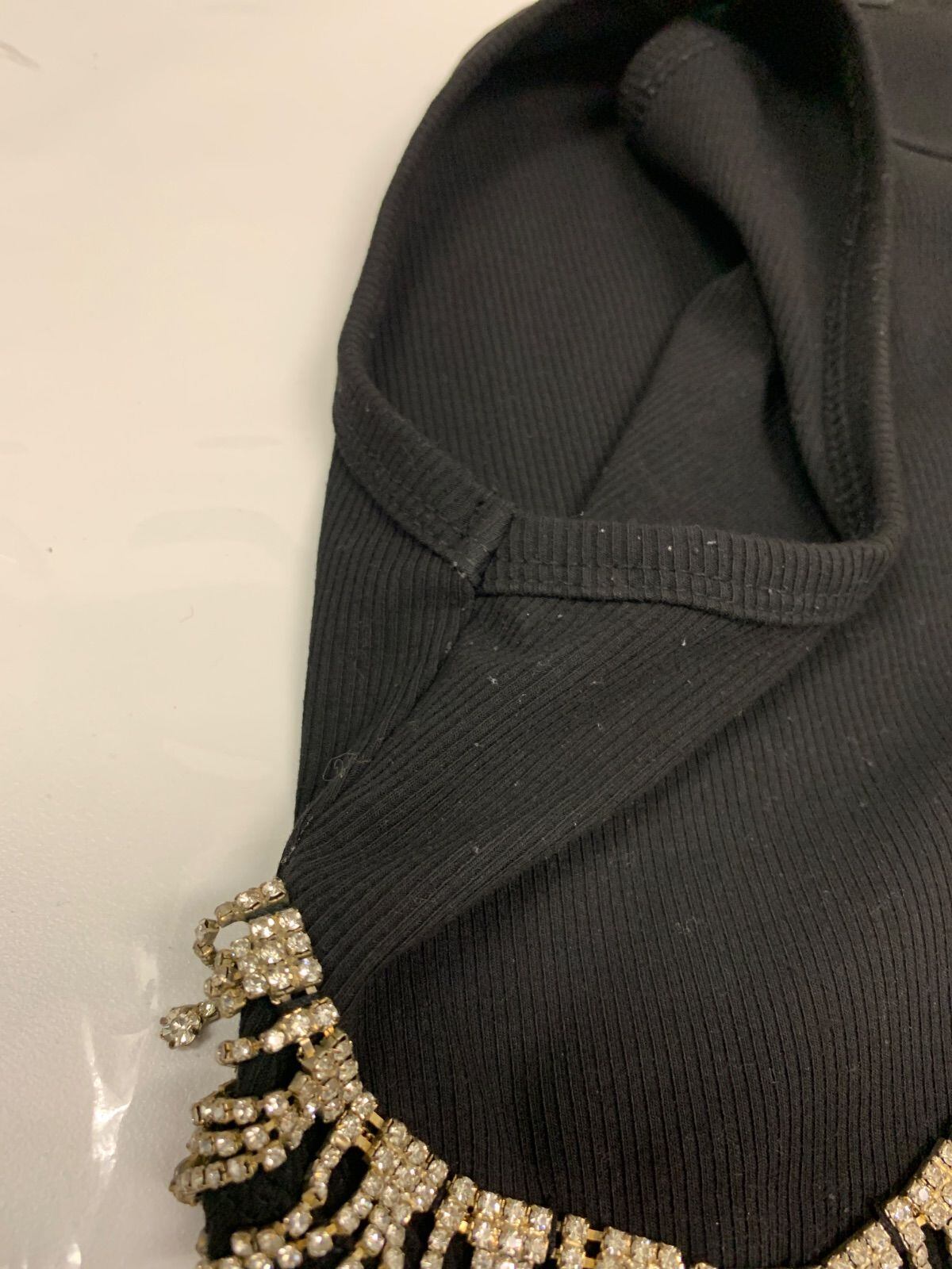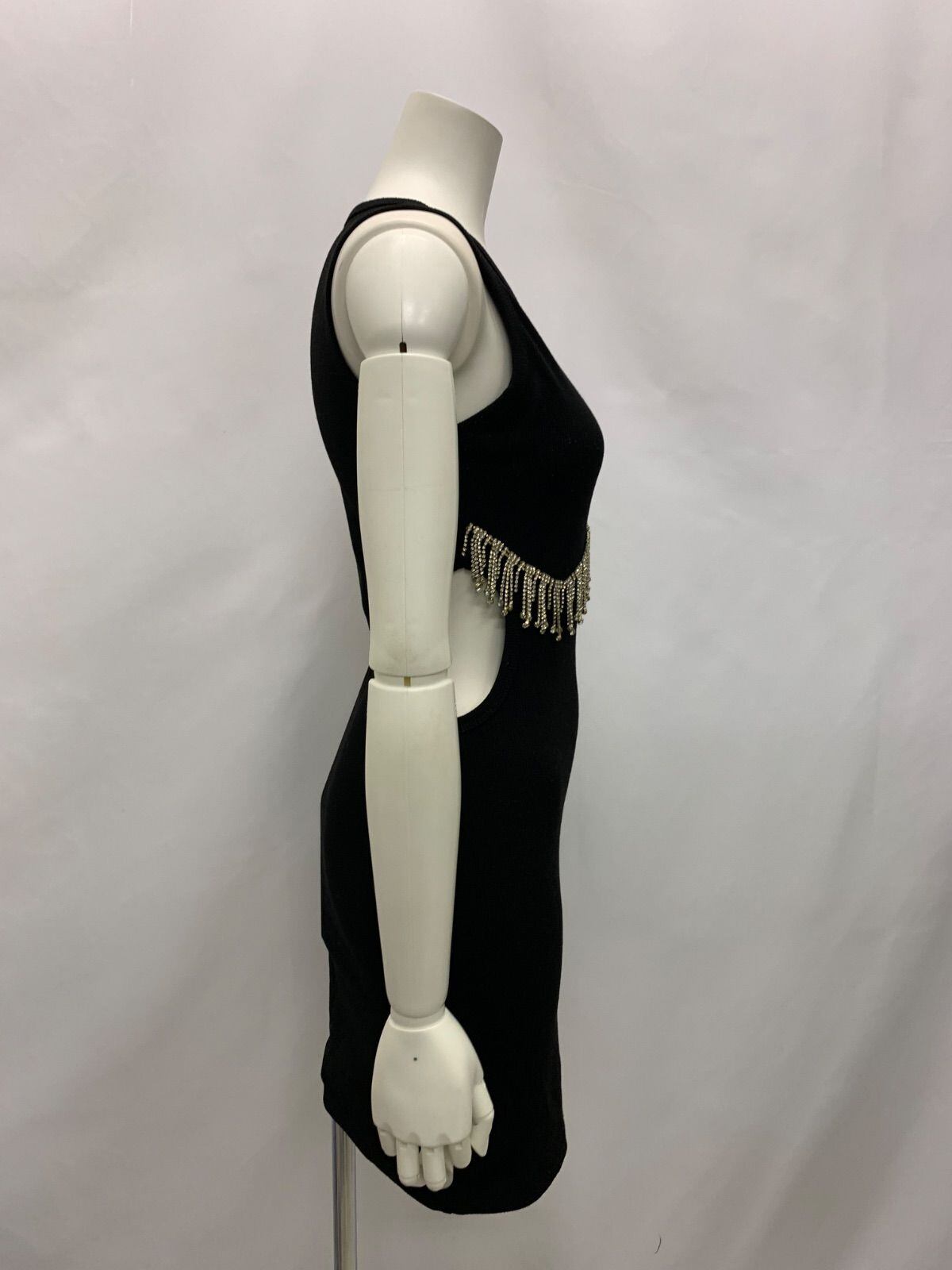 1384 キャバクラ ドレス リブニット ワンピース タイト ウエストカット ストーン ビジュー ノースリーブ ミニ キャバドレス S