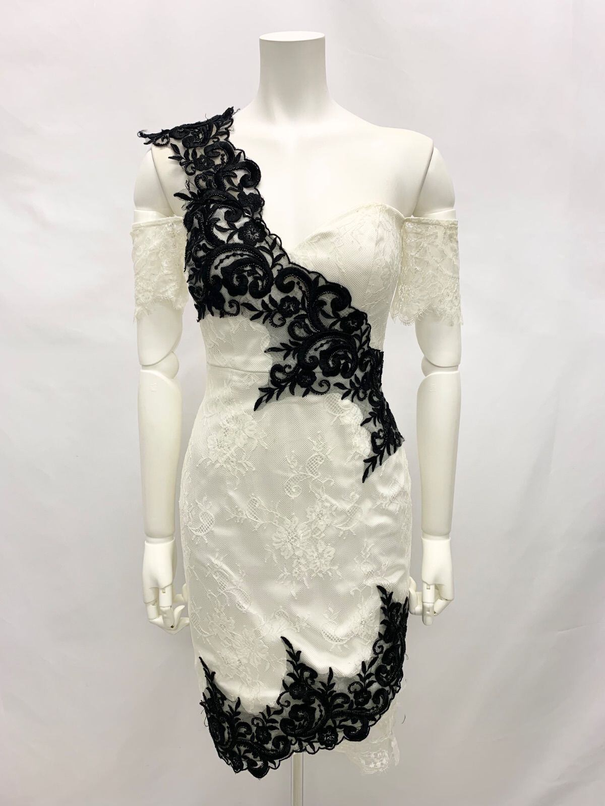 1416 DEA by ROBE de FLEURS ディアバイローブドフルール キャバクラ ドレス 総レース オフショル タイトミディ キャバドレス M