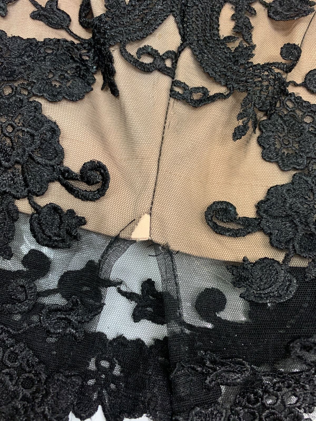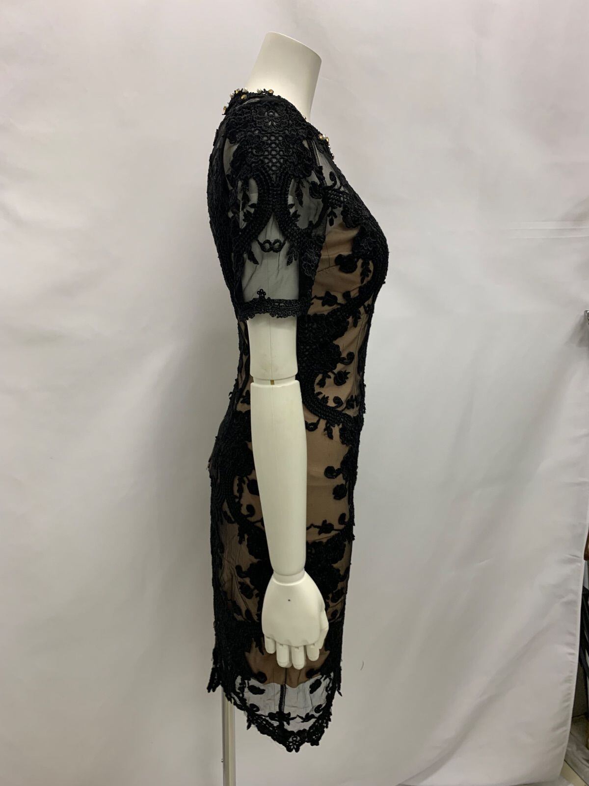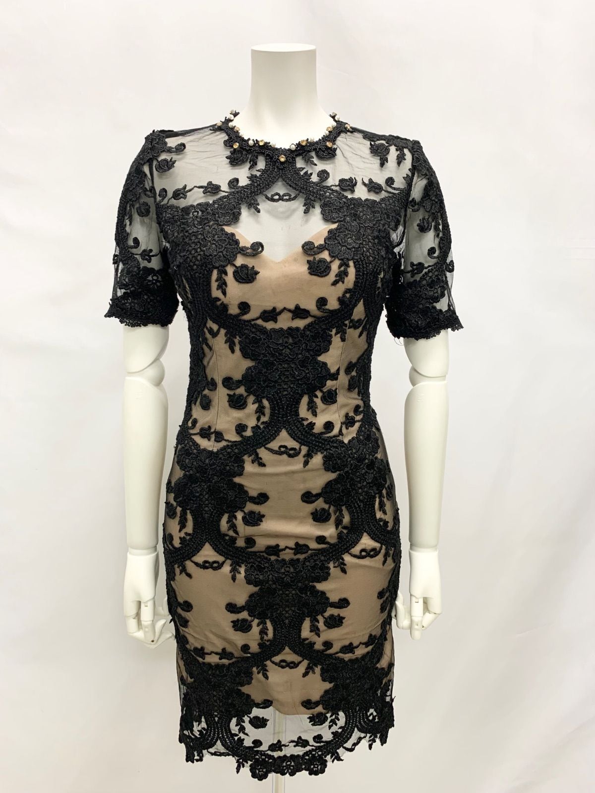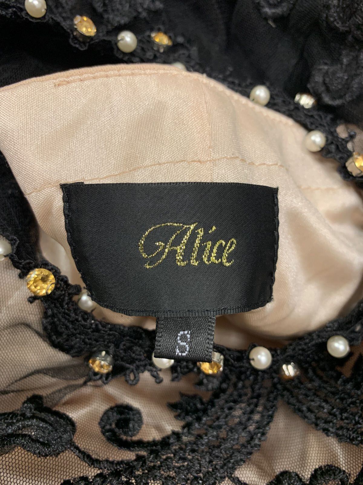 1417 Alice アリス キャバクラ ドレス 総レース シアー フラワー刺繍 ミディ タイト ストーン ビジュー キャバドレス S