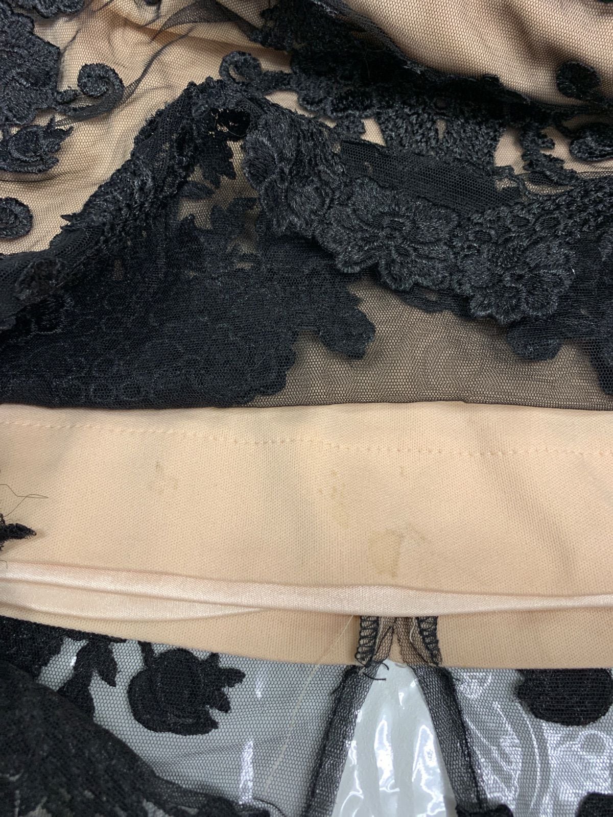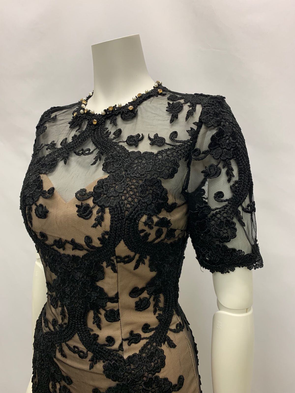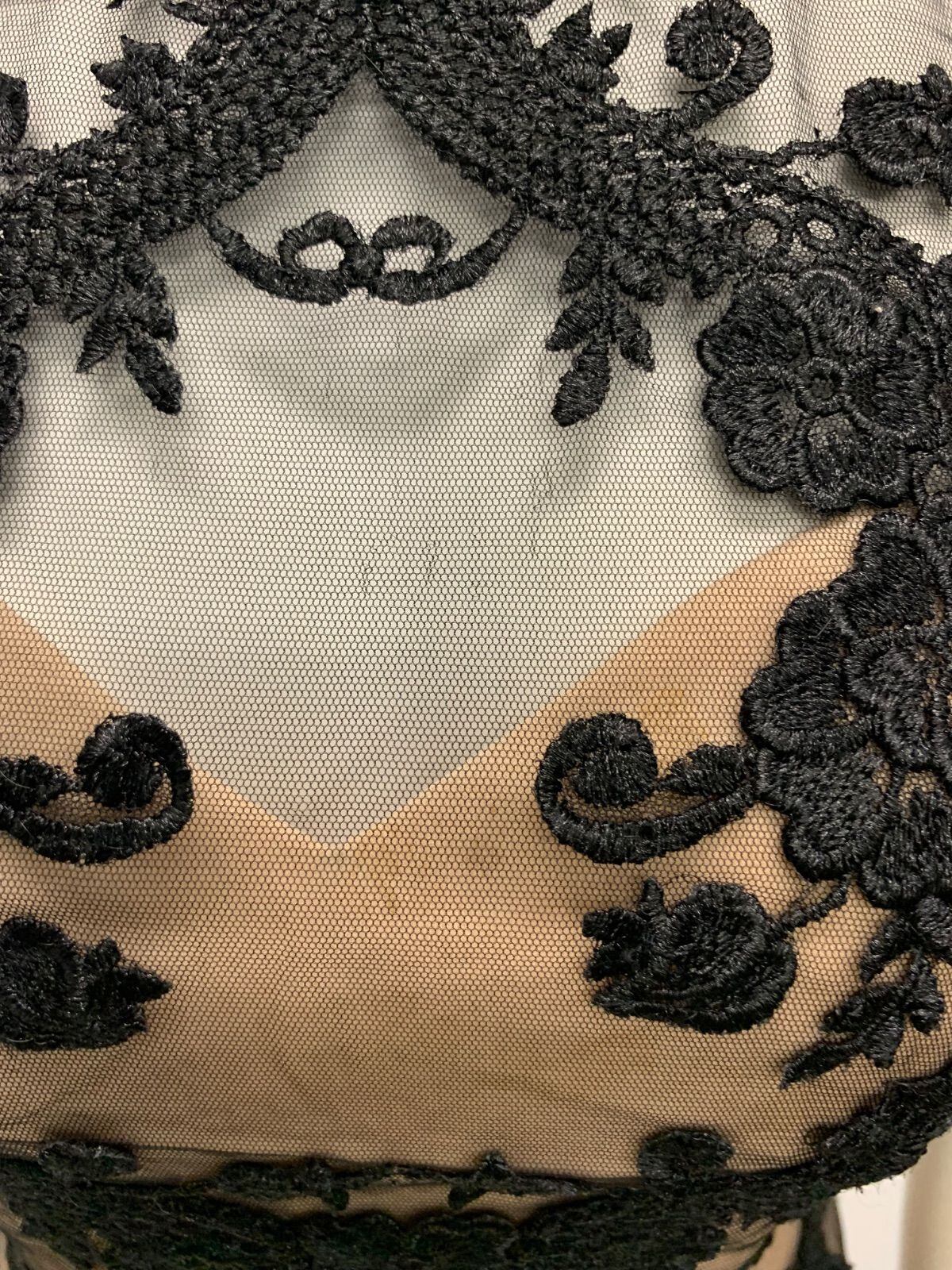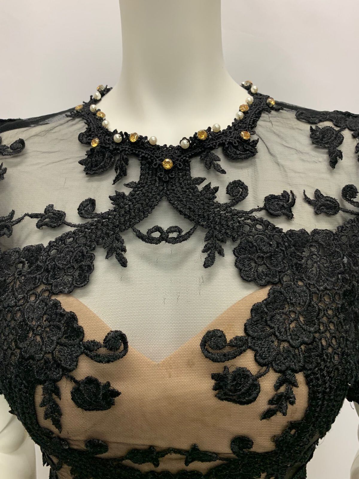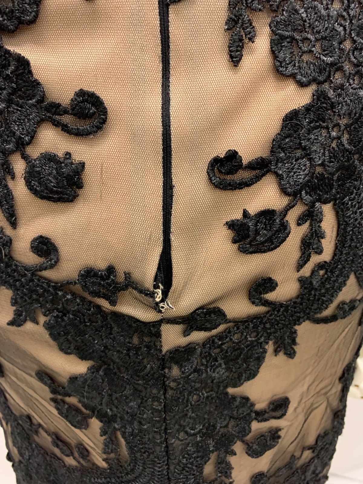1417 Alice アリス キャバクラ ドレス 総レース シアー フラワー刺繍 ミディ タイト ストーン ビジュー キャバドレス S