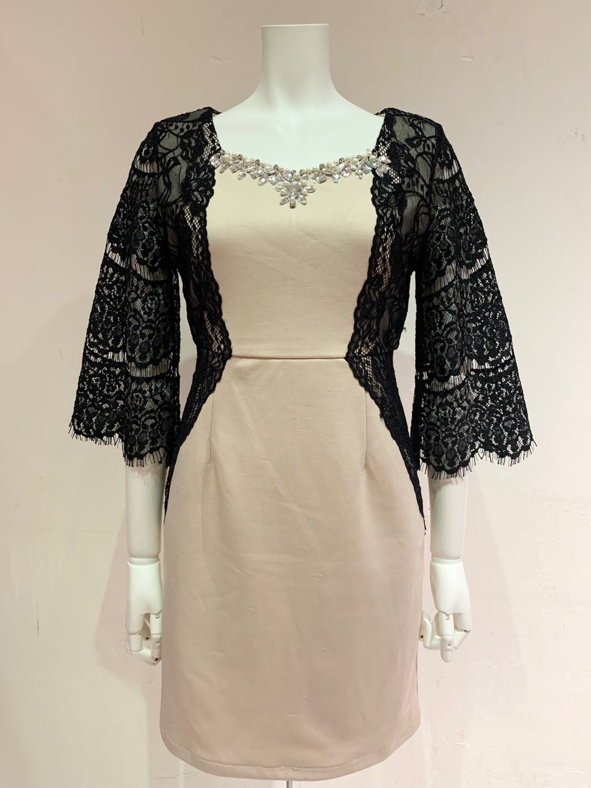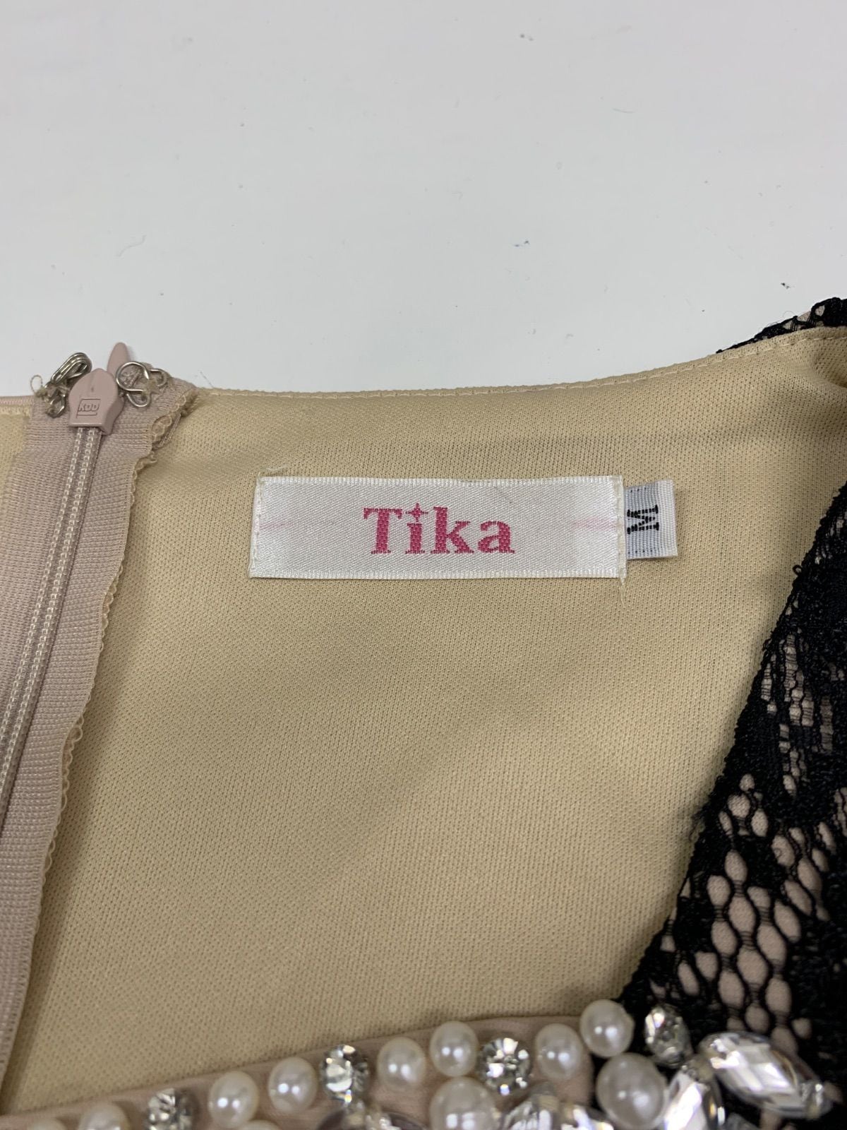 1422 Tika ティカ キャバクラ ドレス レース パール ストーン ミニ キャバドレス M