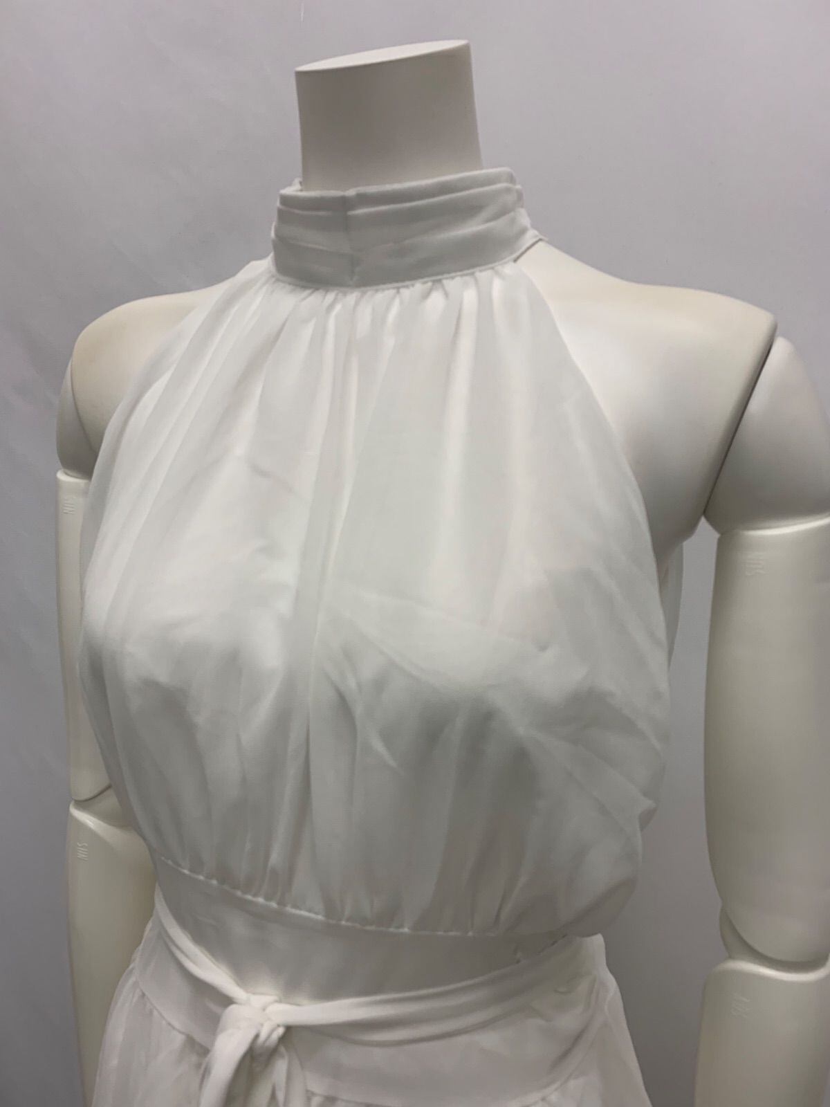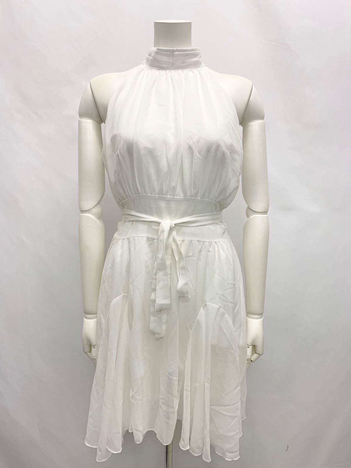 1437 キャバクラ ドレス シフォン ノースリーブ ウエストリボン シンプル キャバドレス M