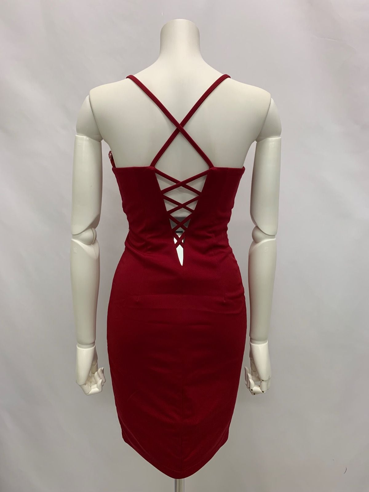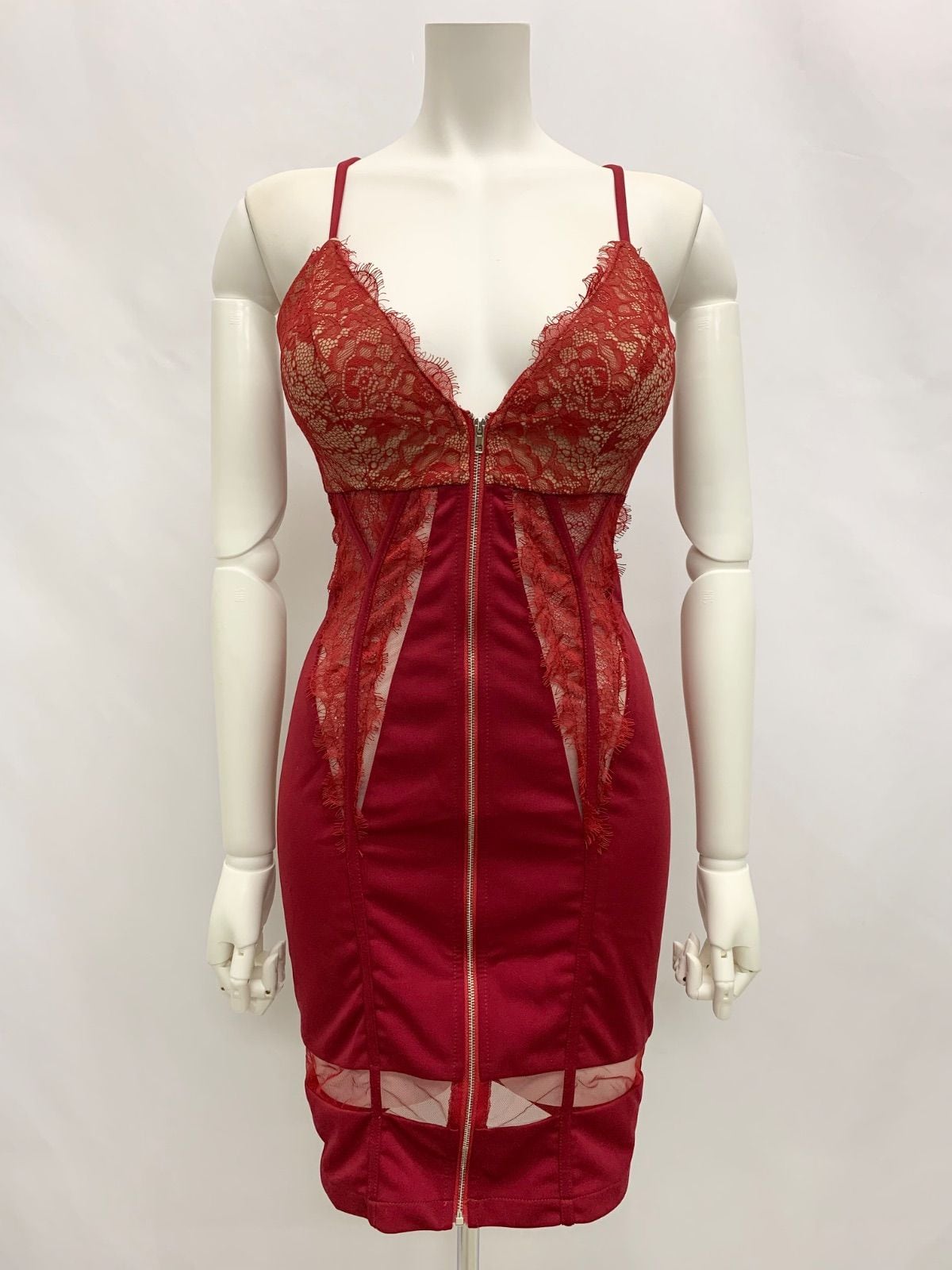 1441 GLAMOROUS by Andy グラマラスバイアンディ キャバクラ ドレス クロスストラップ レース 伸縮性 シースルー フロントジップ タイト キャバドレス S