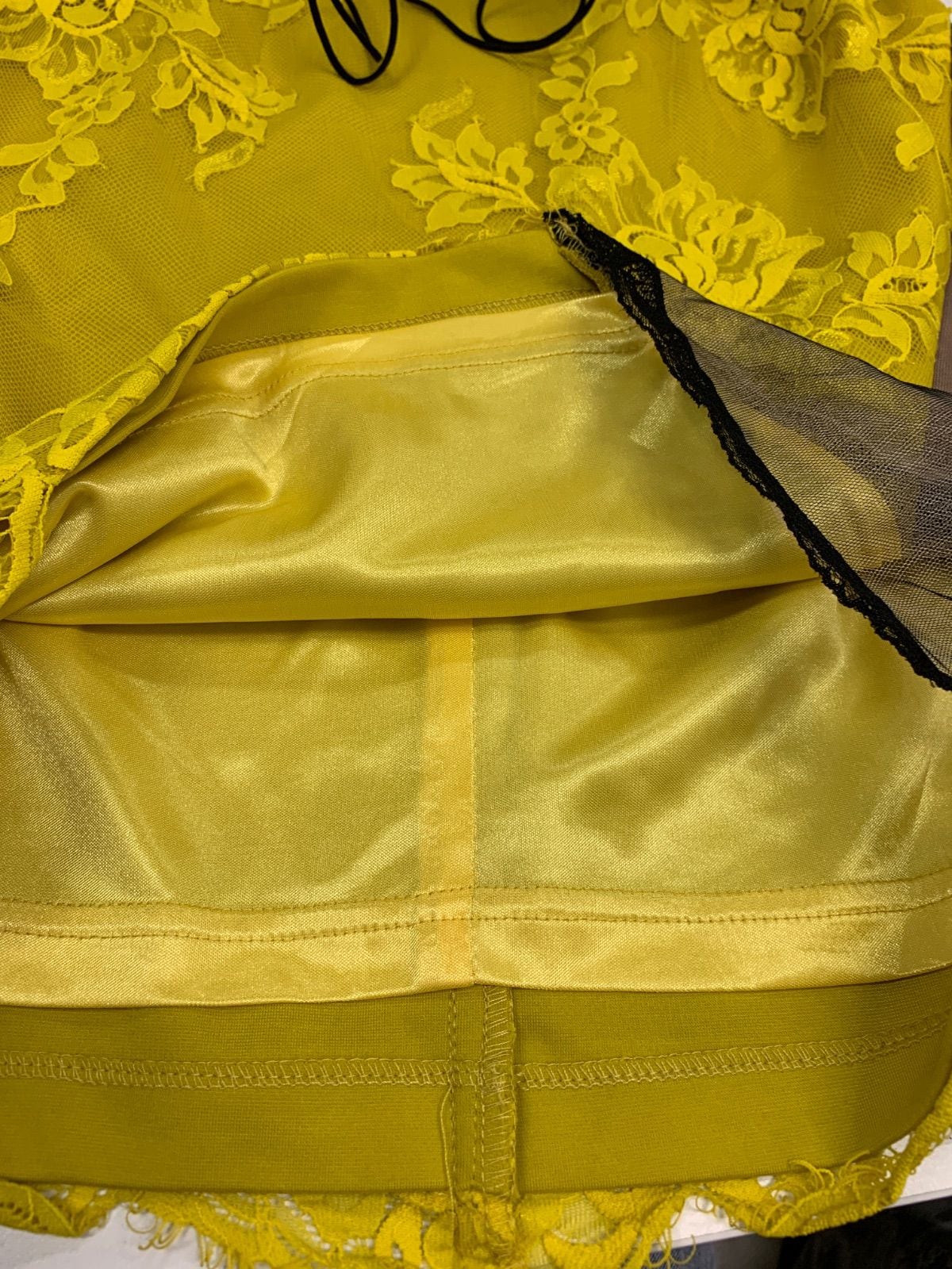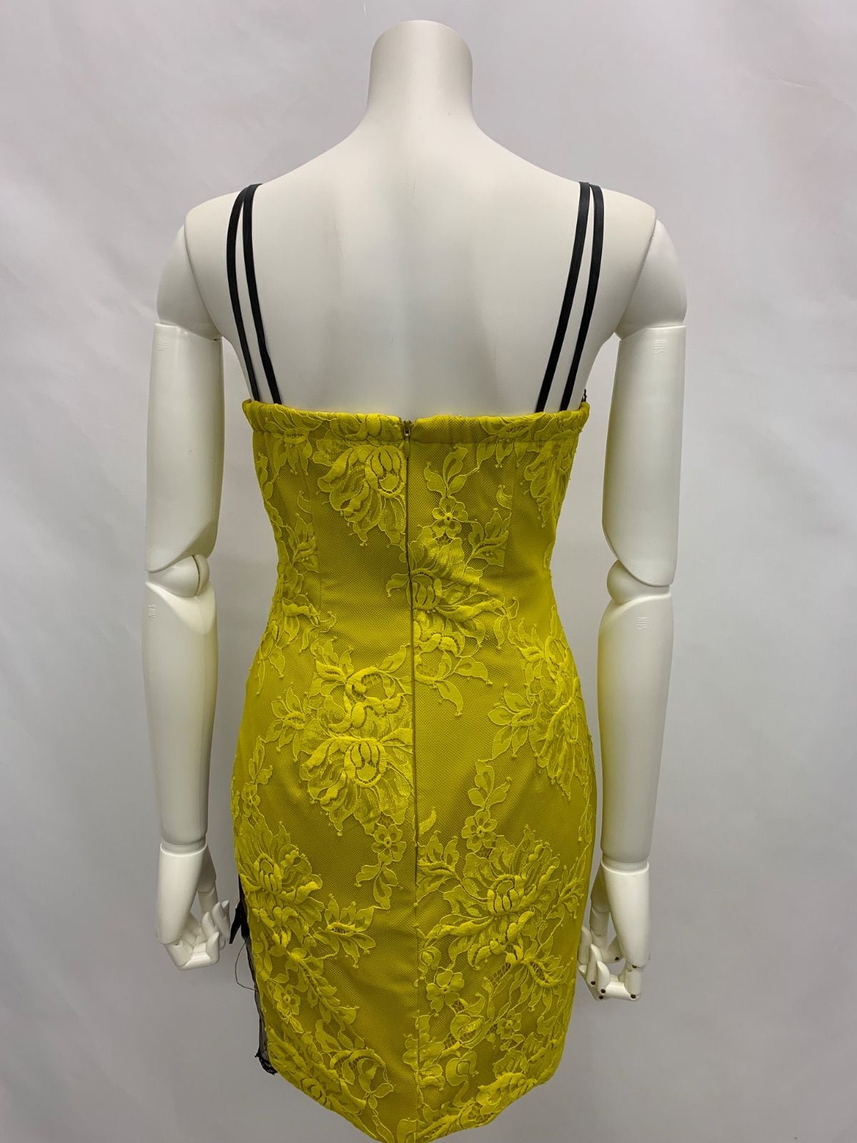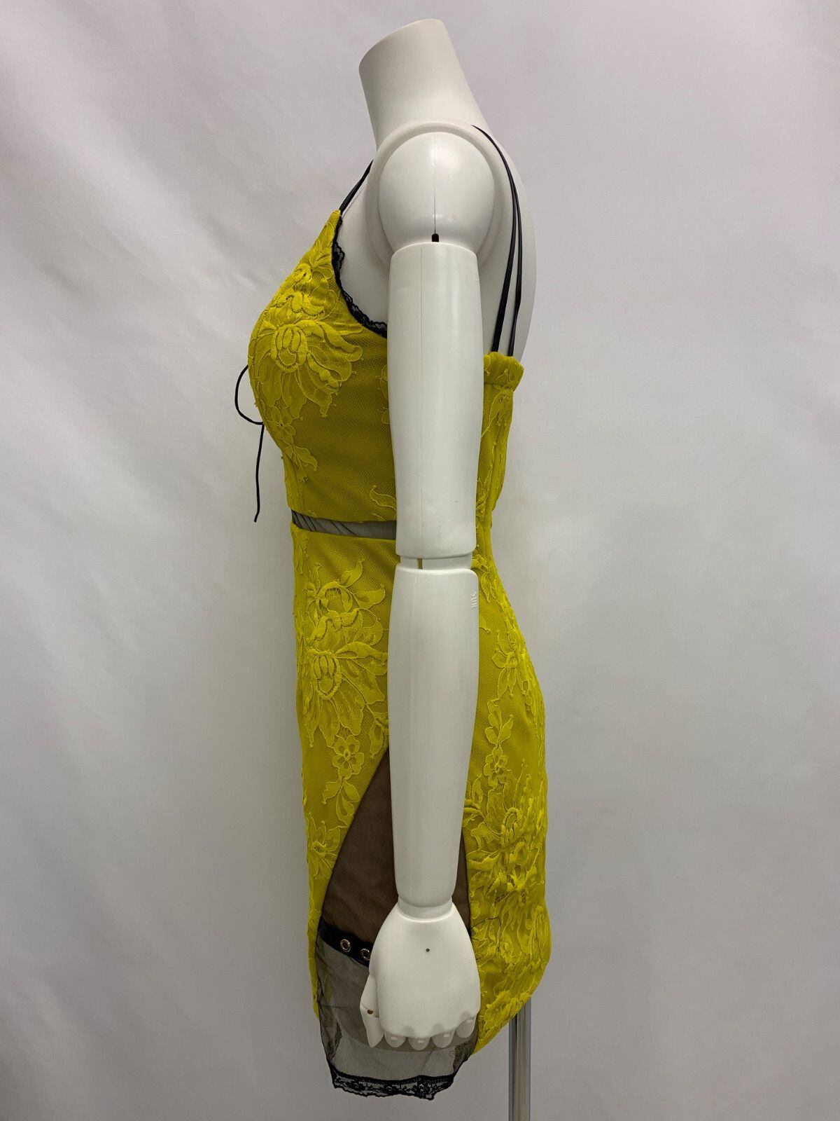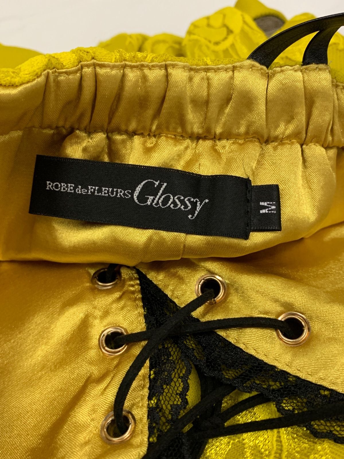 1442 ROBE de FLEURS Glossy ローブドフルールグロッシー キャバクラ ドレス 総レース ストラップレザー シースルー ウエストシアー 編み上げ タイト ミニ キャバドレス M