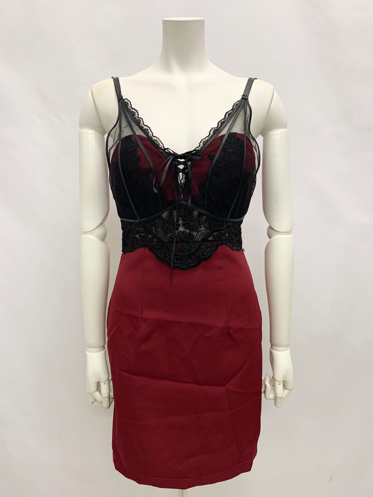 1444 ROBE de FLEURS Glossy ローブドフルールグロッシー キャバクラ ドレス ストラップレザー レース 刺繍 タイト ミニ シースルー キャバドレス M