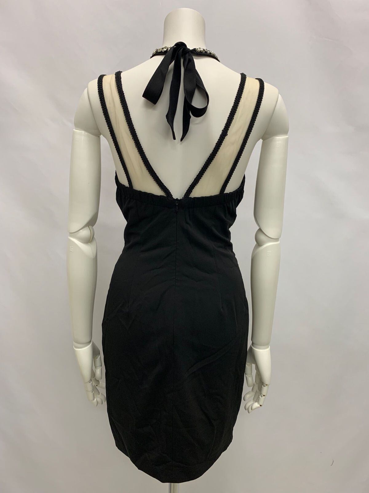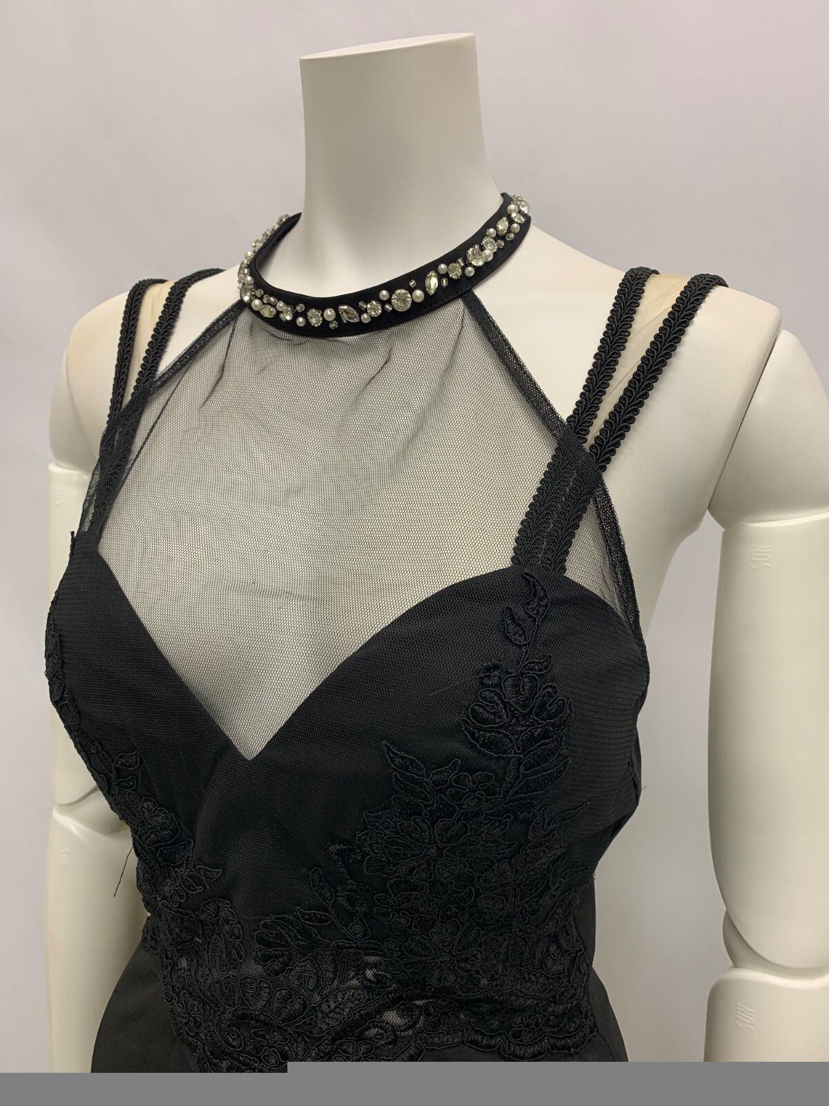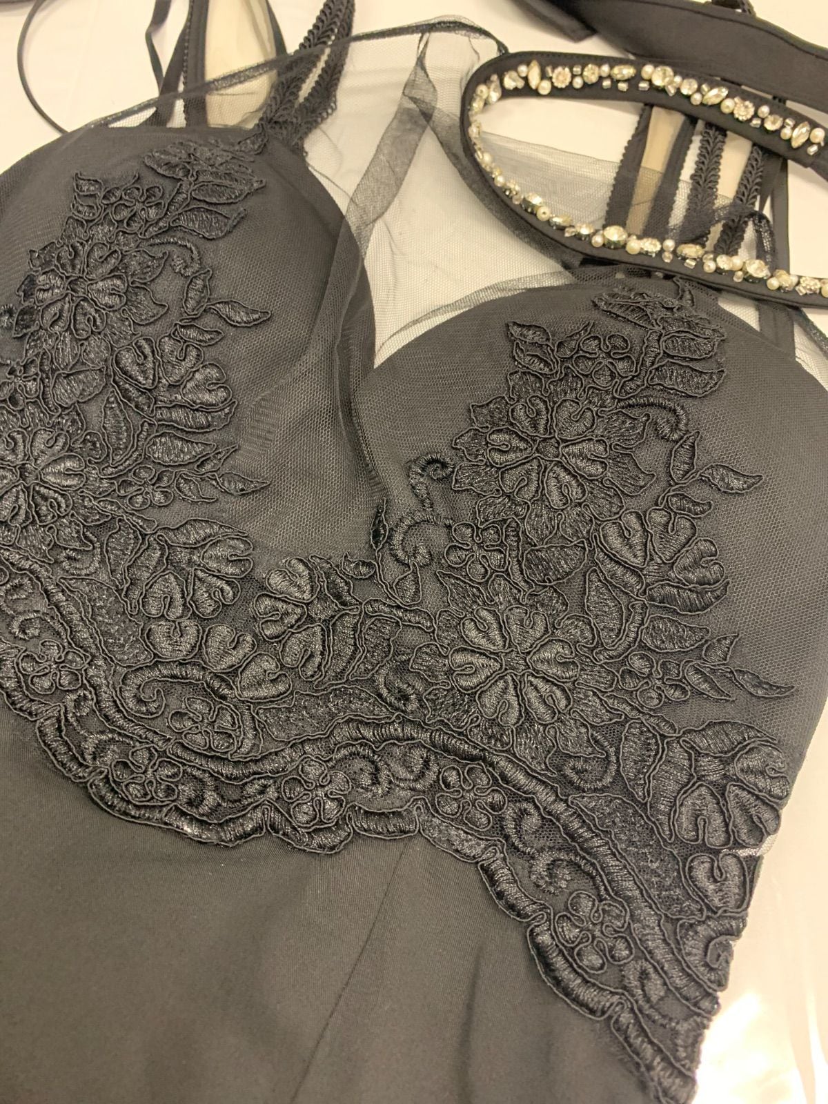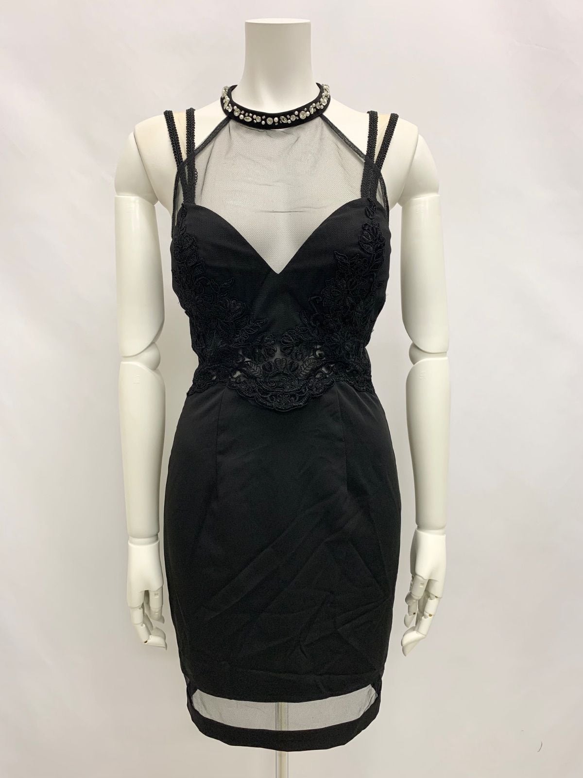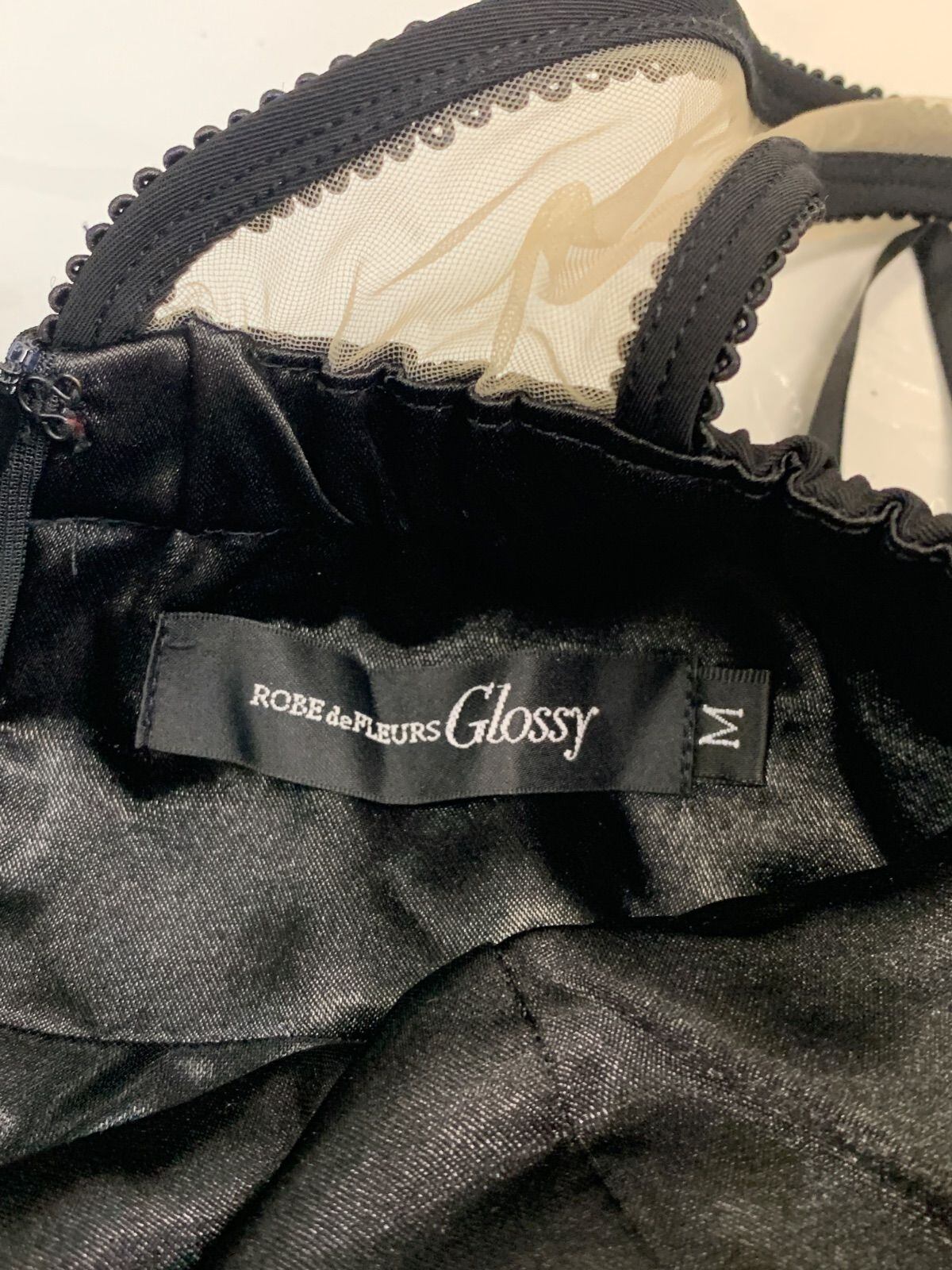 1447 ROBE de FLEURS Glossy ローブドフルールグロッシー キャバクラ ドレス シアー 刺繍 レース ビジュー タイト ミディ シースルー キャバドレス M