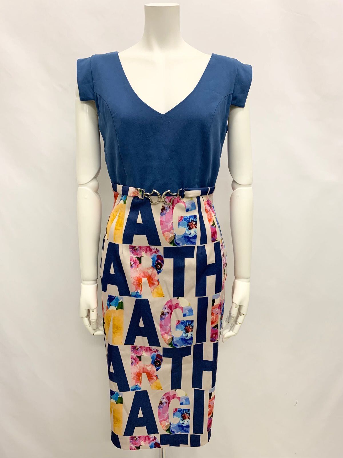 1455 Rinfarre リンファーレ キャバクラ ドレス ミディ 花柄 フラワー ロゴ 二次会 キャバドレス M