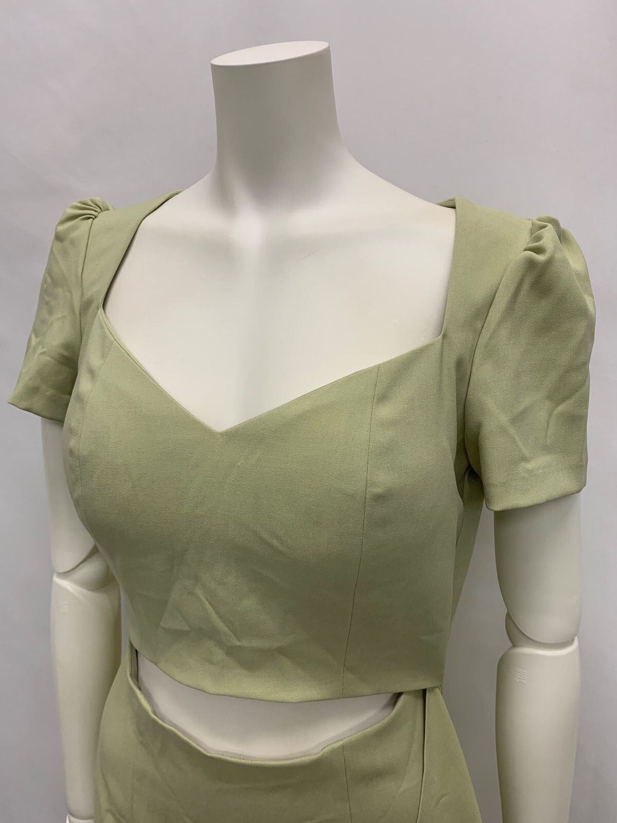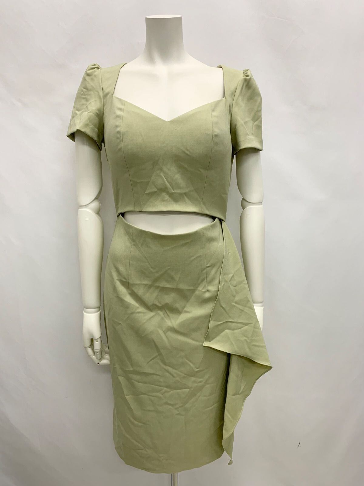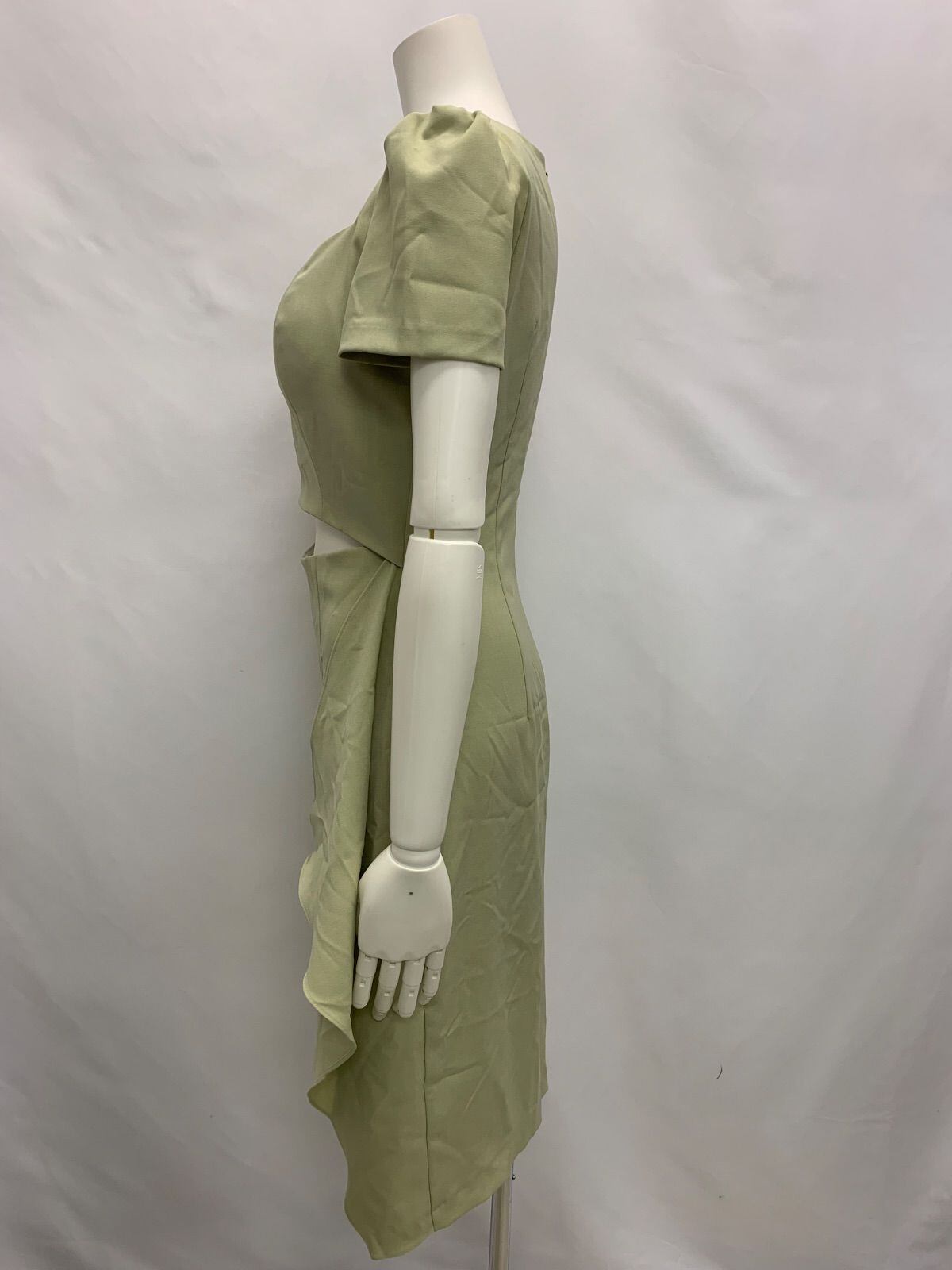 1458 キャバクラ ドレス ウエストカット フリル ミディ 無地 シンプル キャバドレス M