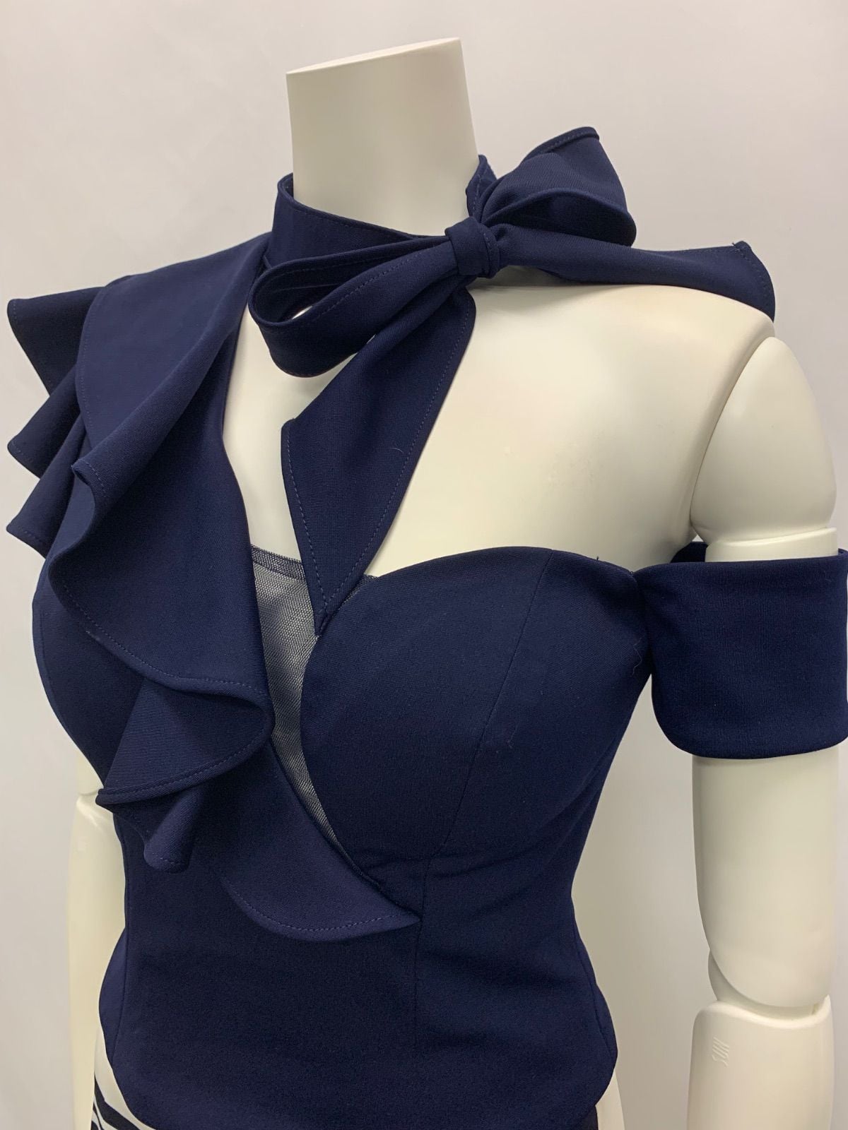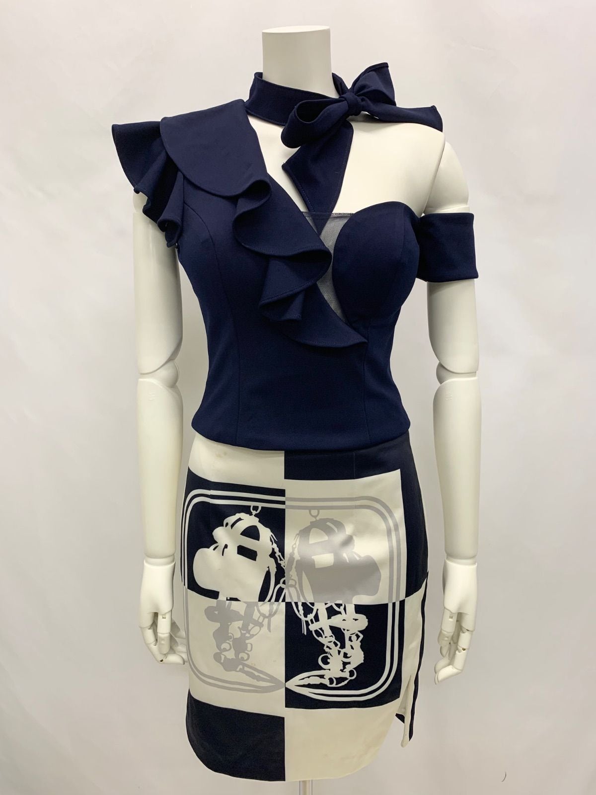1465 GLAMOROUS by Andy グラマラスバイアンディ キャバクラ ドレス セットアップ ワンショルダー タイト フリル スリット リボン キャバドレス M